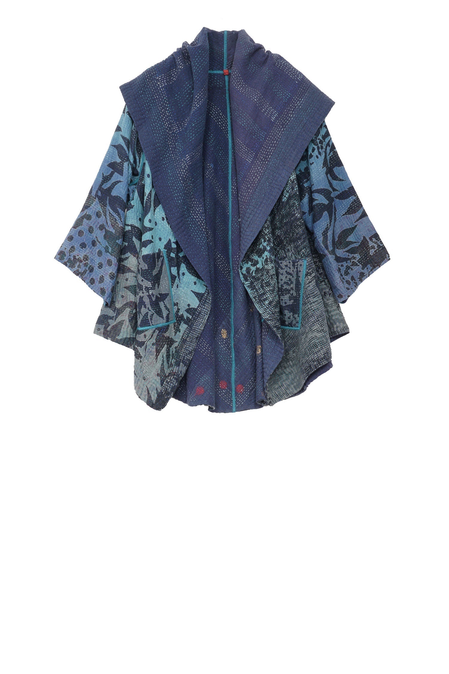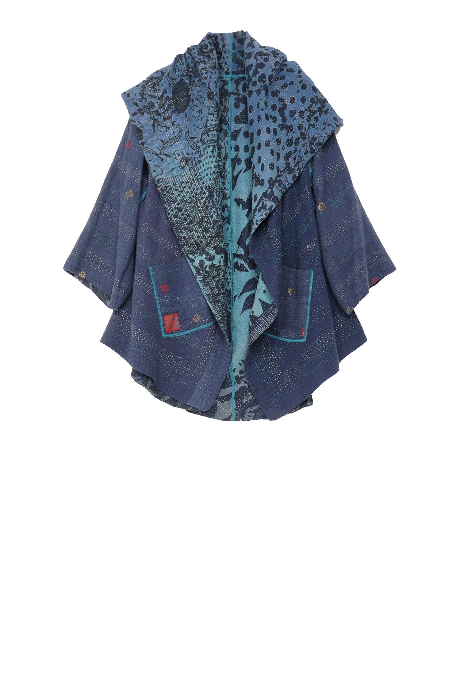 MONOTONE TWILIGHT PRINT KANTHA CIRCULAR LONG JKT - tp4009-blu -