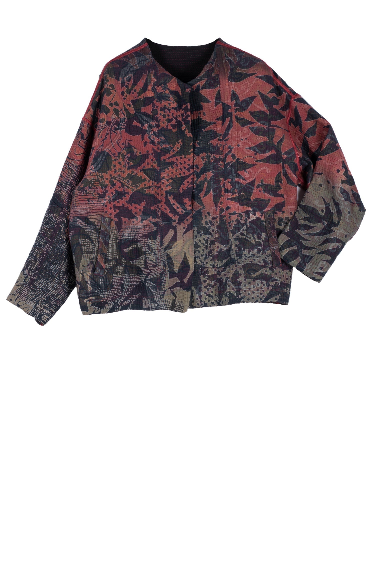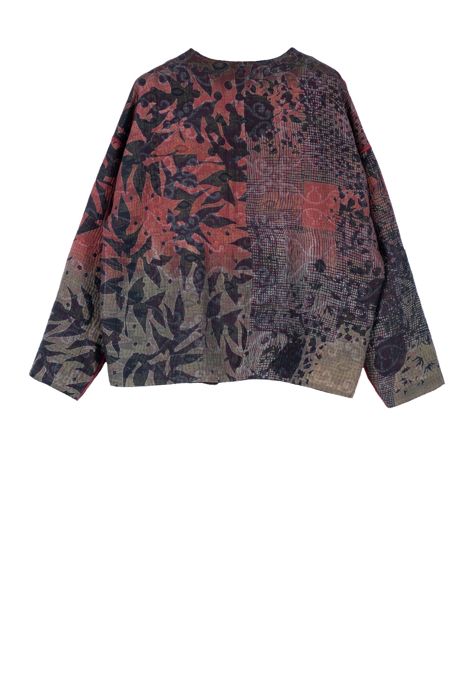 MONOTONE TWILIGHT PRINT KANTHA CREW NECK SHORT JKT - tp4053-red -