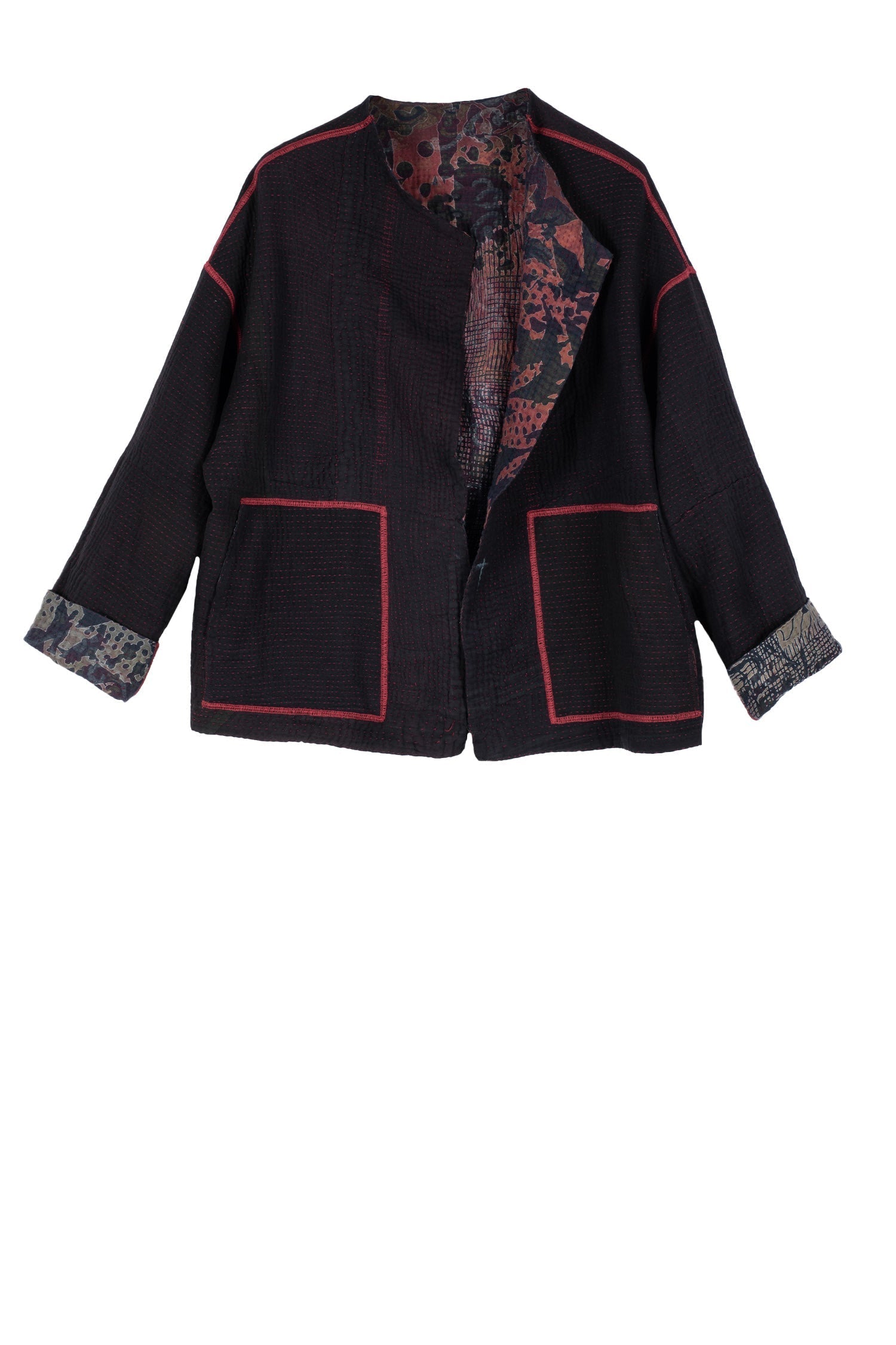 4 Layer Vintage Saris with Hand Stitches on Entire Garment - Reversible