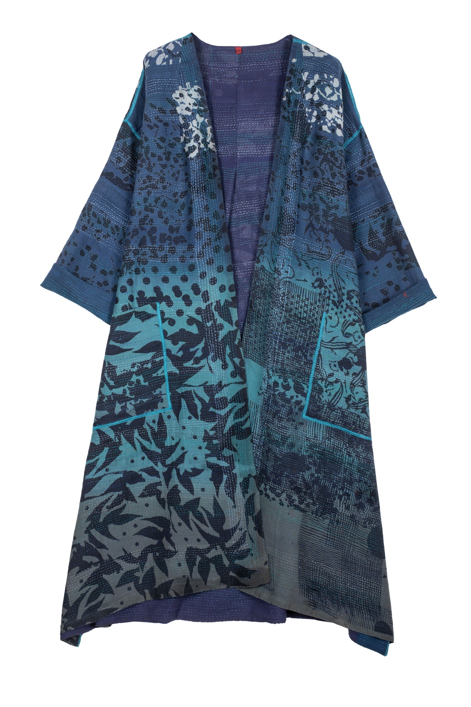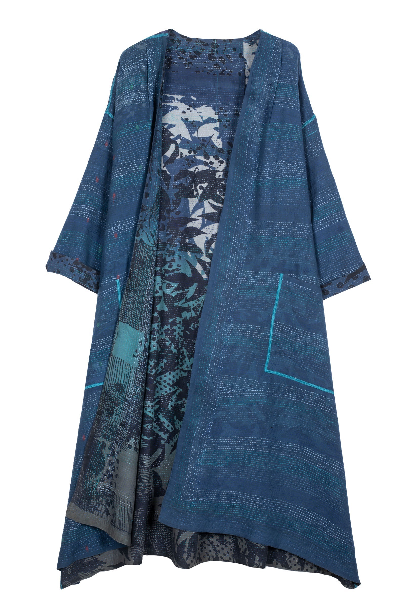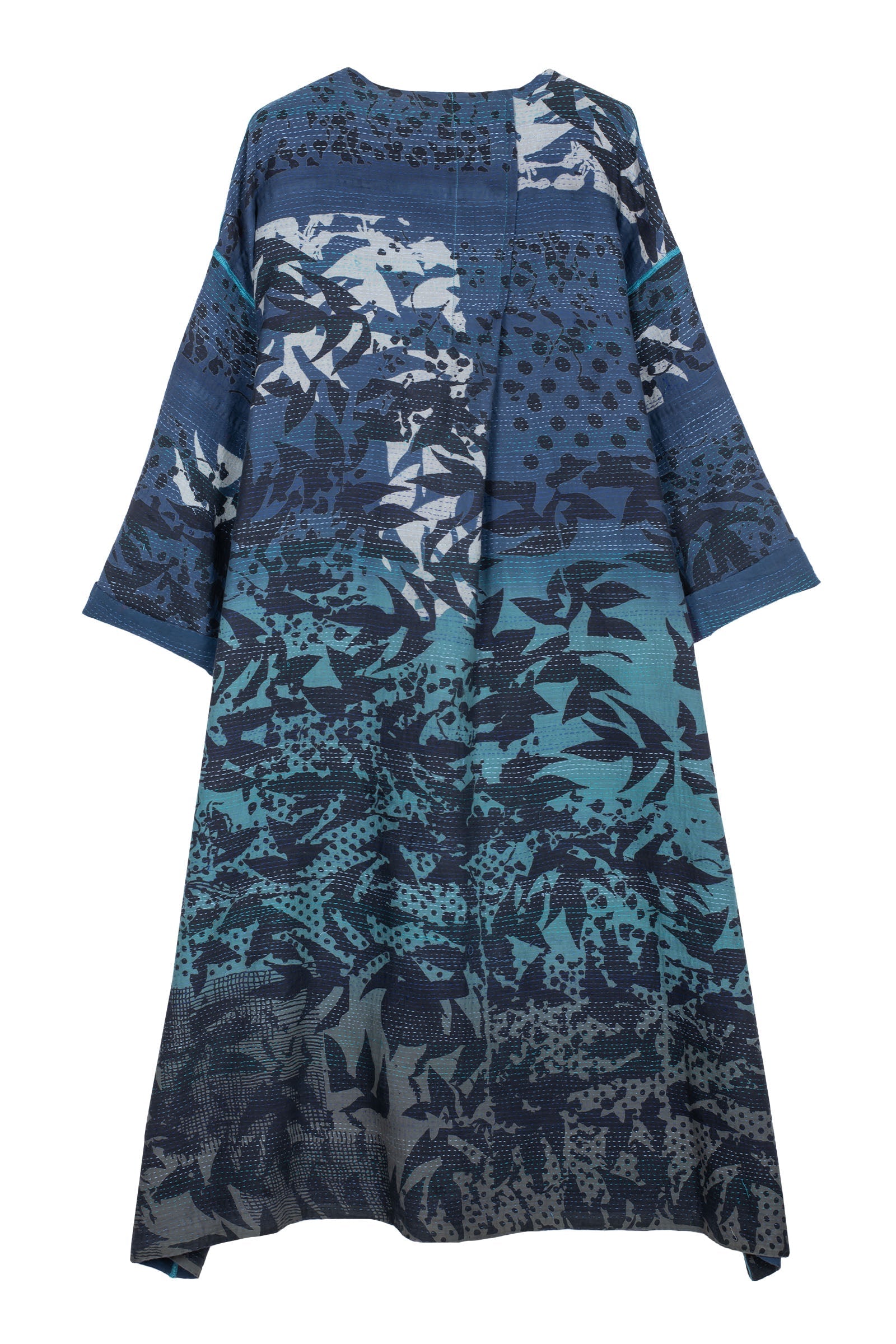 MONOTONE TWILIGHT PRINT KANTHA LONG DUSTER - tp2328-blu -