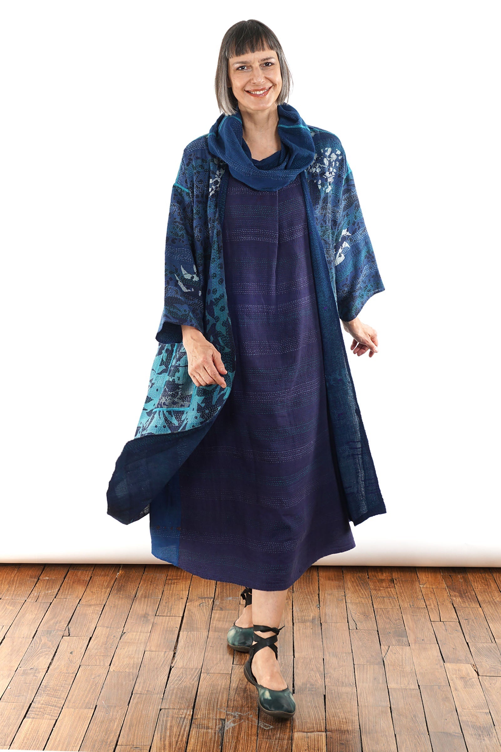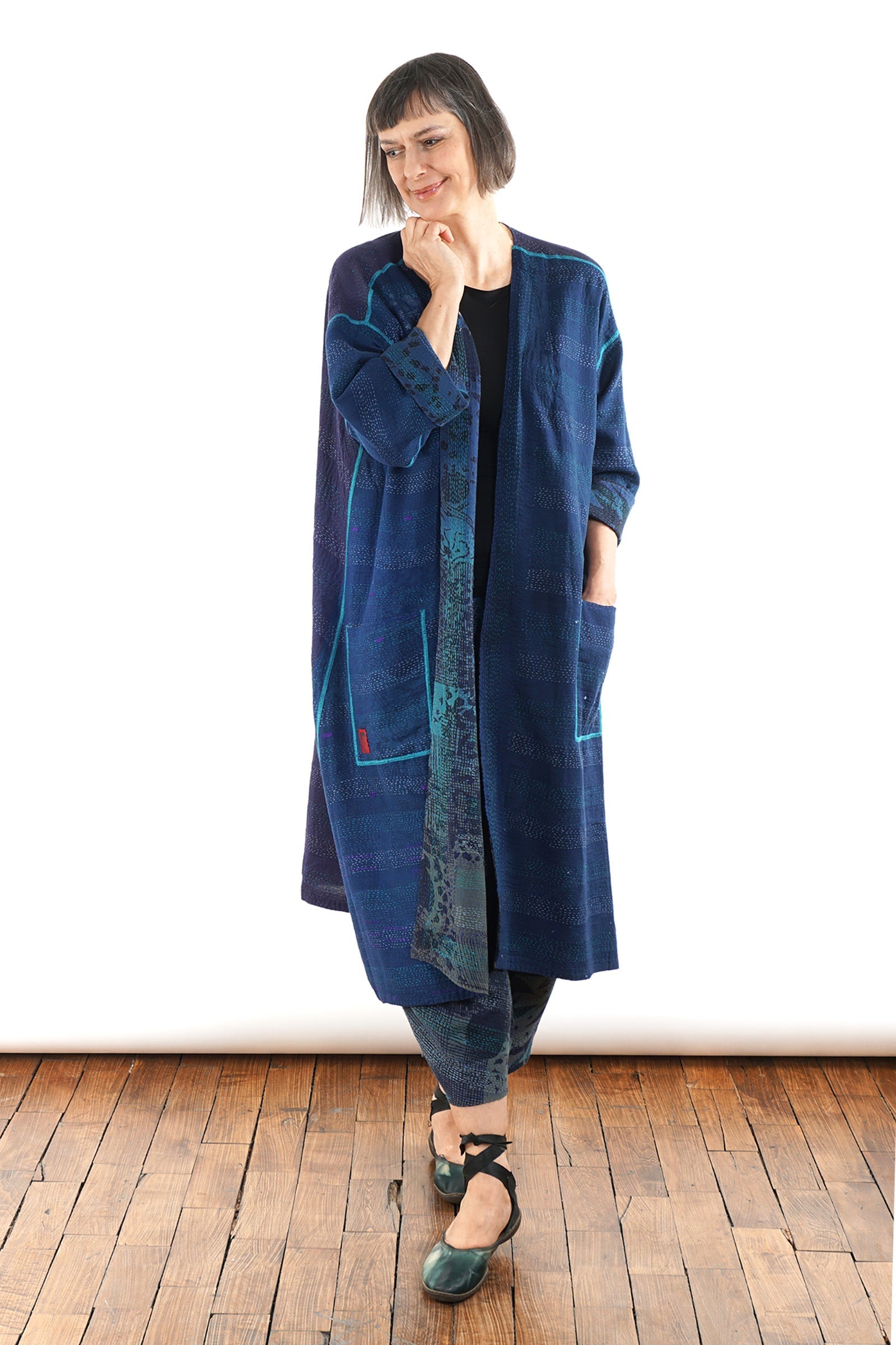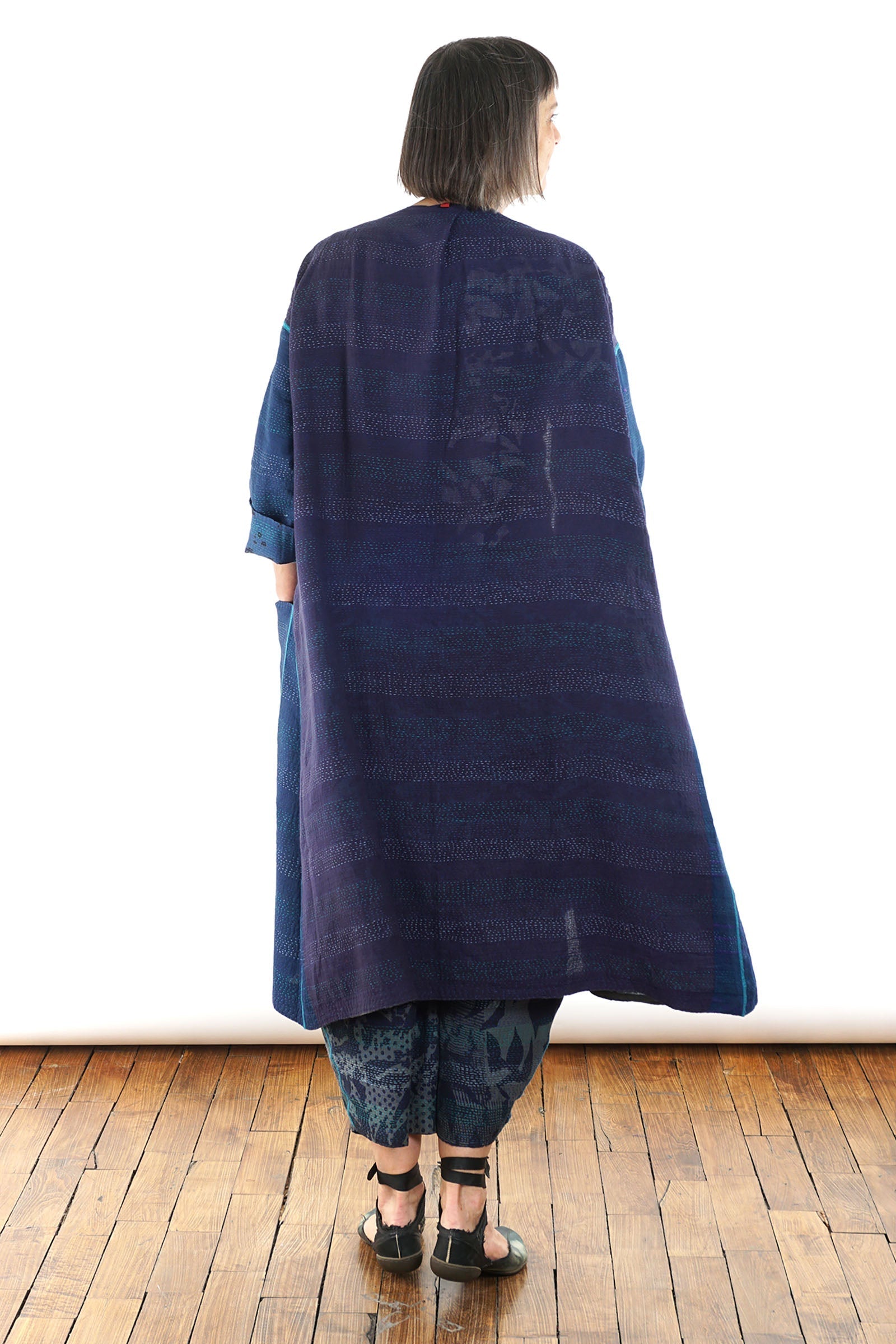MONOTONE TWILIGHT PRINT KANTHA LONG DUSTER - tp2328-blu -