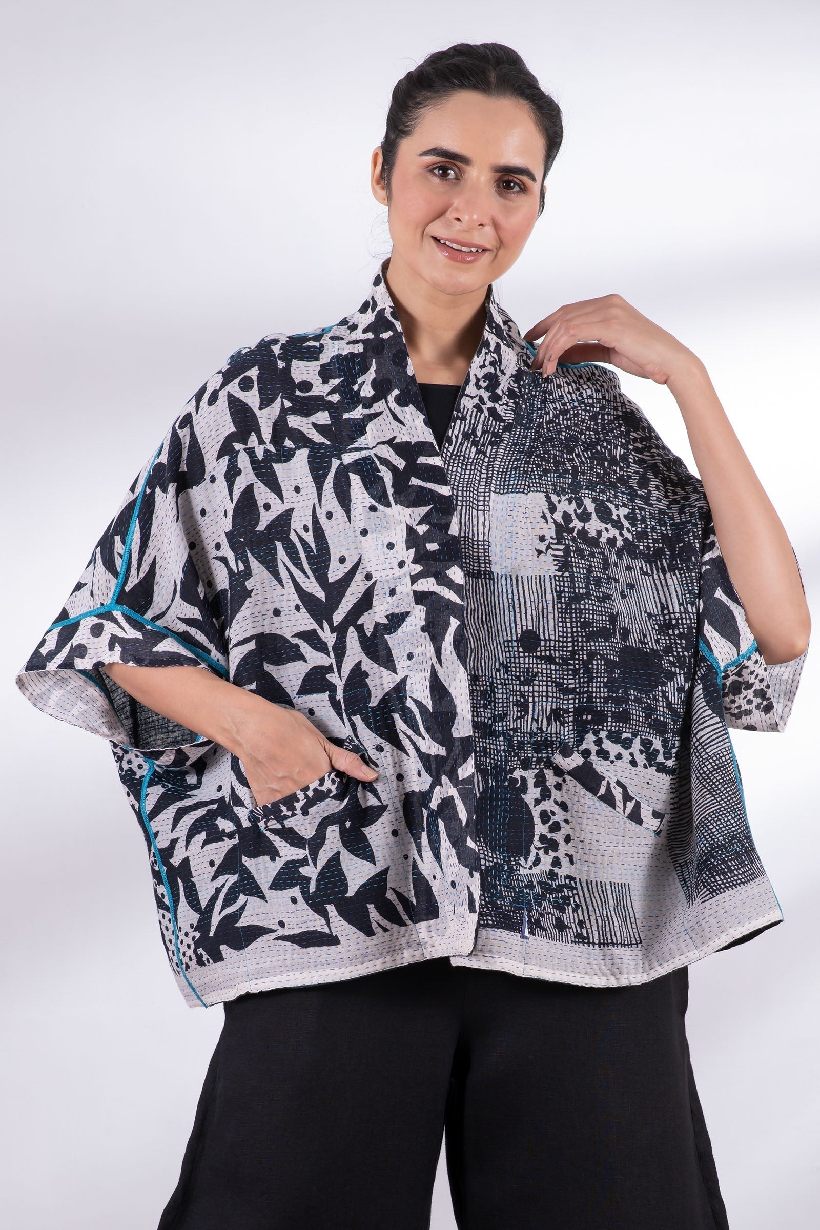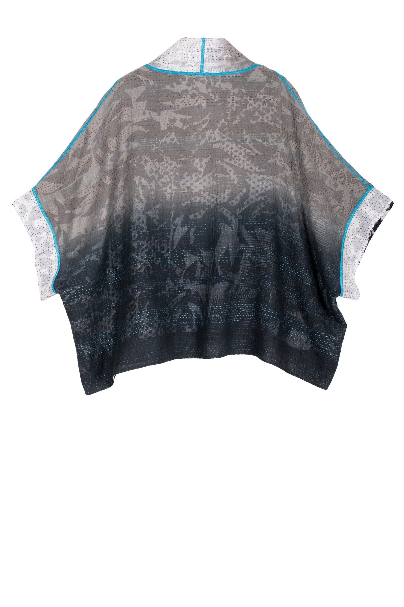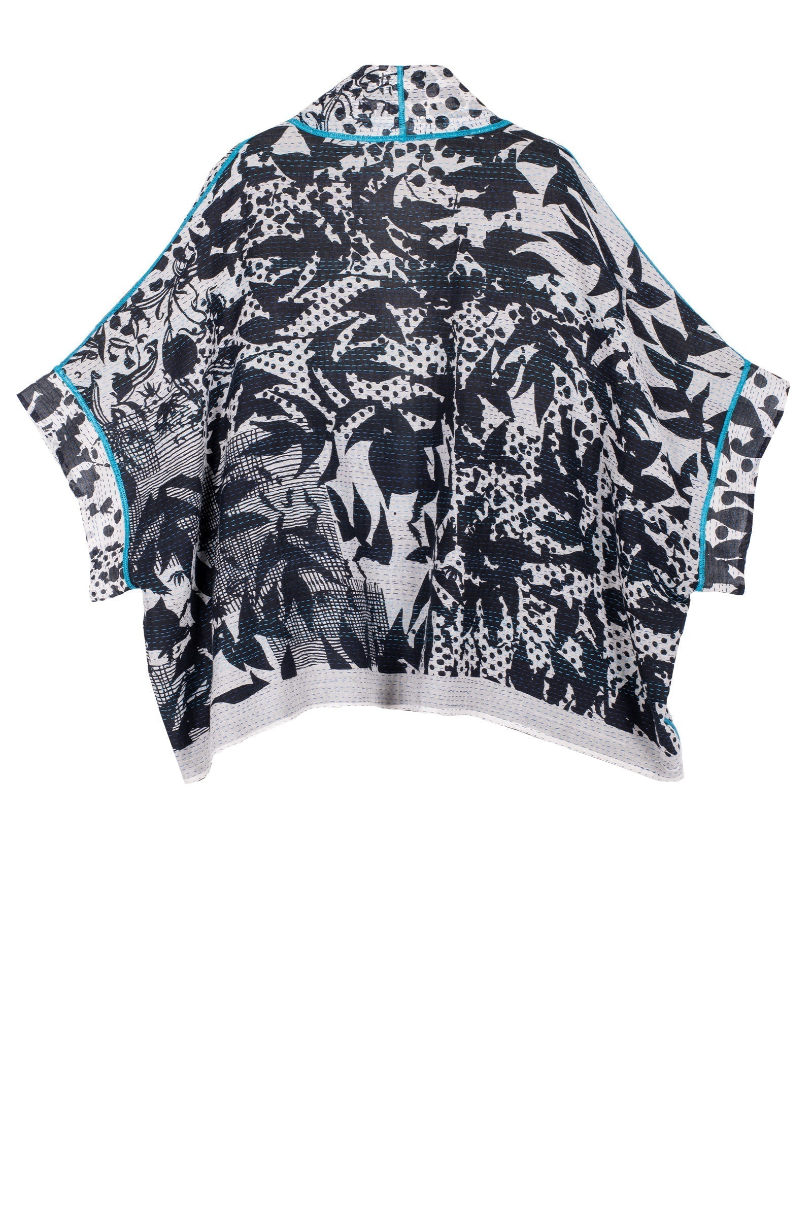 MONOTONE TWILIGHT PRINT KANTHA MINI PONCHO - tp2060-wht -