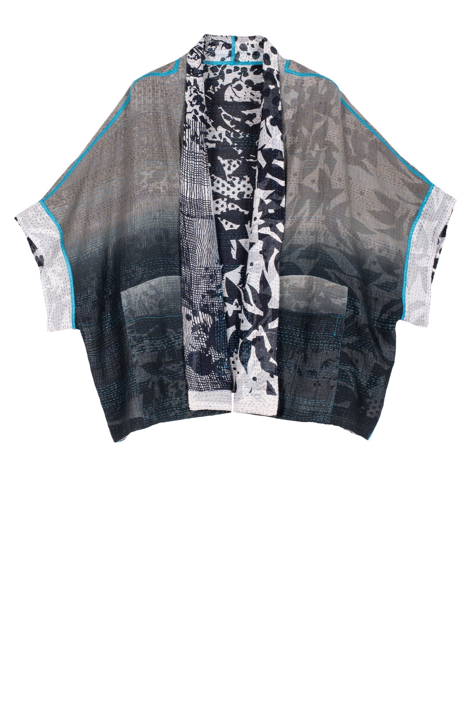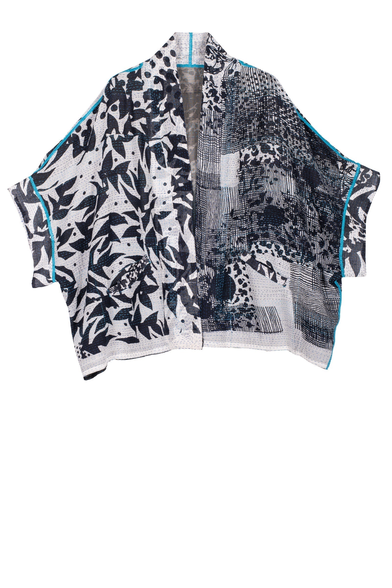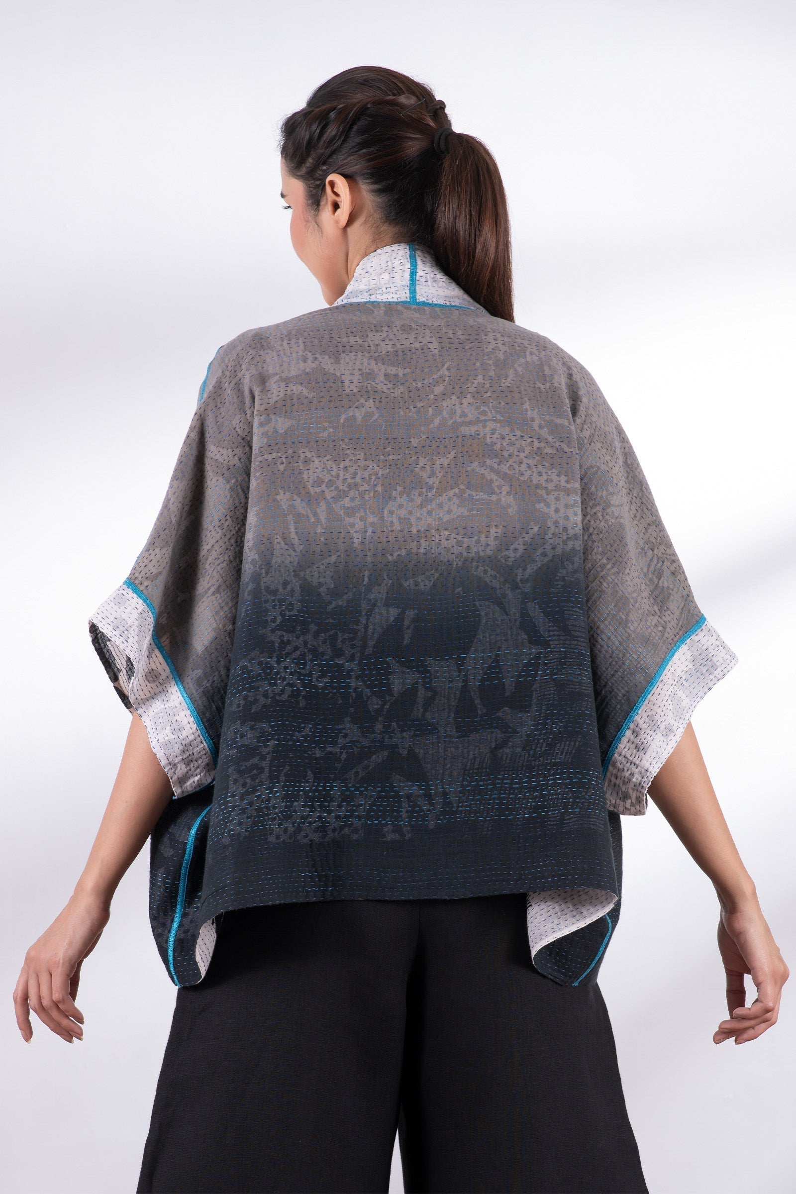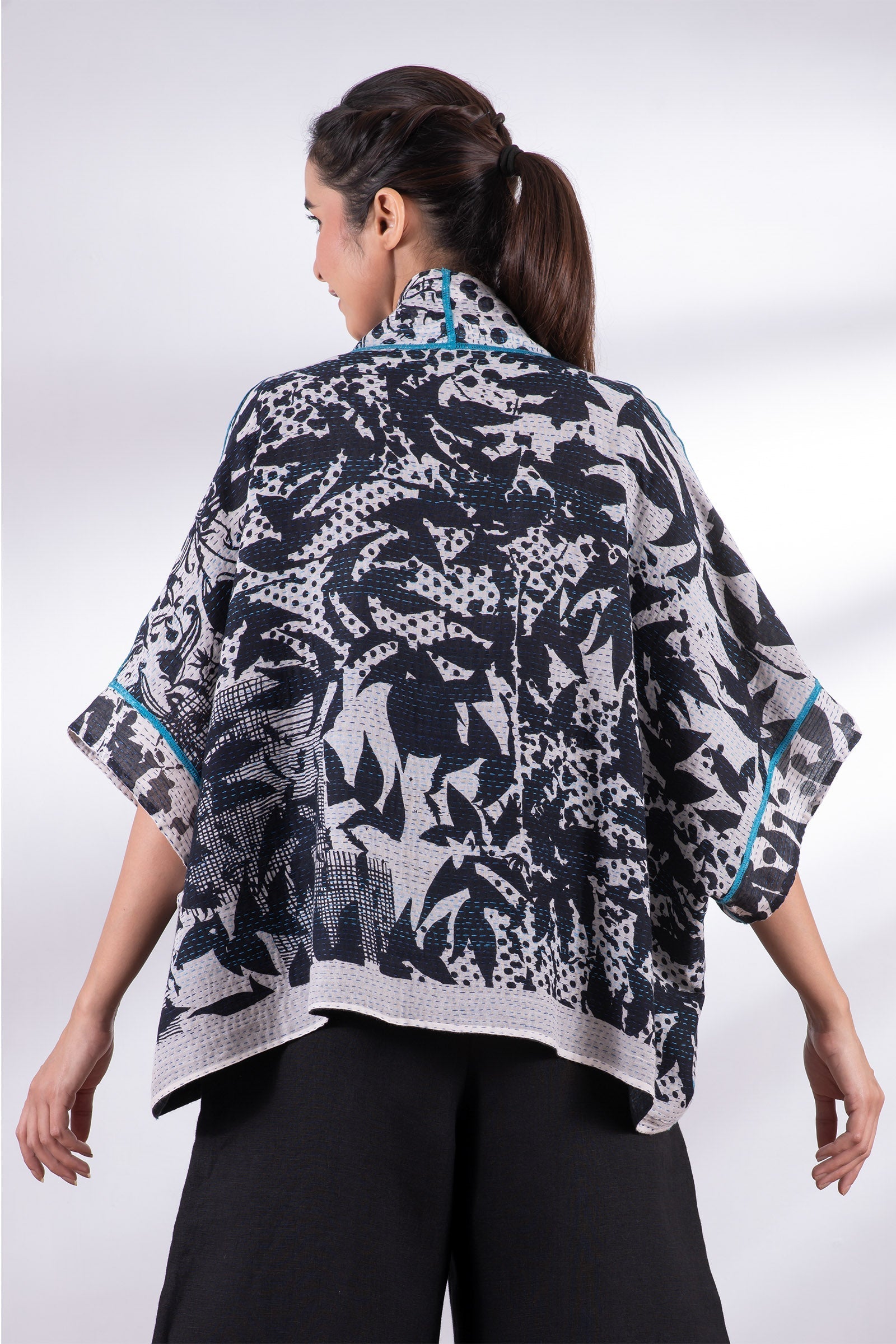 MONOTONE TWILIGHT PRINT KANTHA MINI PONCHO - tp2060-wht -