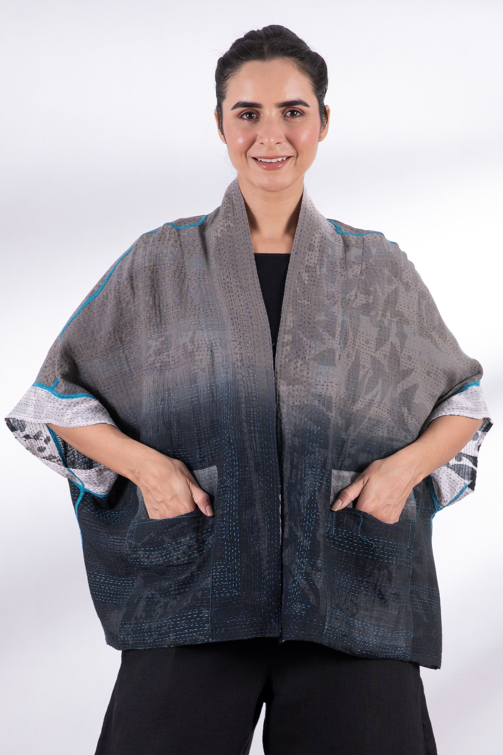 2 Layer Vintage Saris with Hand Stitches on Entire Garment - Reversible