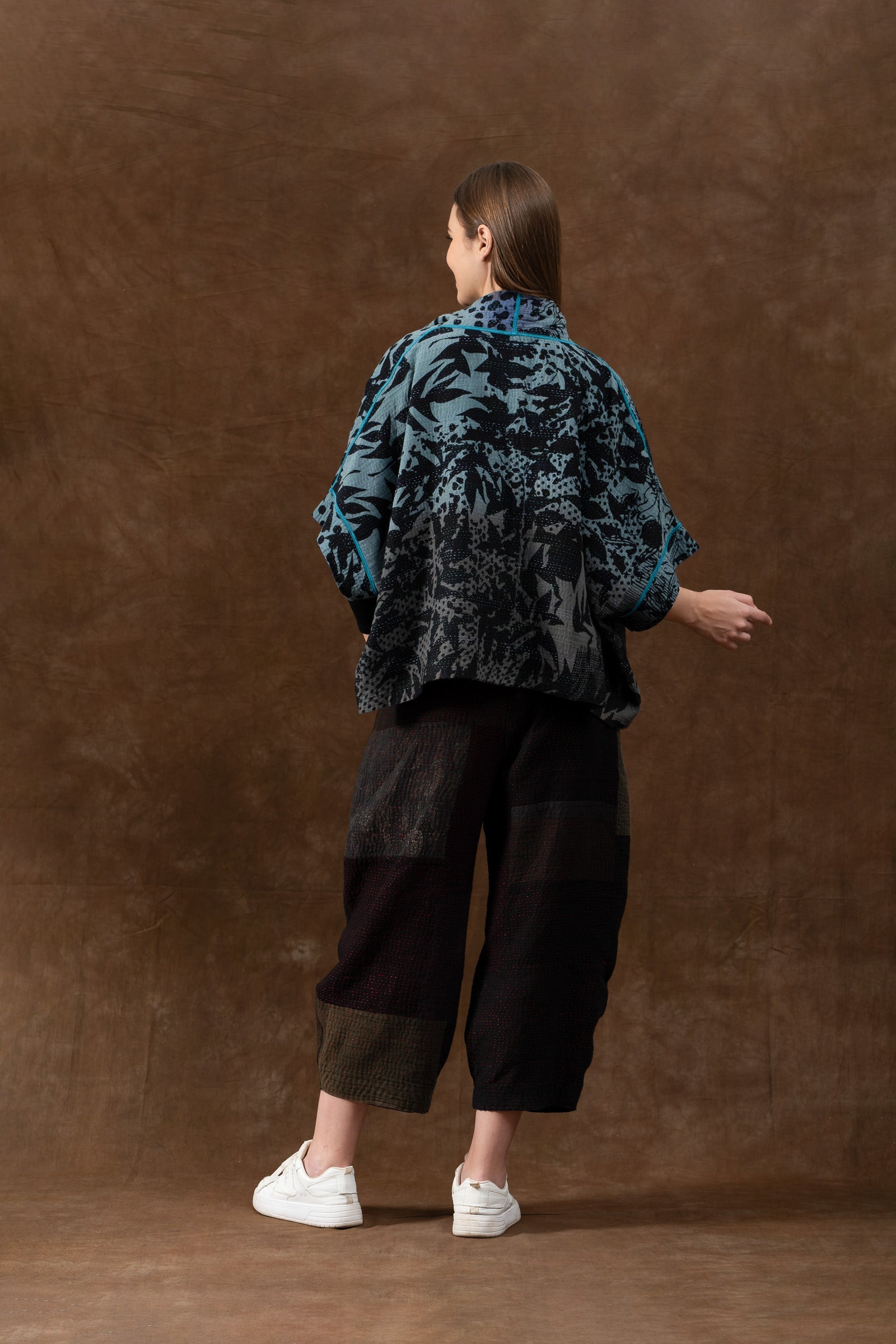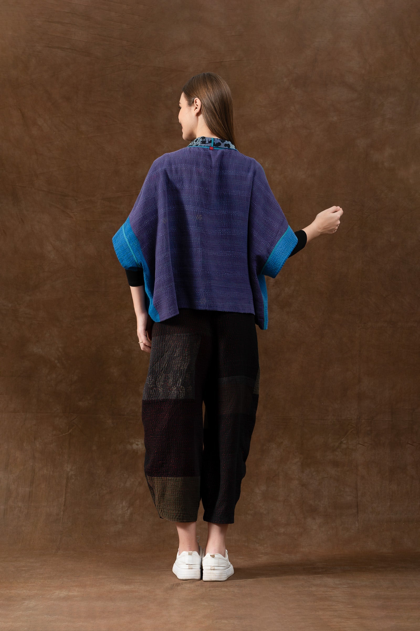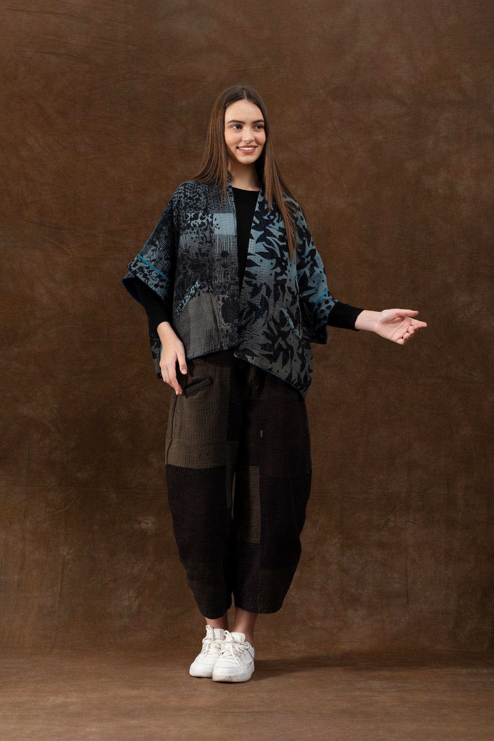 MONOTONE TWILIGHT PRINT KANTHA MINI PONCHO - tp4060-blu -