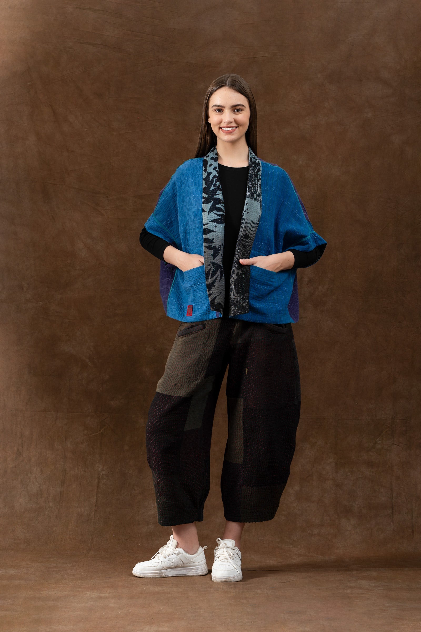 4 Layer Vintage Saris with Hand Stitches on Entire Garment