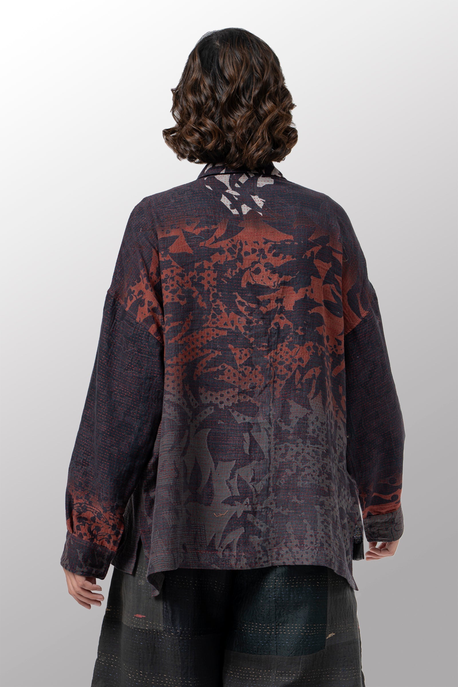 MONOTONE TWILIGHT PRINT KANTHA NEW CAMP SHIRT - tp2577-red -