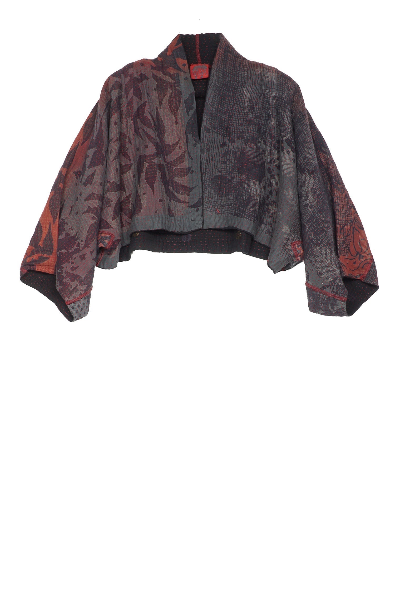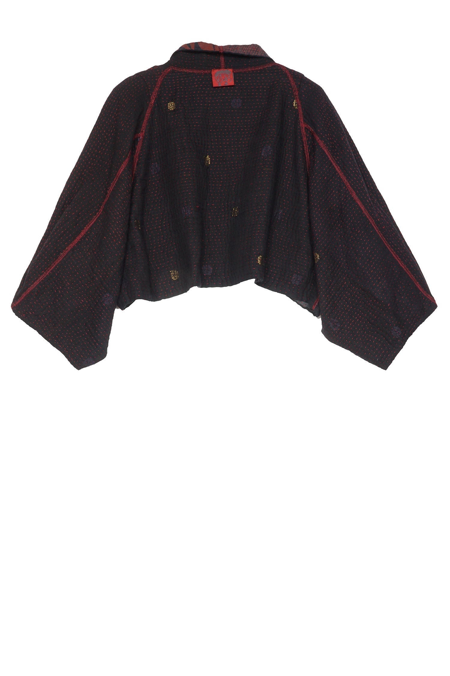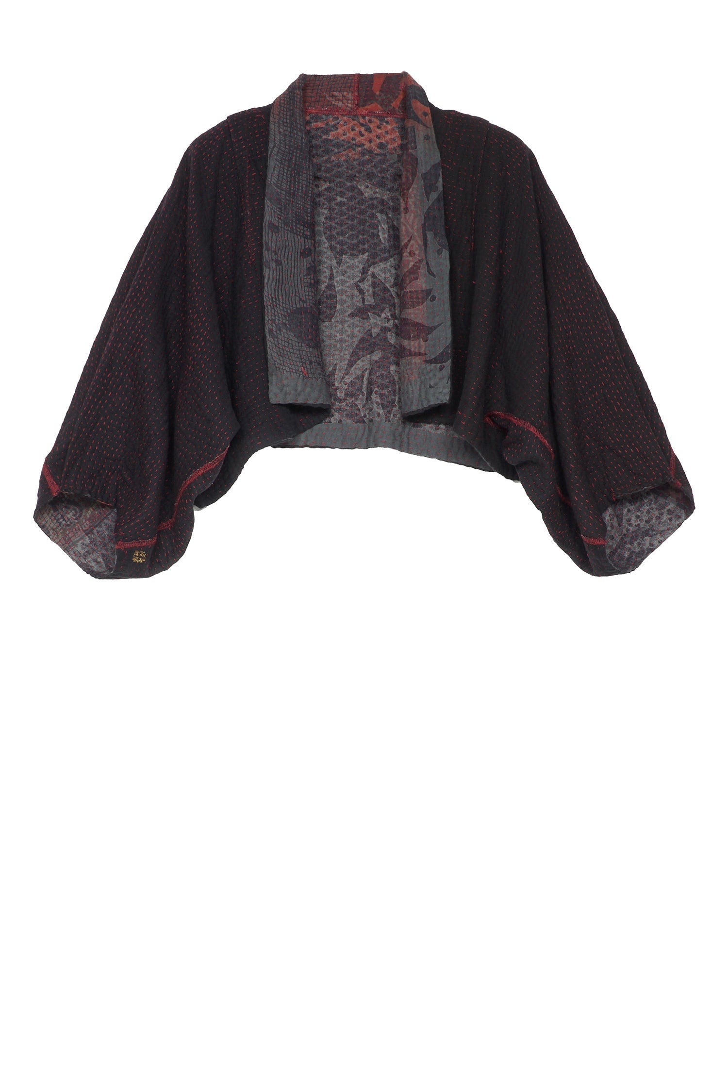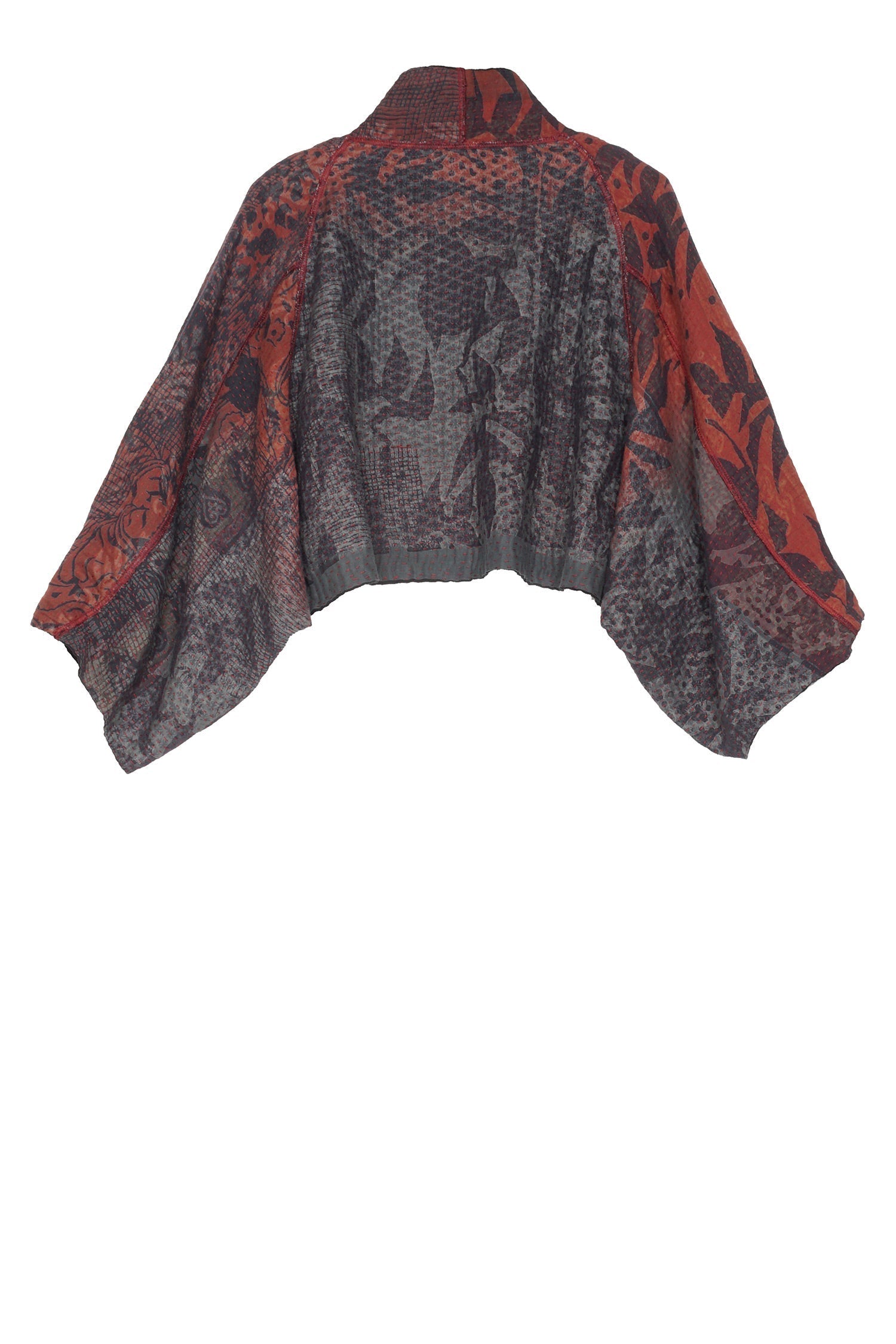 MONOTONE TWILIGHT PRINT KANTHA PUFF SLV. SHRUG - tp4062-red -