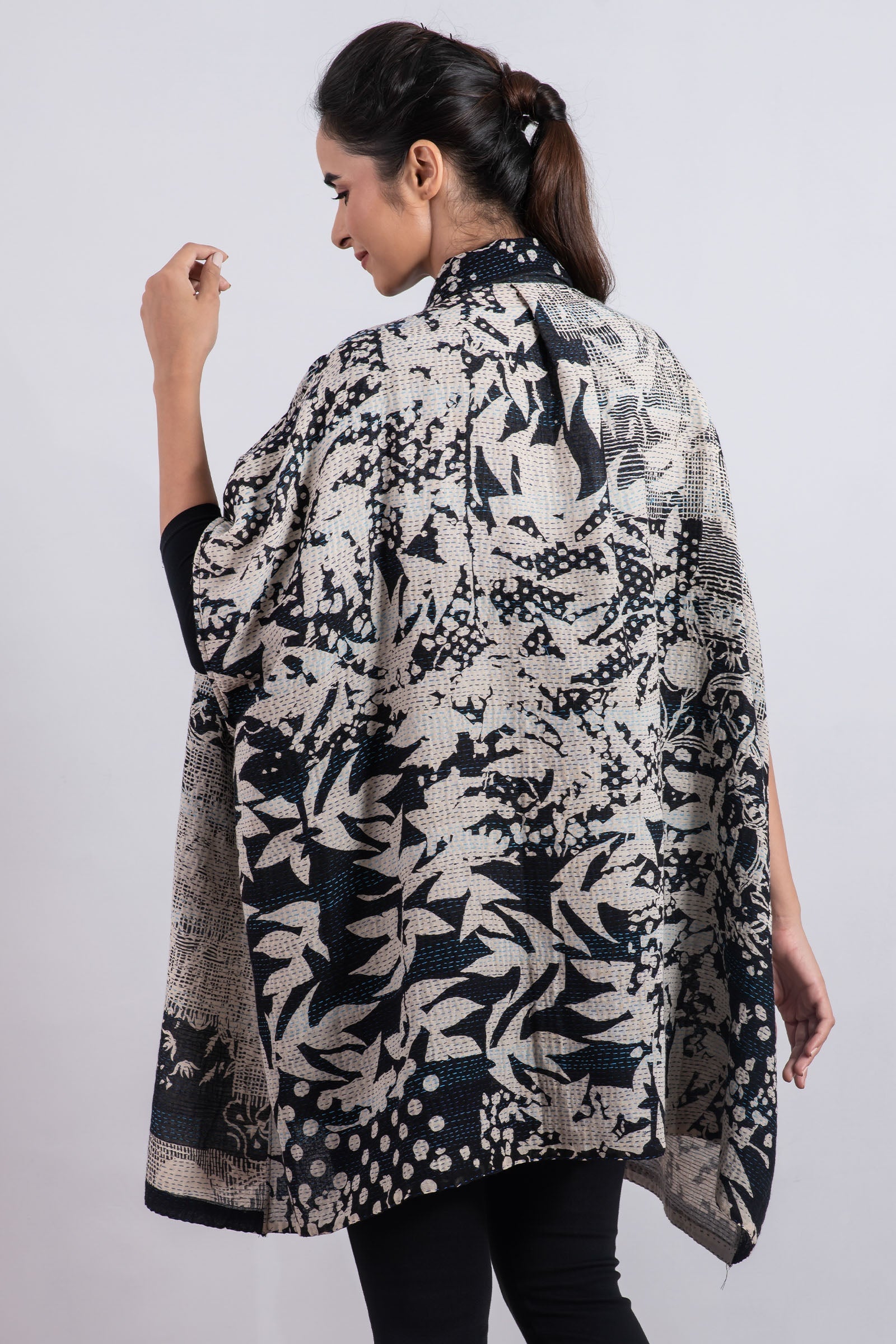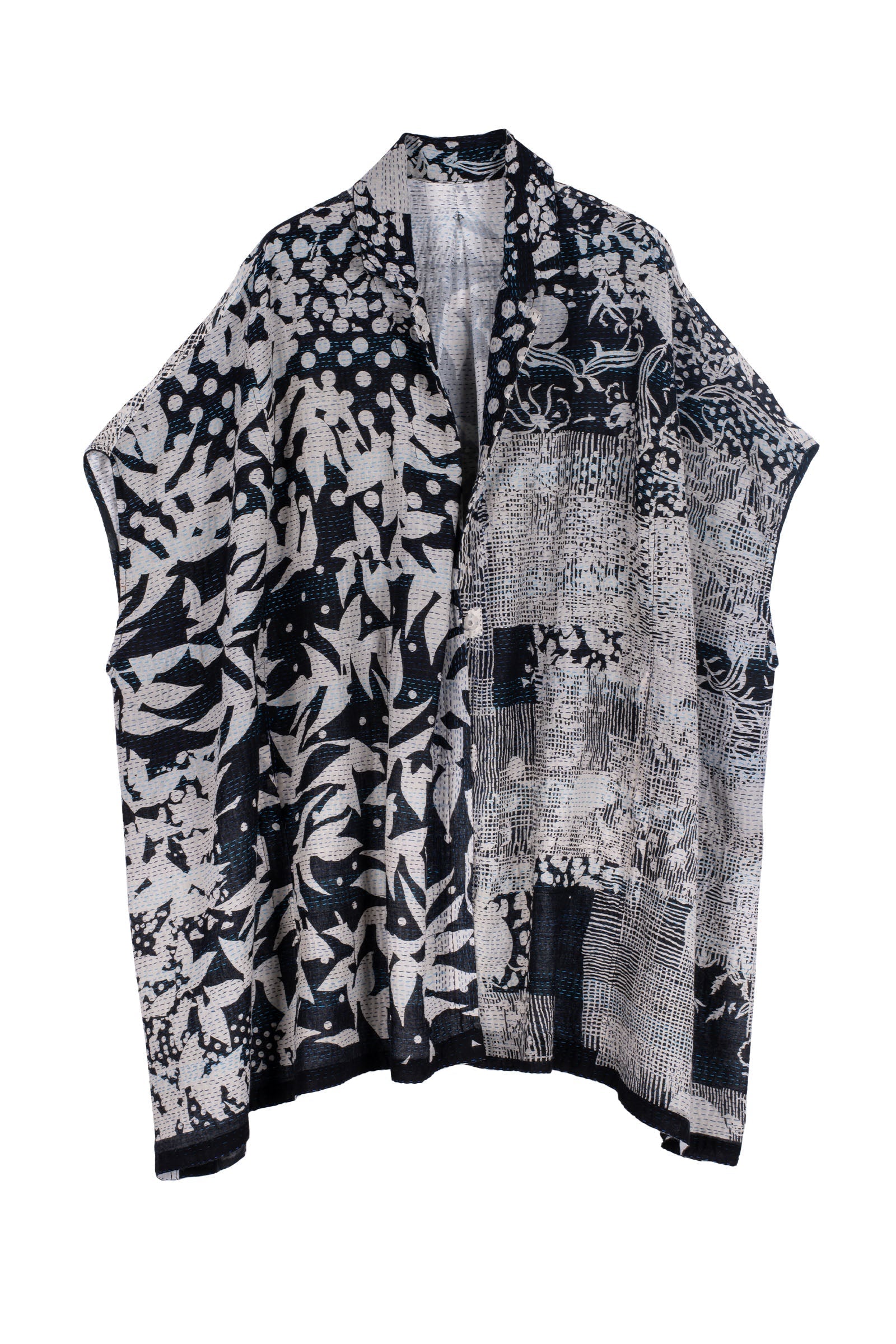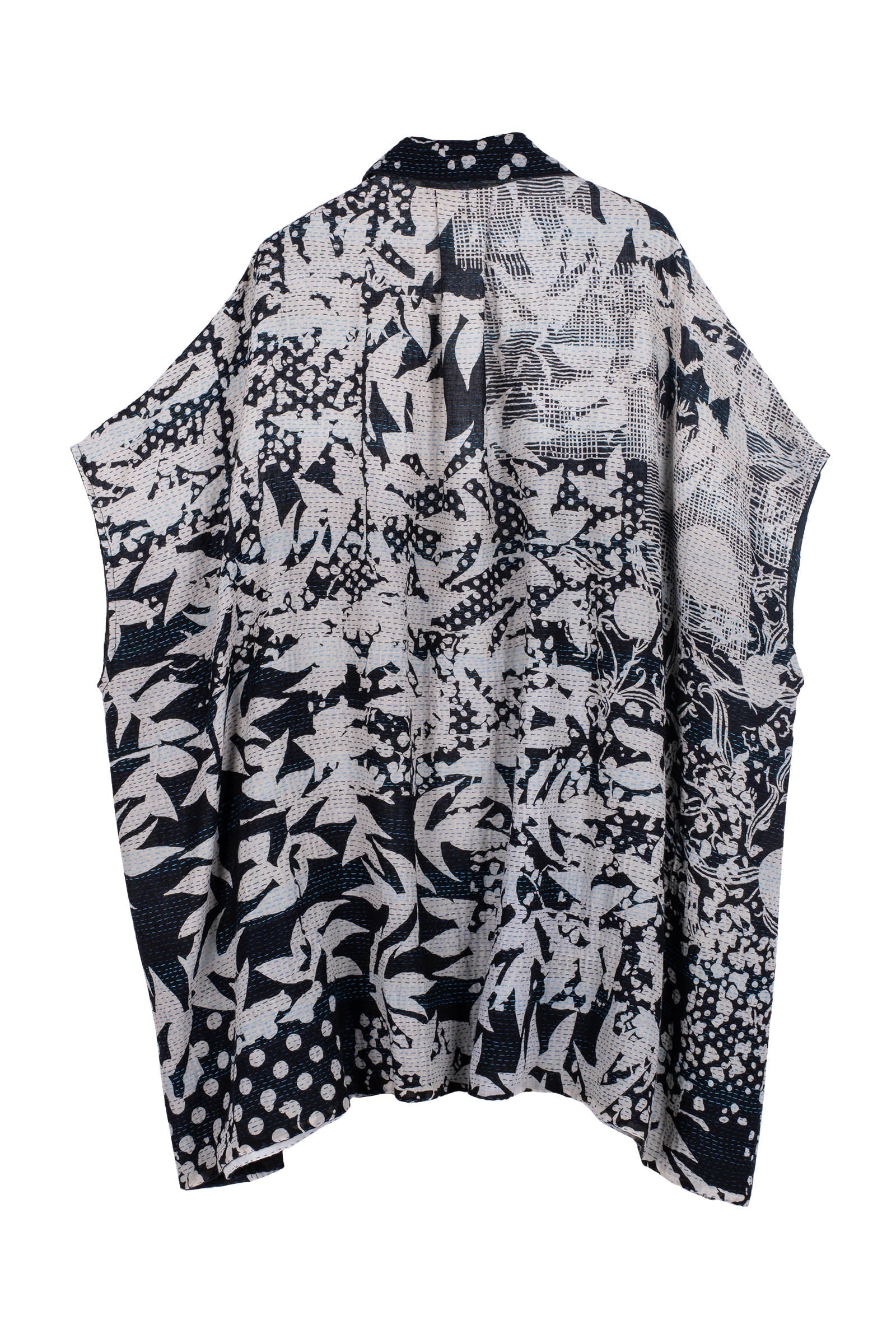 MONOTONE TWILIGHT PRINT KANTHA SHIRT PONCHO - tp2545-blk -
