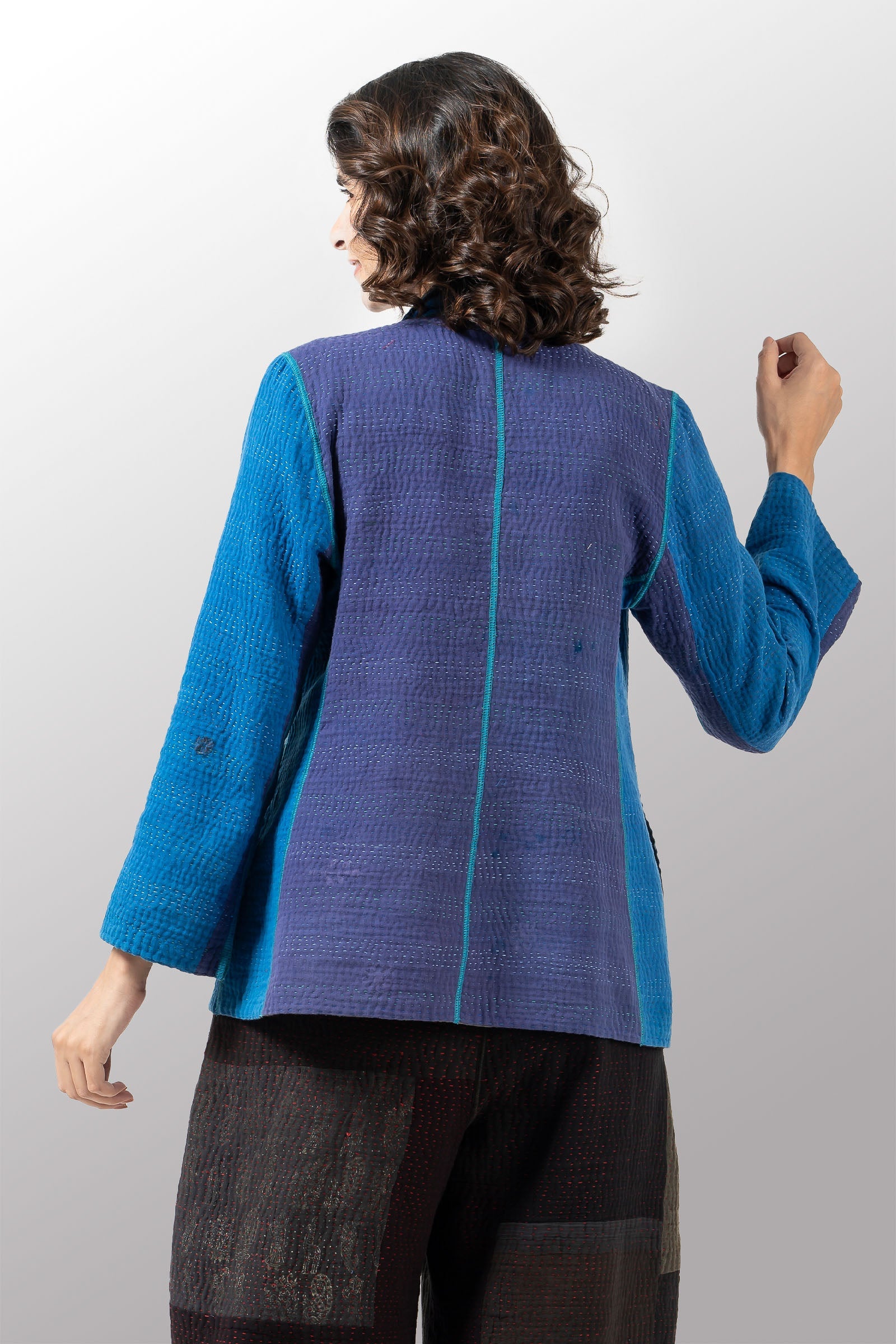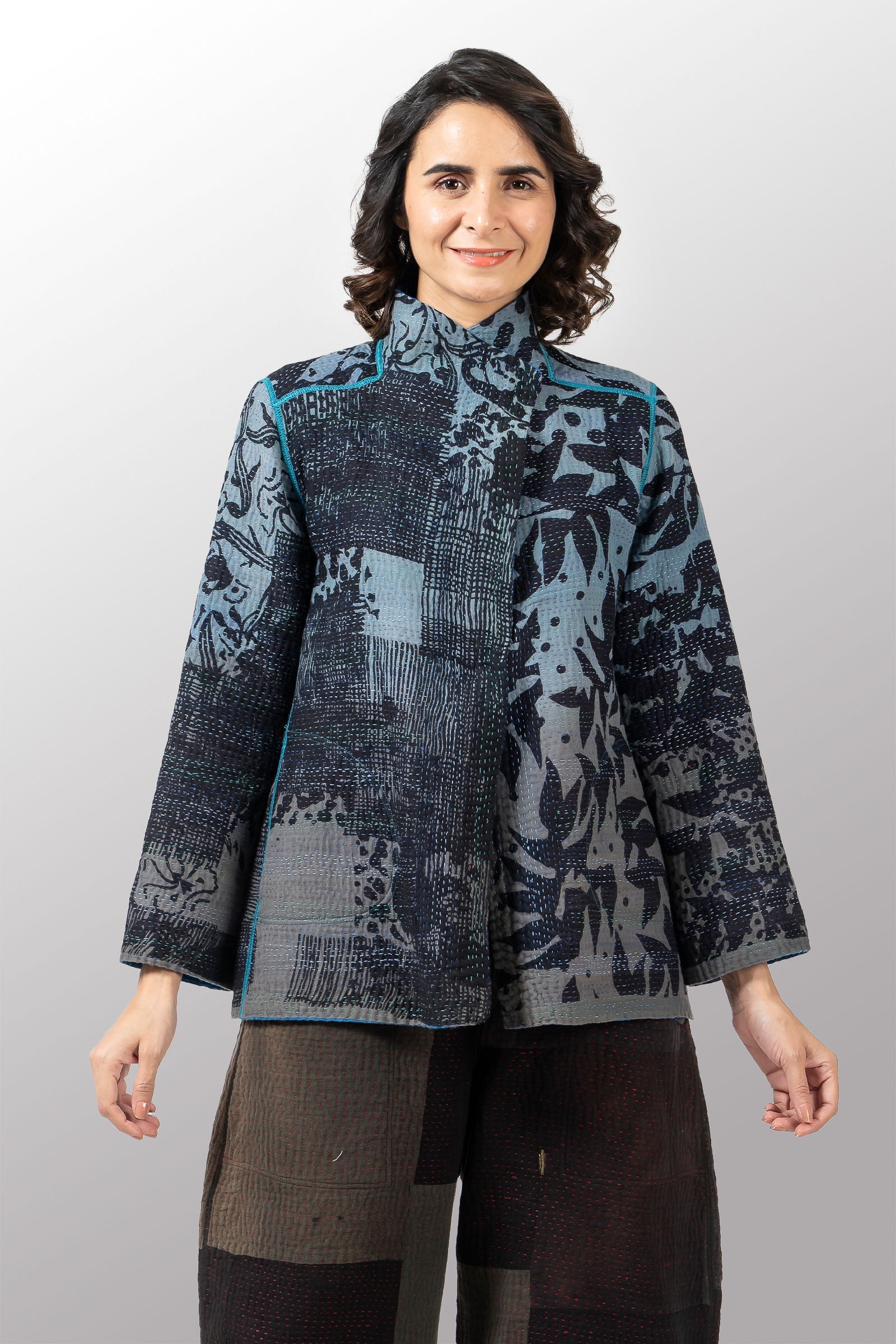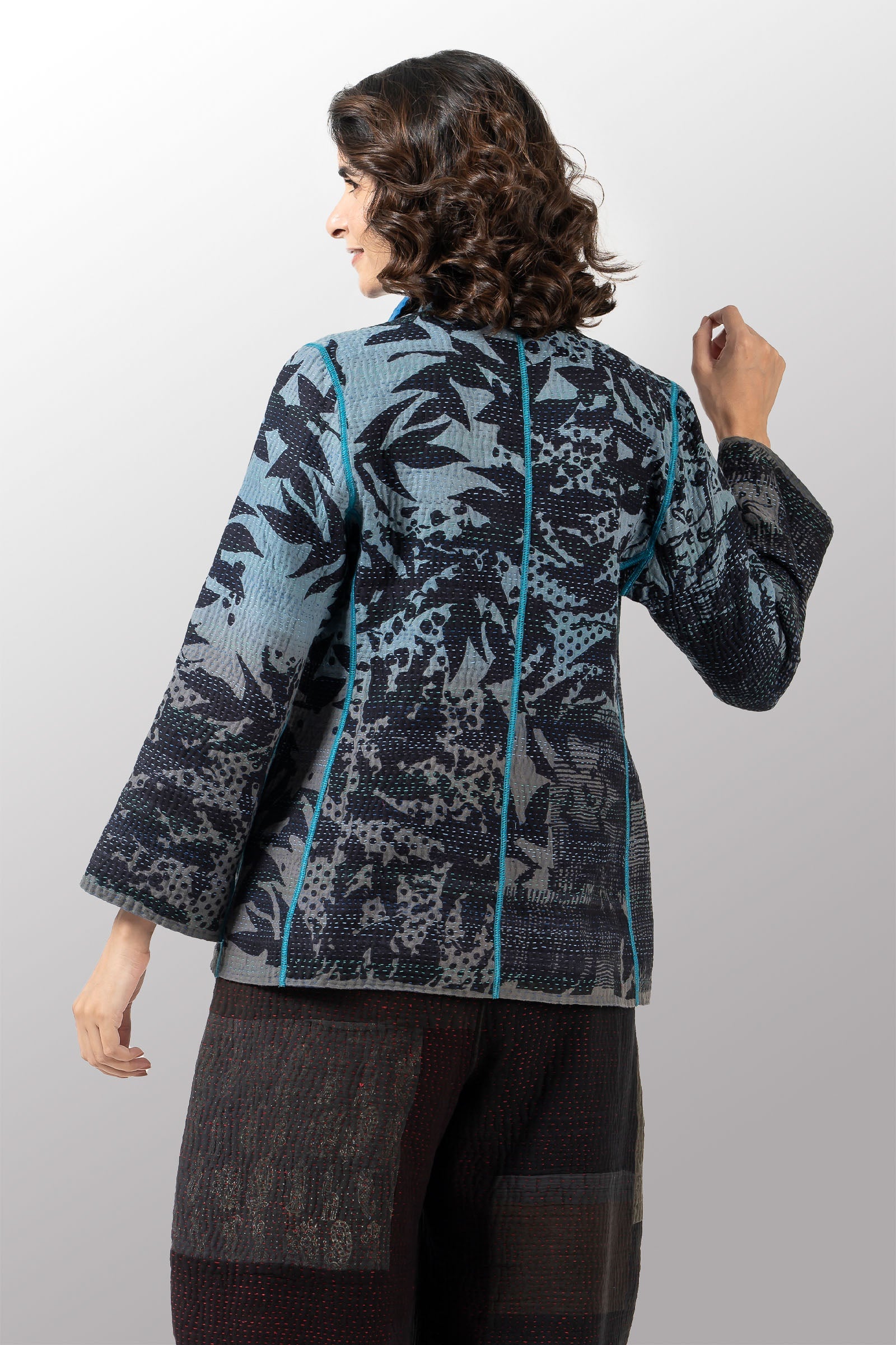 MONOTONE TWILIGHT PRINT KANTHA SHORT JKT - tp4007-blu -