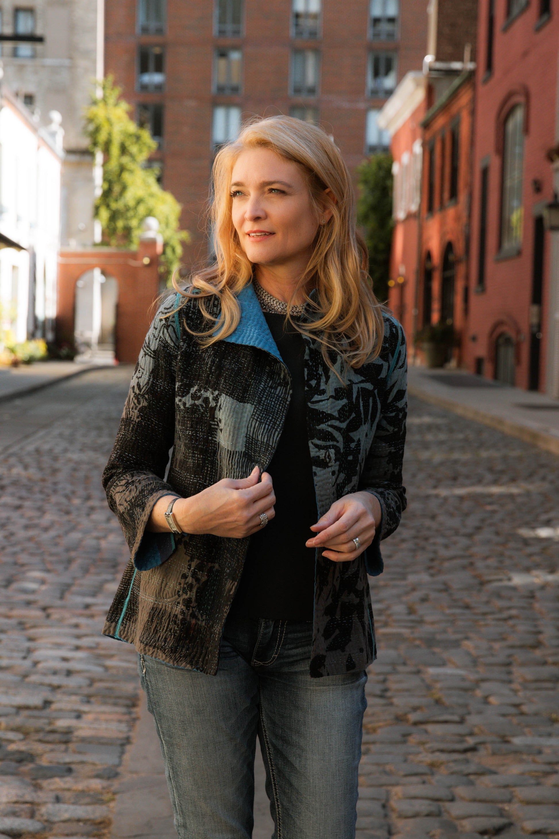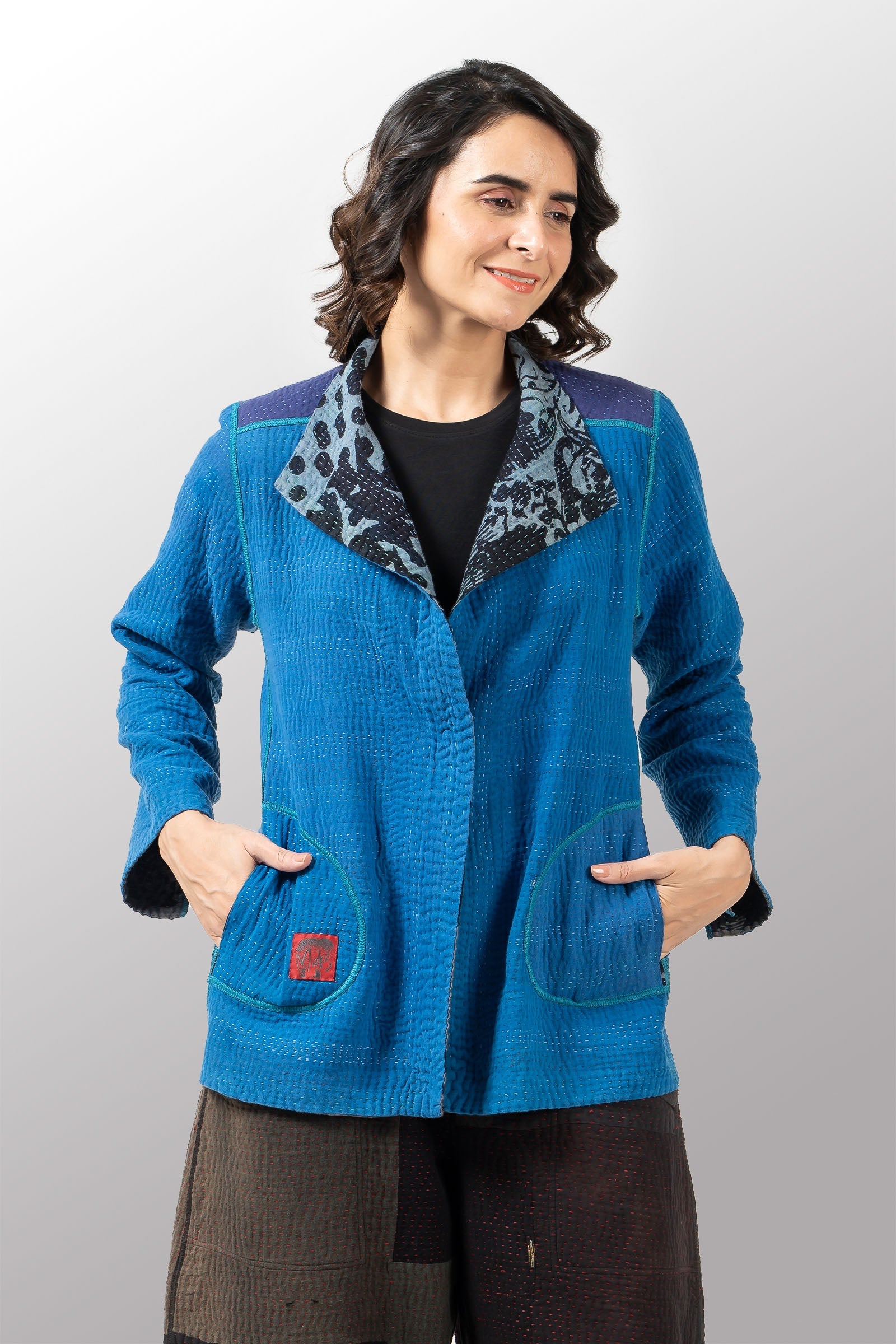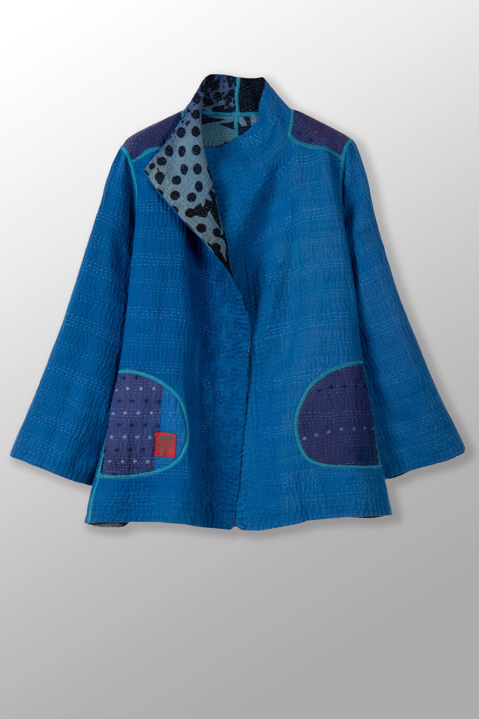 MONOTONE TWILIGHT PRINT KANTHA SHORT JKT - tp4007-blu -