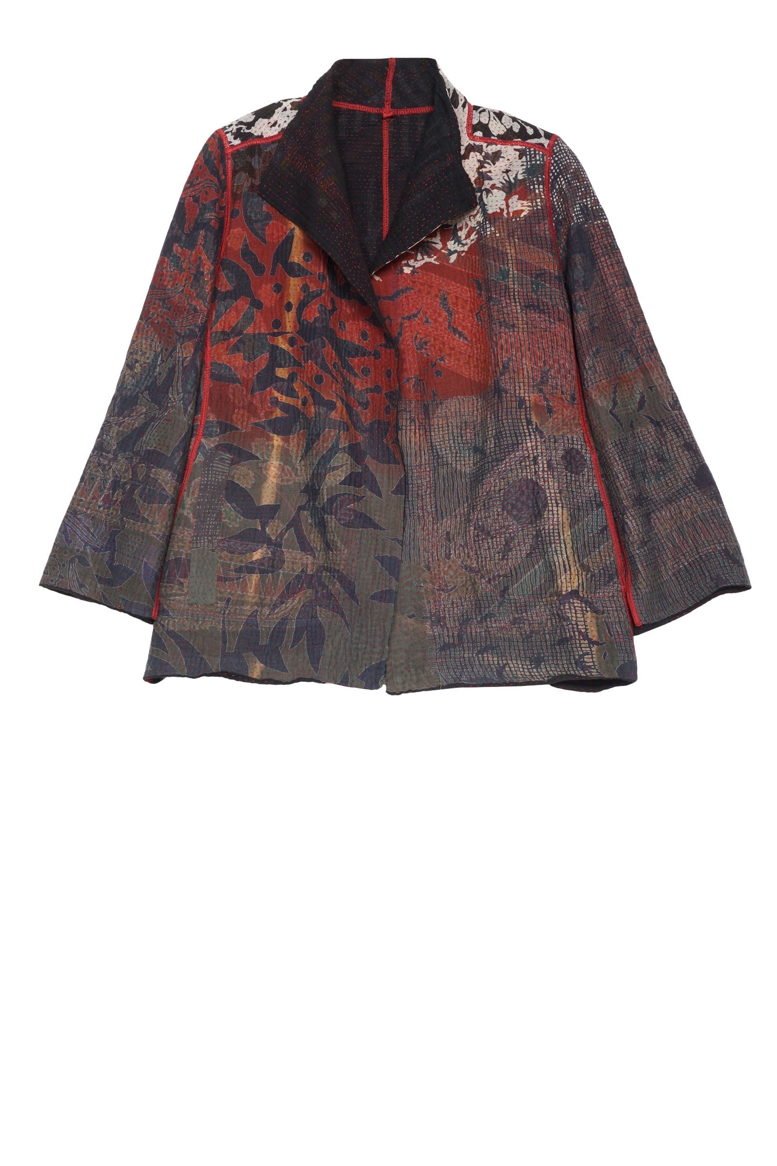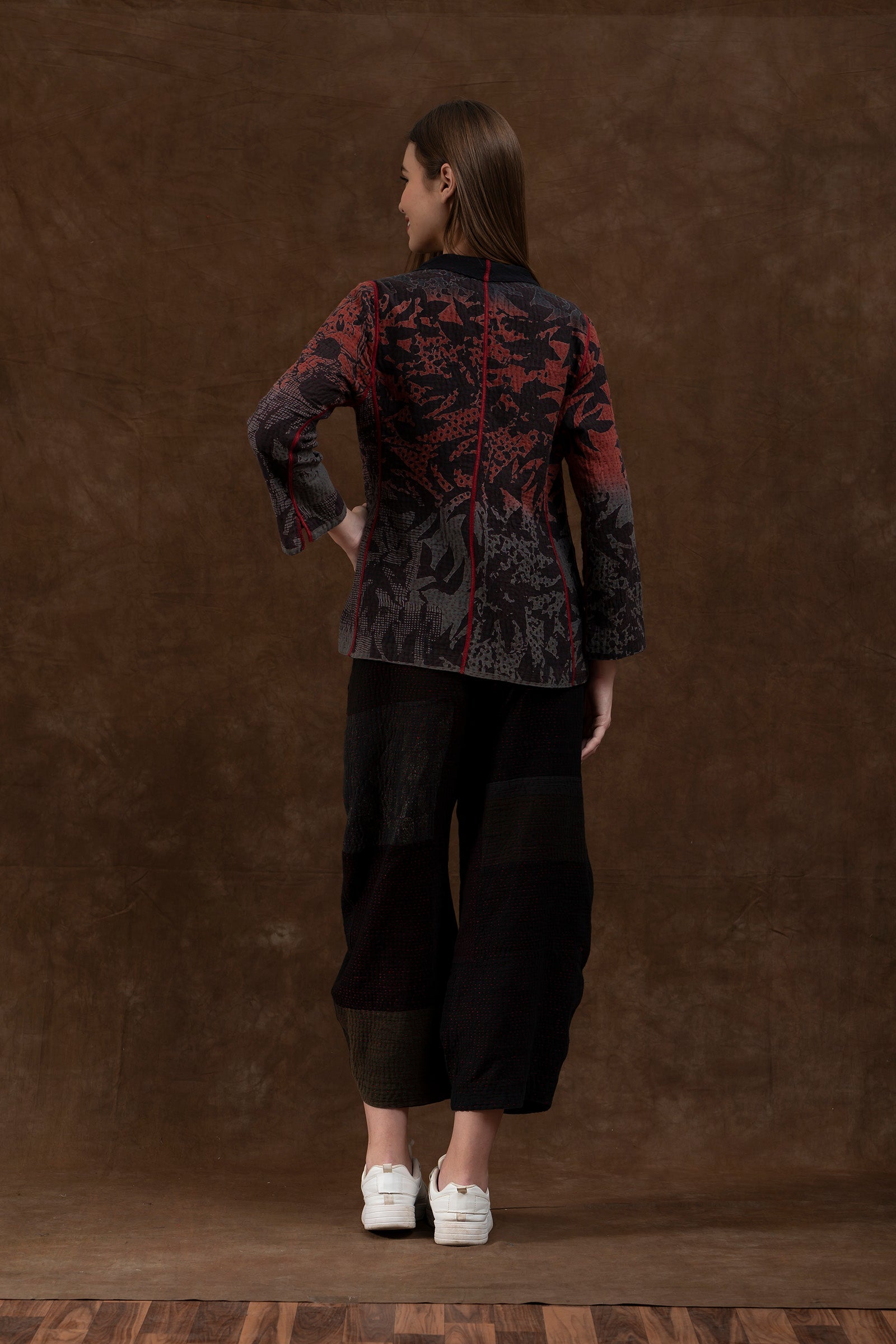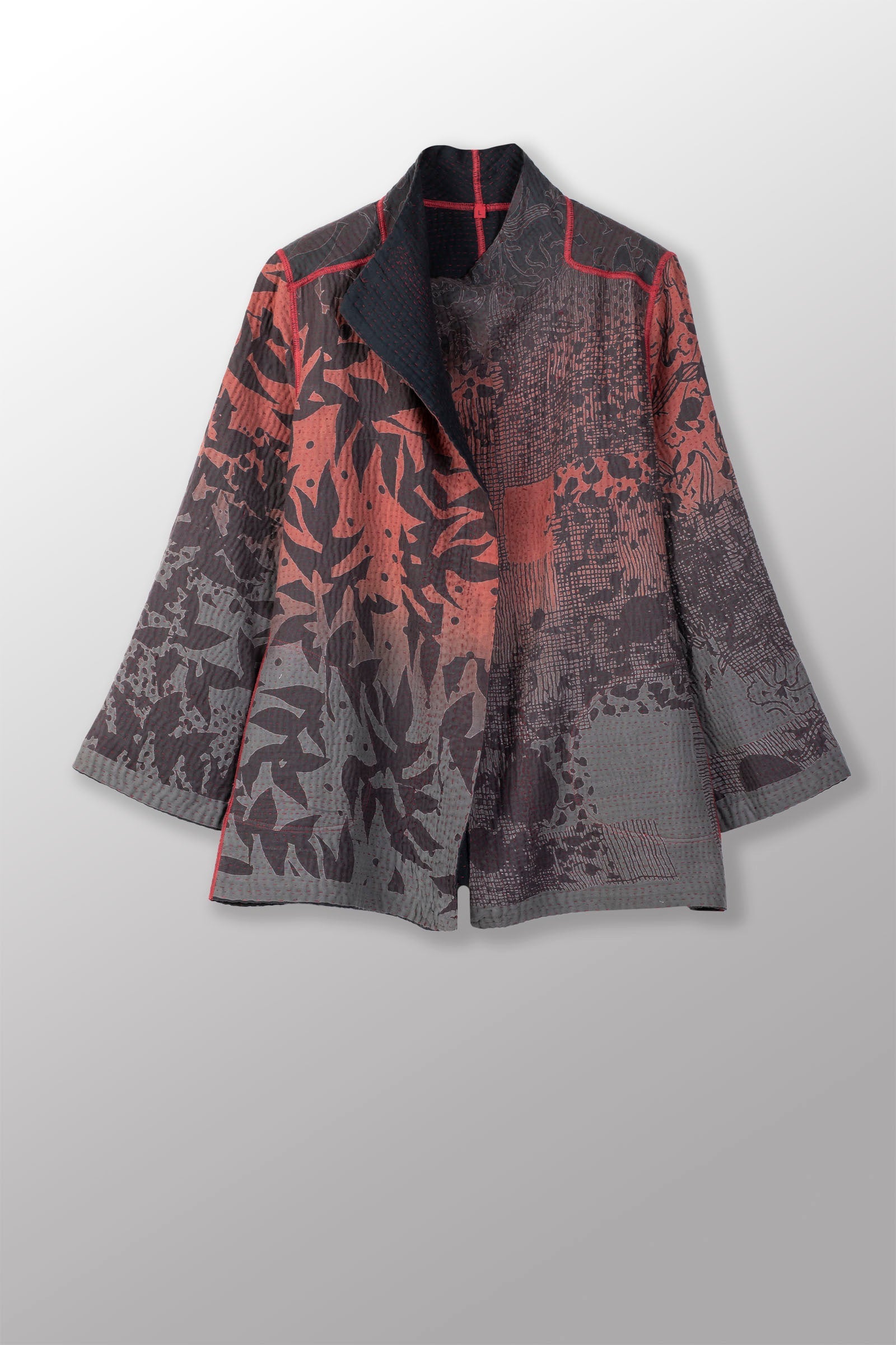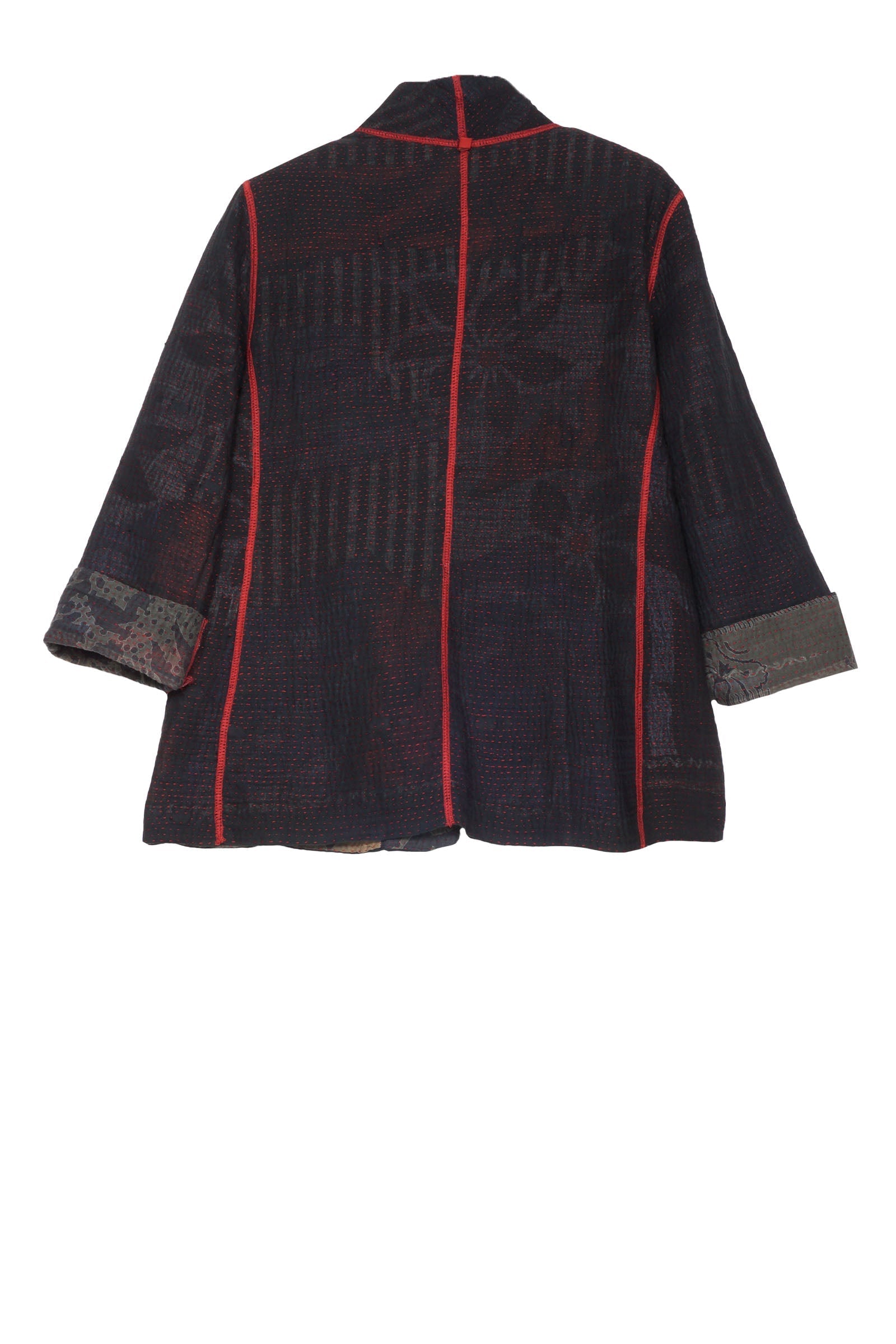 MONOTONE TWILIGHT PRINT KANTHA SHORT JKT - tp4007-red -