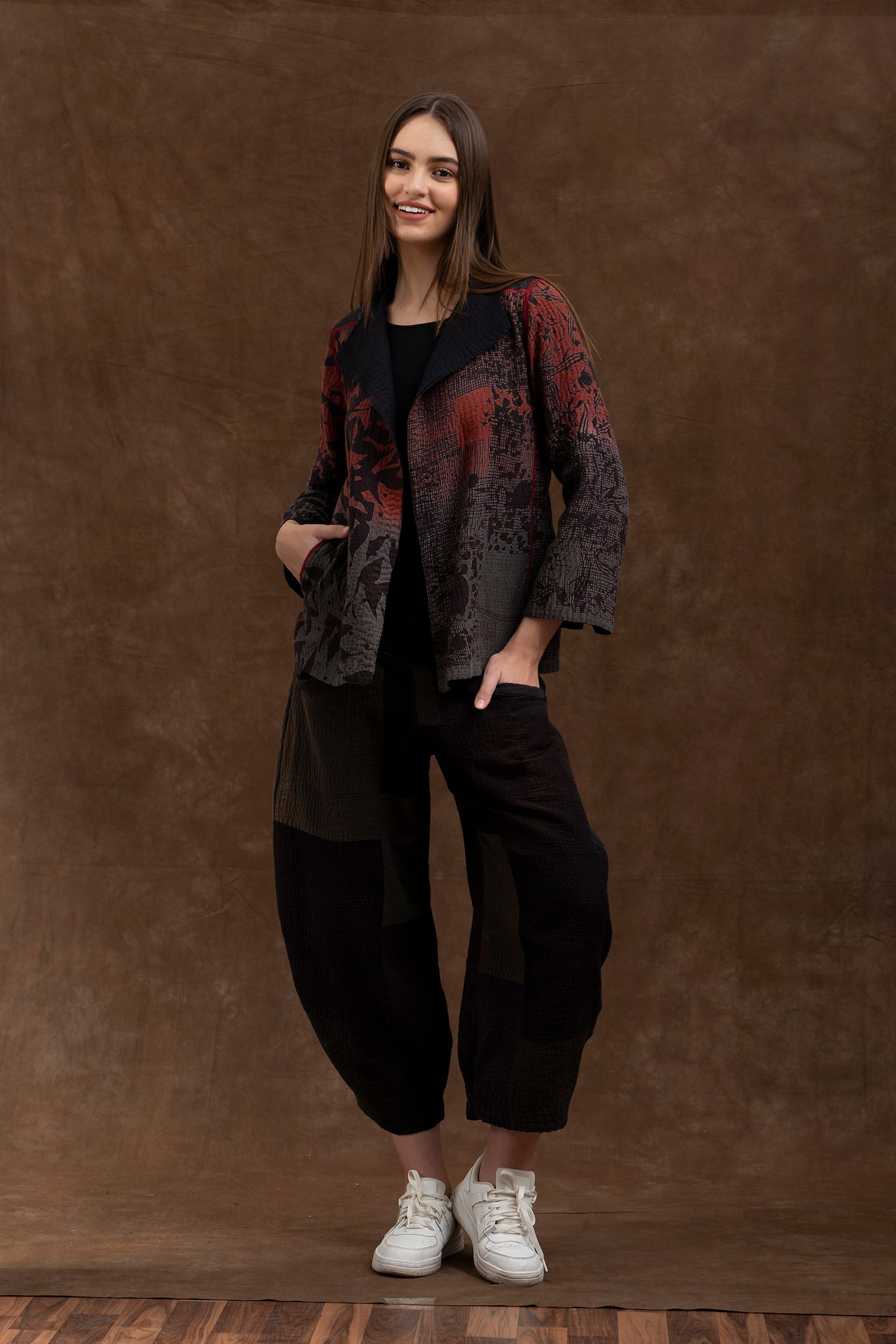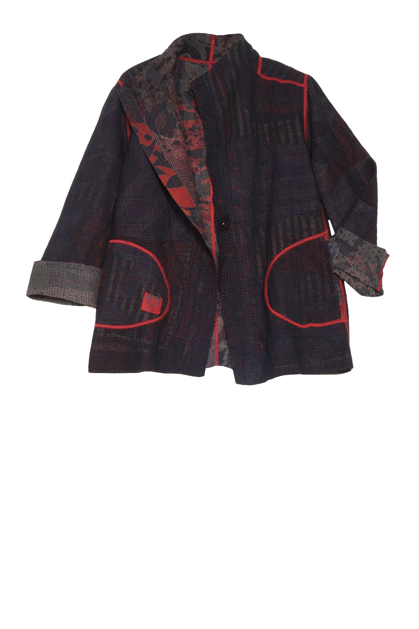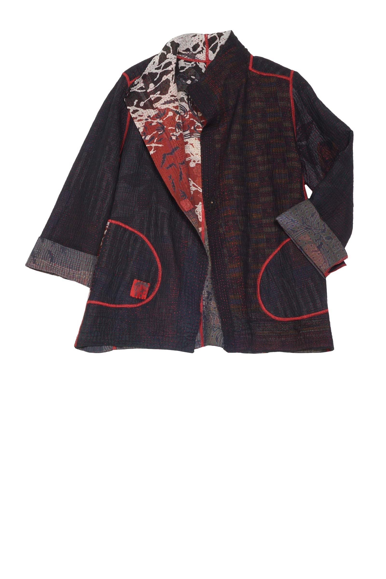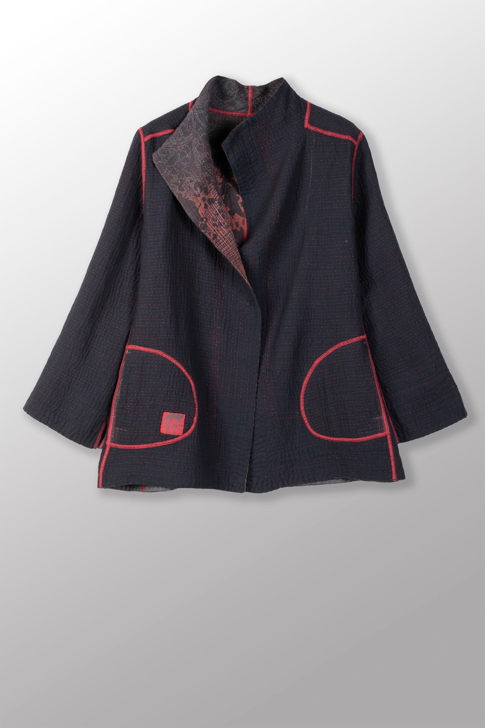 MONOTONE TWILIGHT PRINT KANTHA SHORT JKT - tp4007-red -