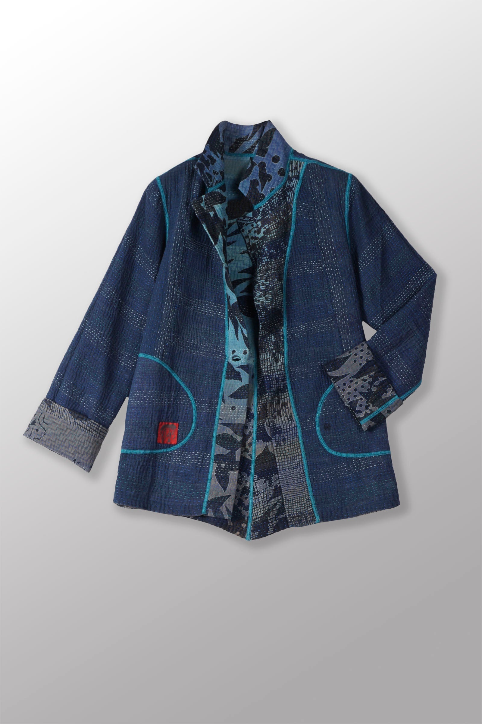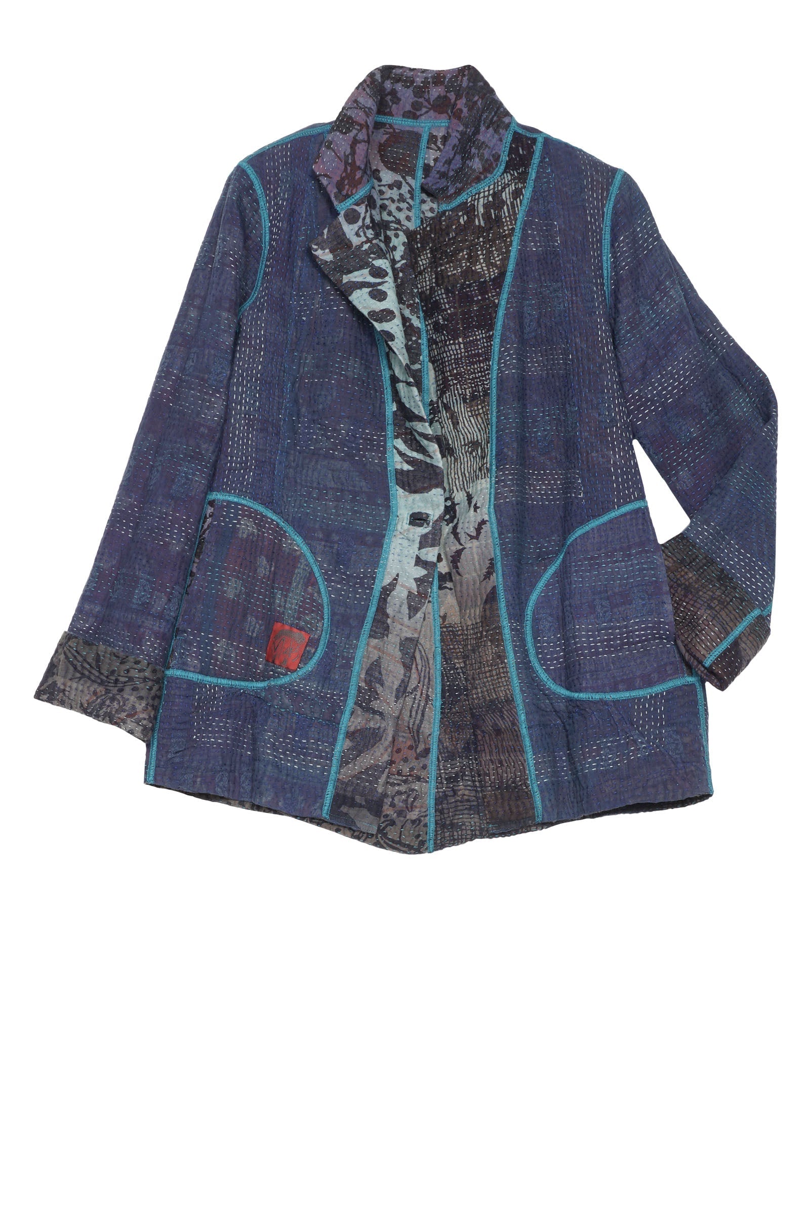 MONOTONE TWILIGHT PRINT KANTHA SIMPLE JKT - tp4022-blu -
