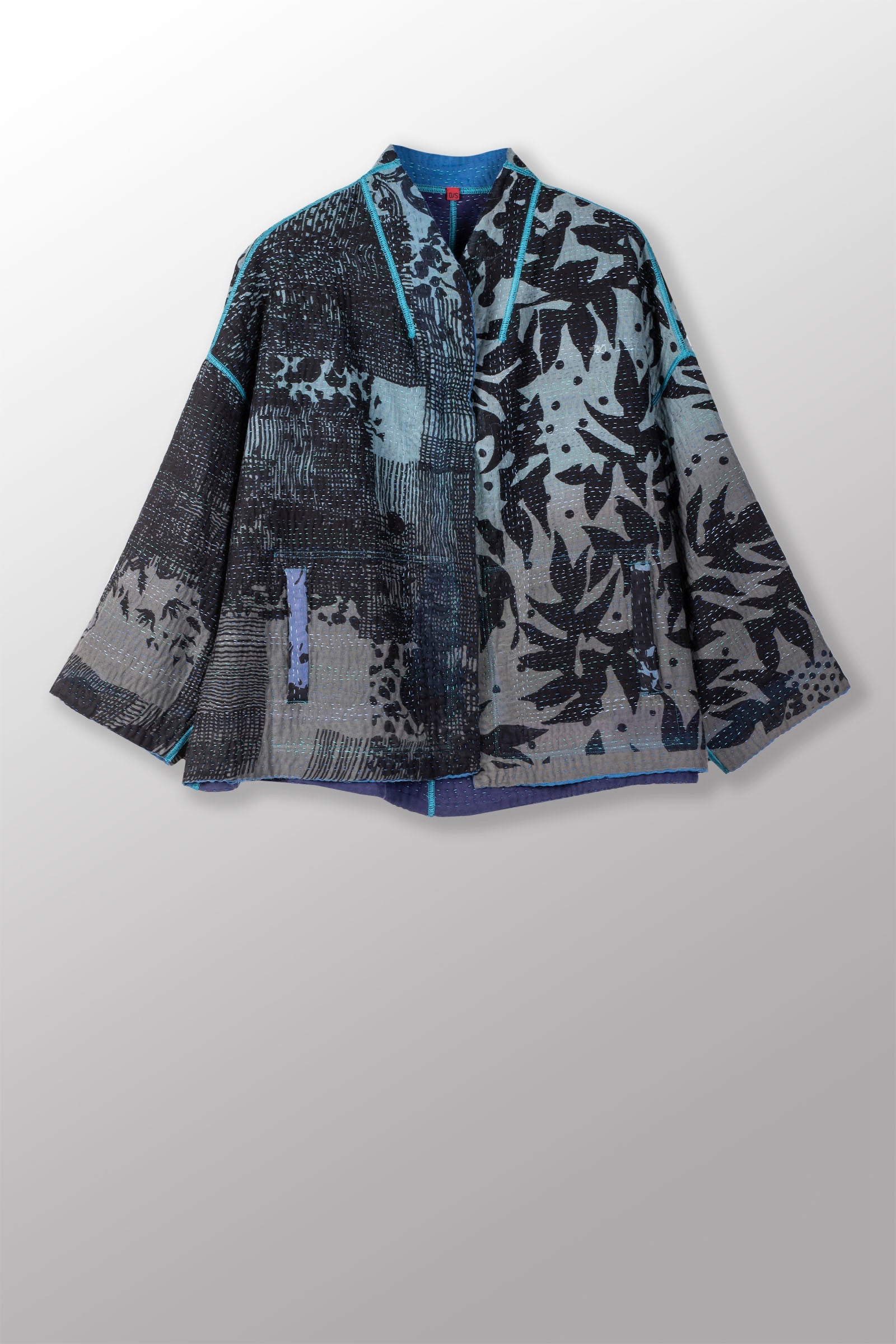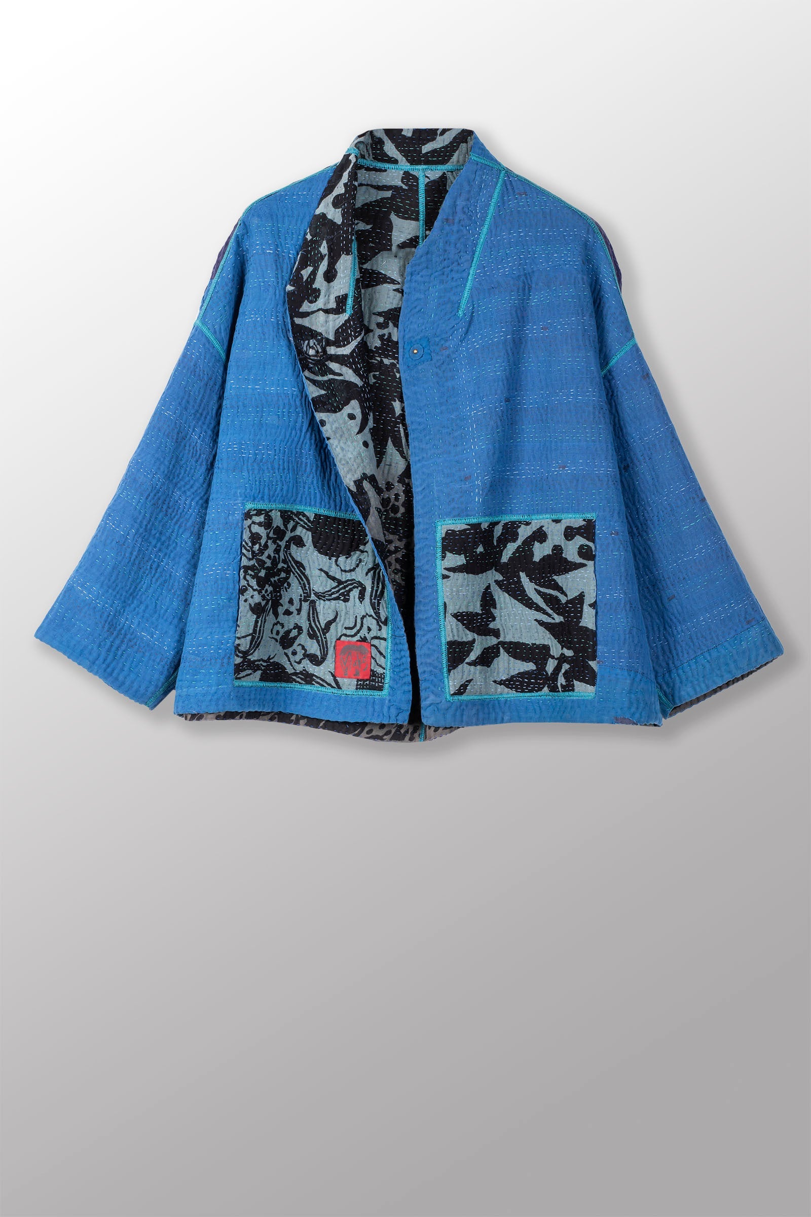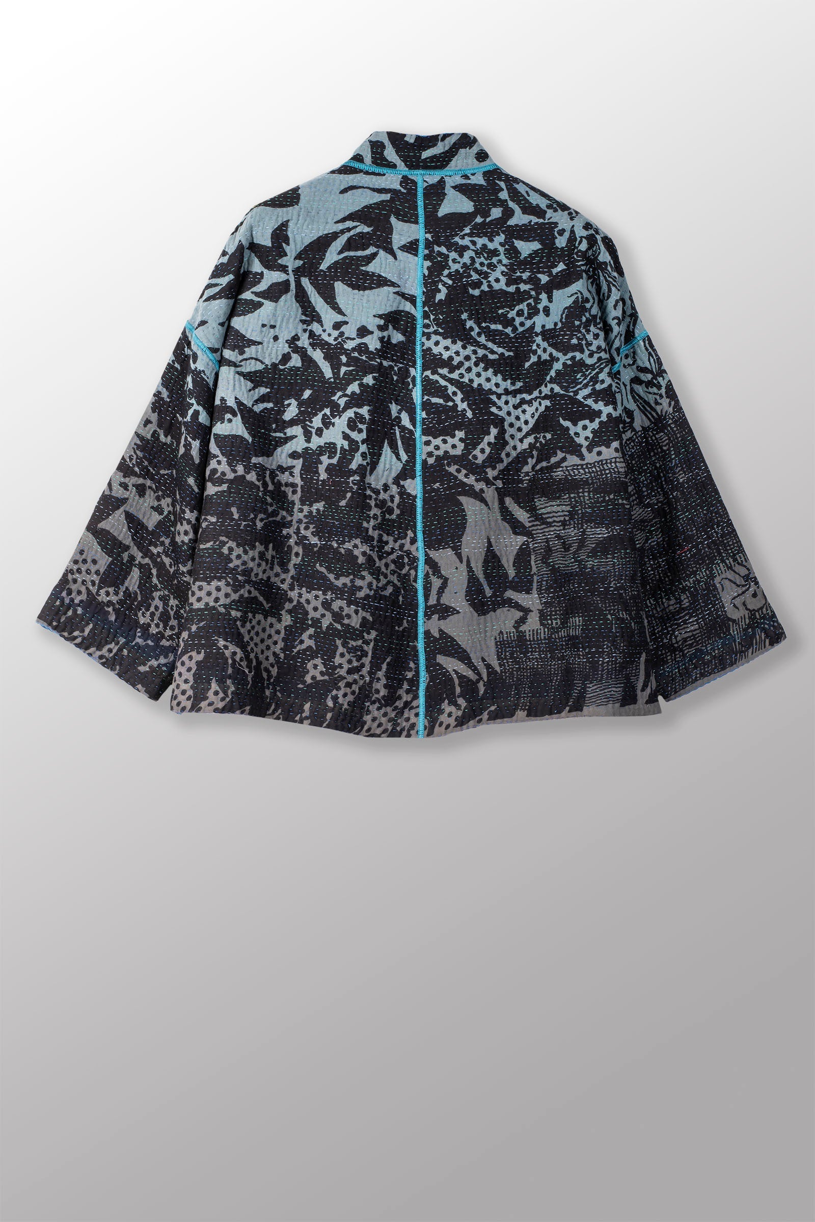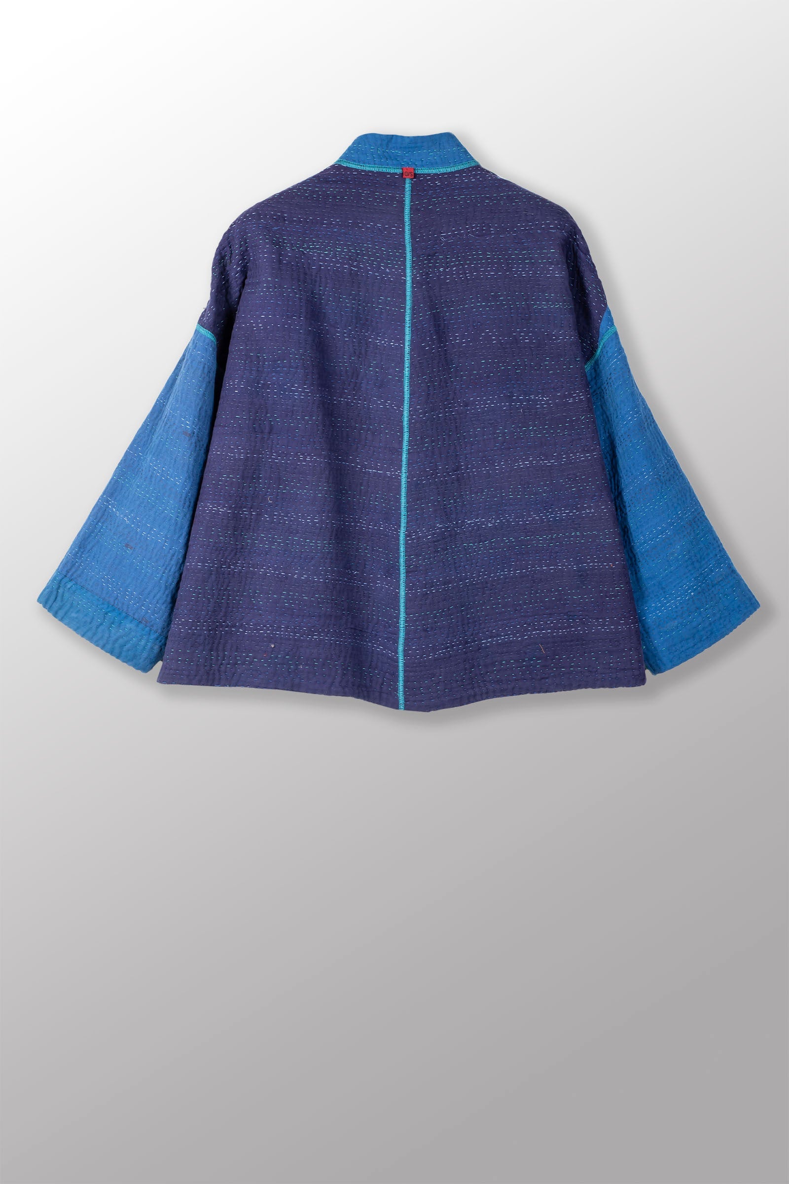 MONOTONE TWILIGHT PRINT KANTHA STAND COLLAR CROPPED JKT - tp4034-blu -