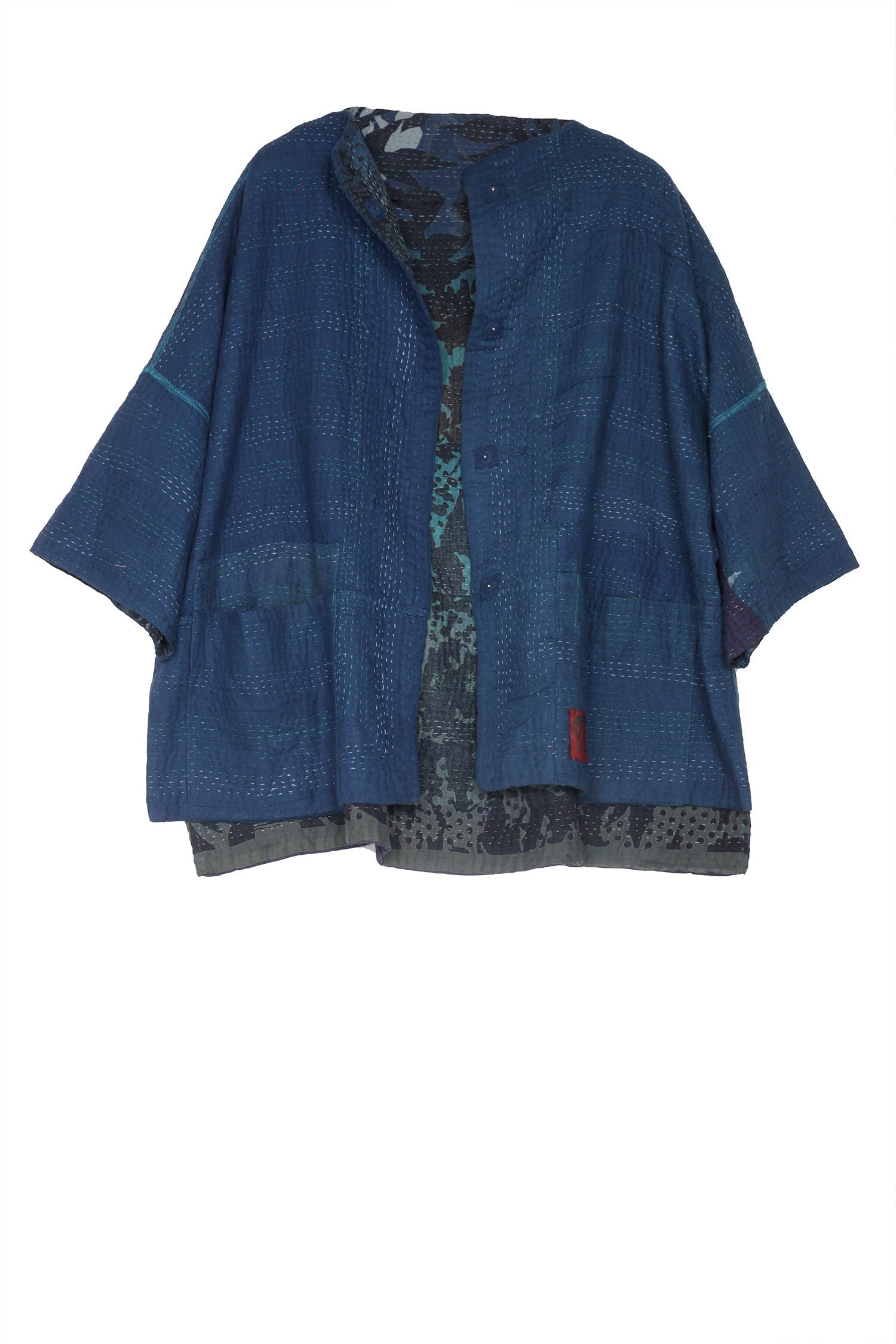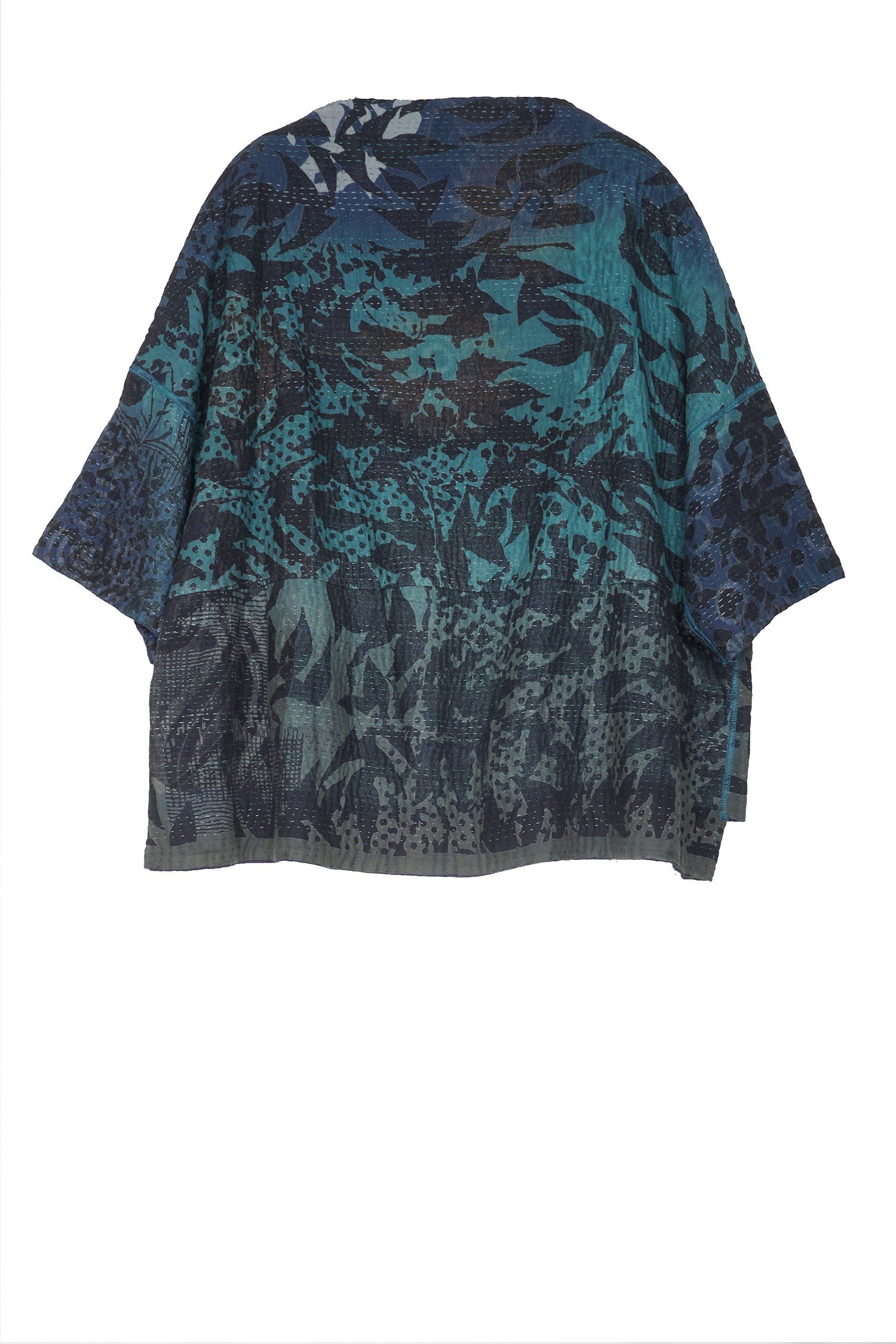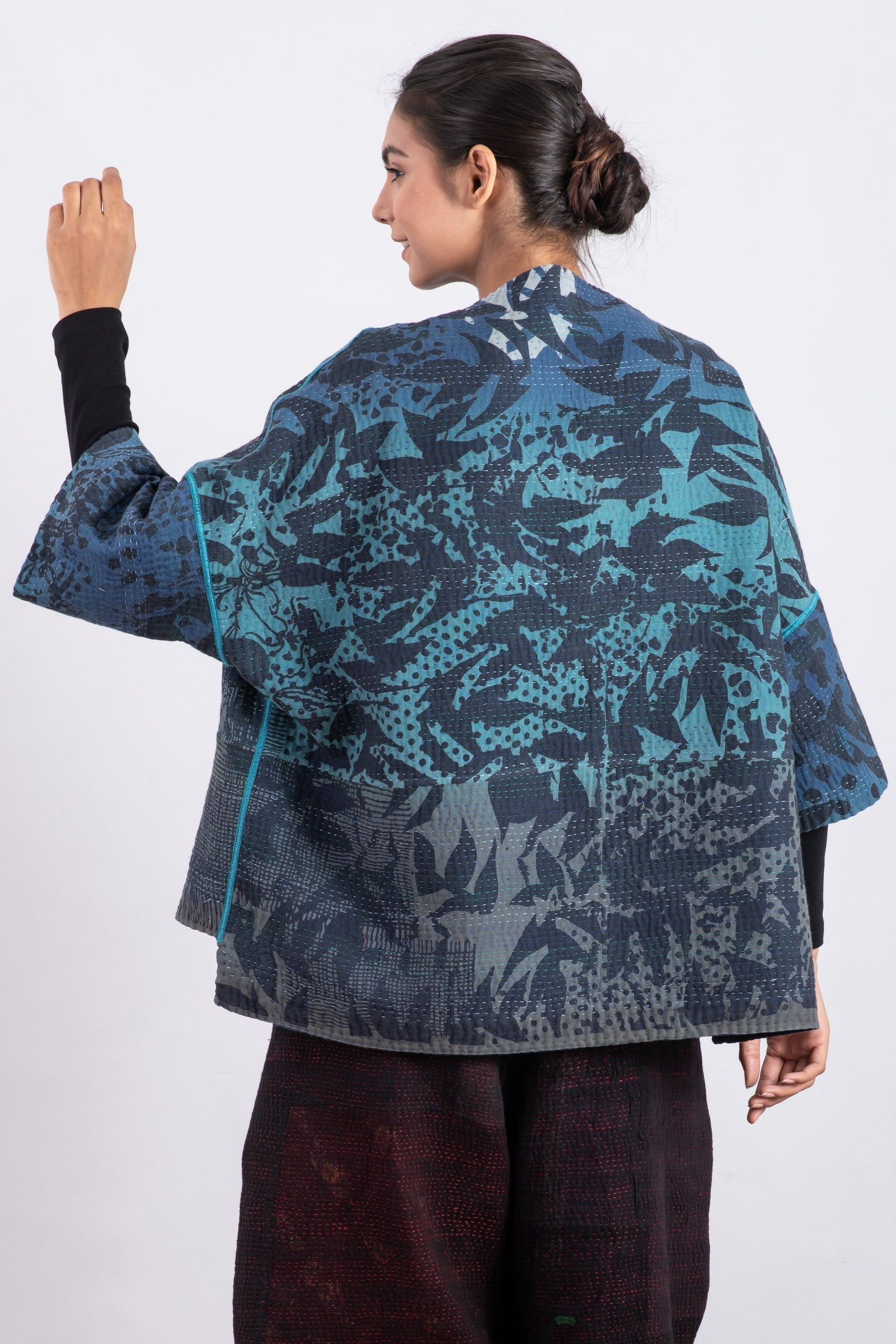 MONOTONE TWILIGHT PRINT KANTHA STRAIGHT NECK JKT - tp4058-blu -