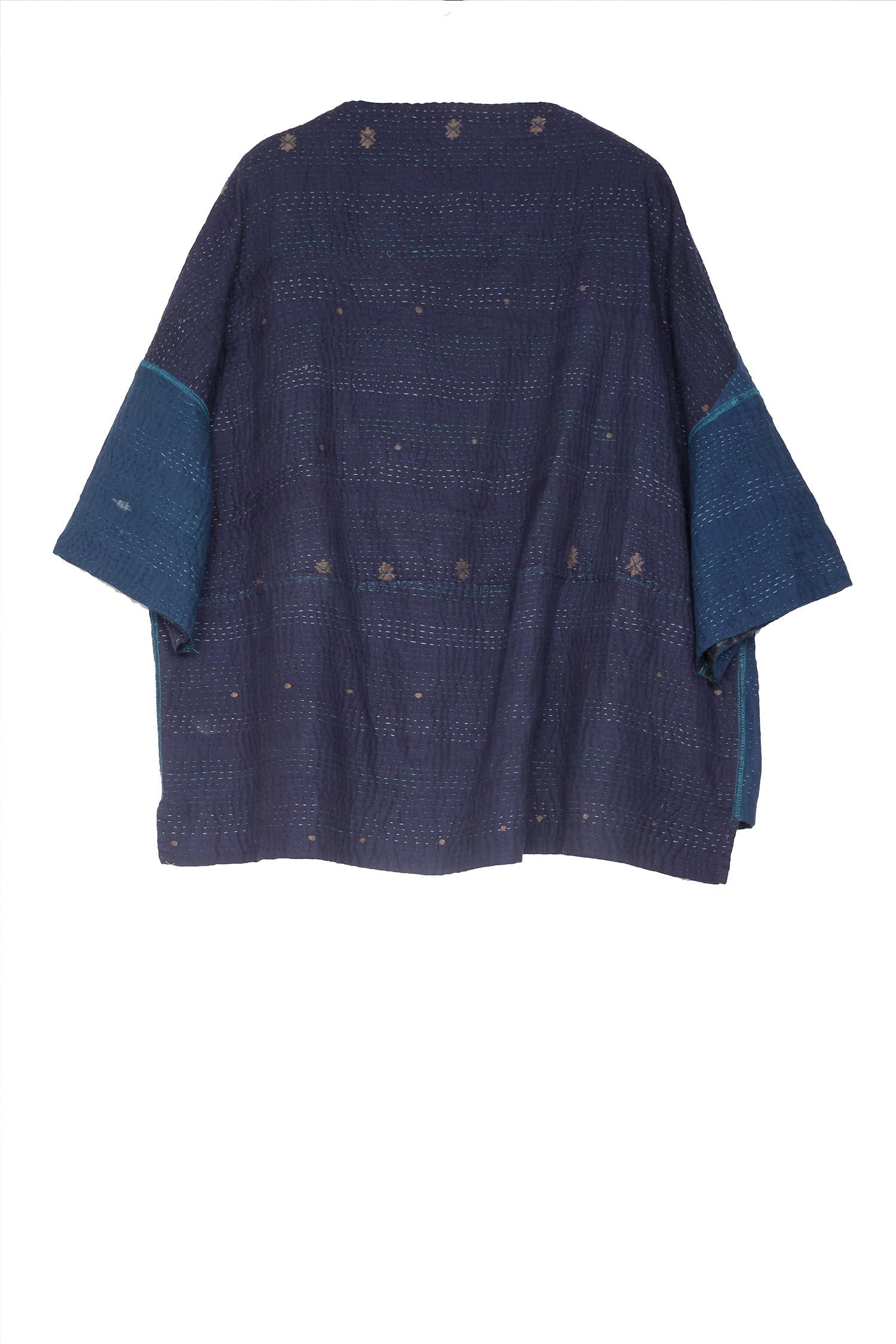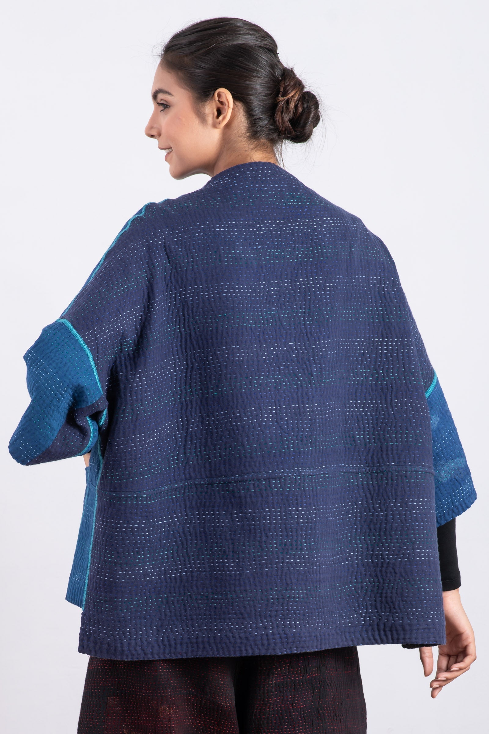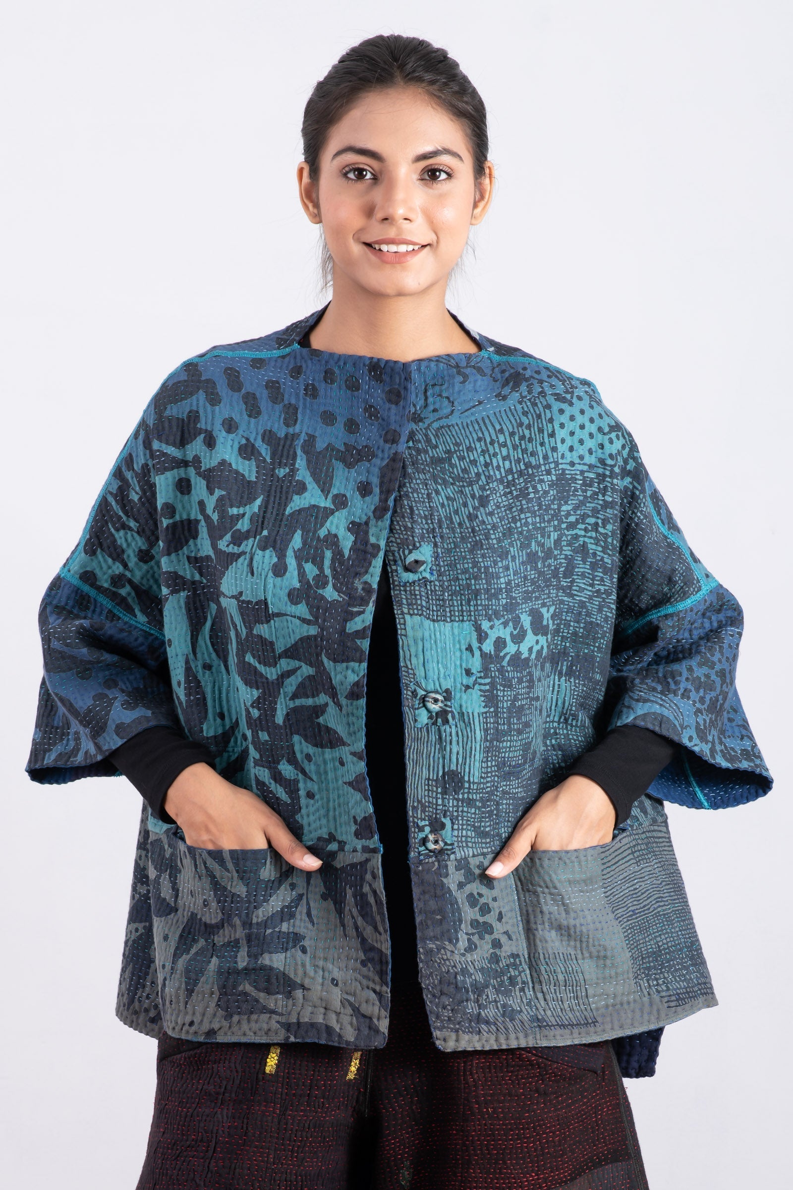 MONOTONE TWILIGHT PRINT KANTHA STRAIGHT NECK JKT - tp4058-blu -