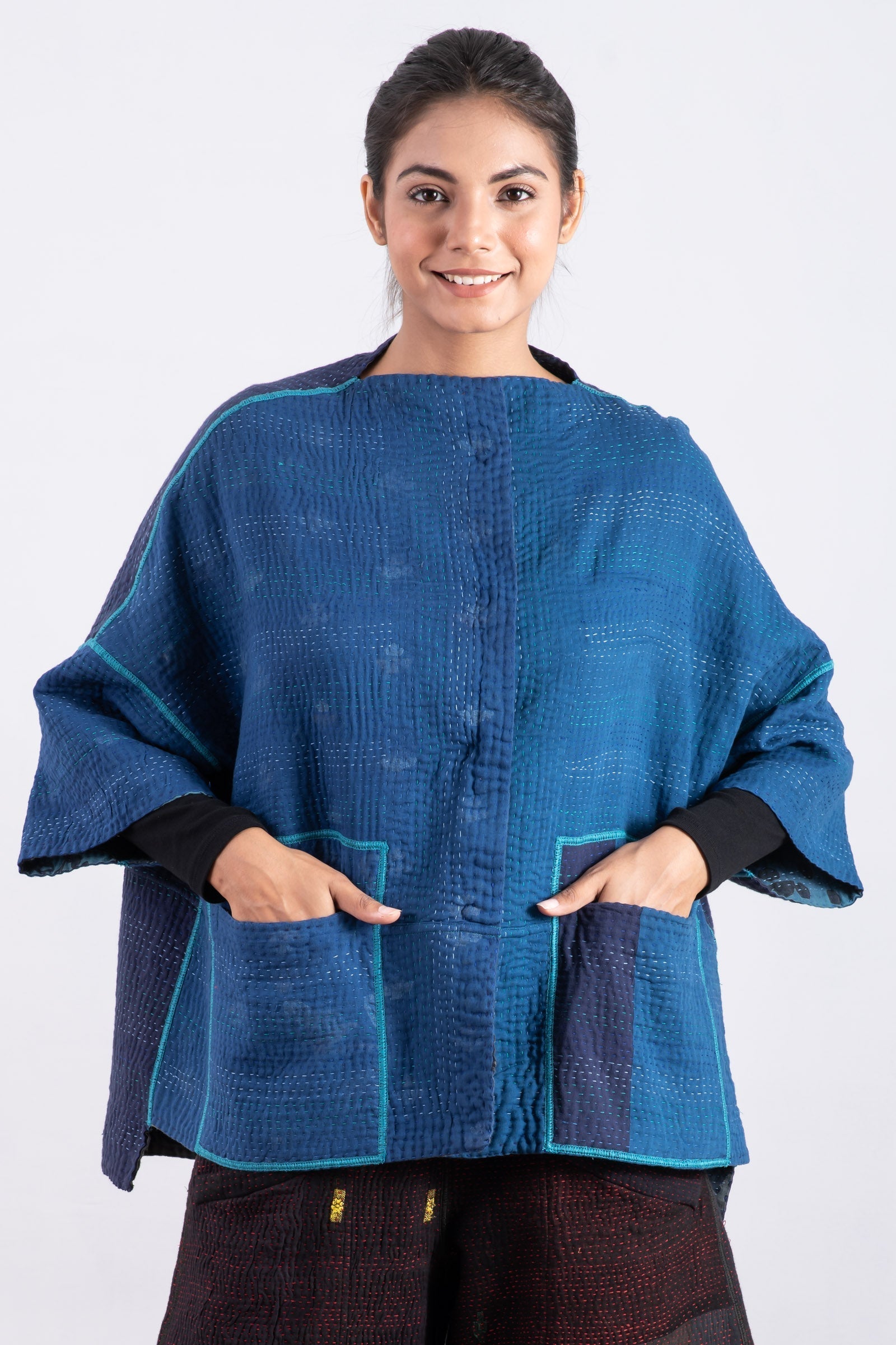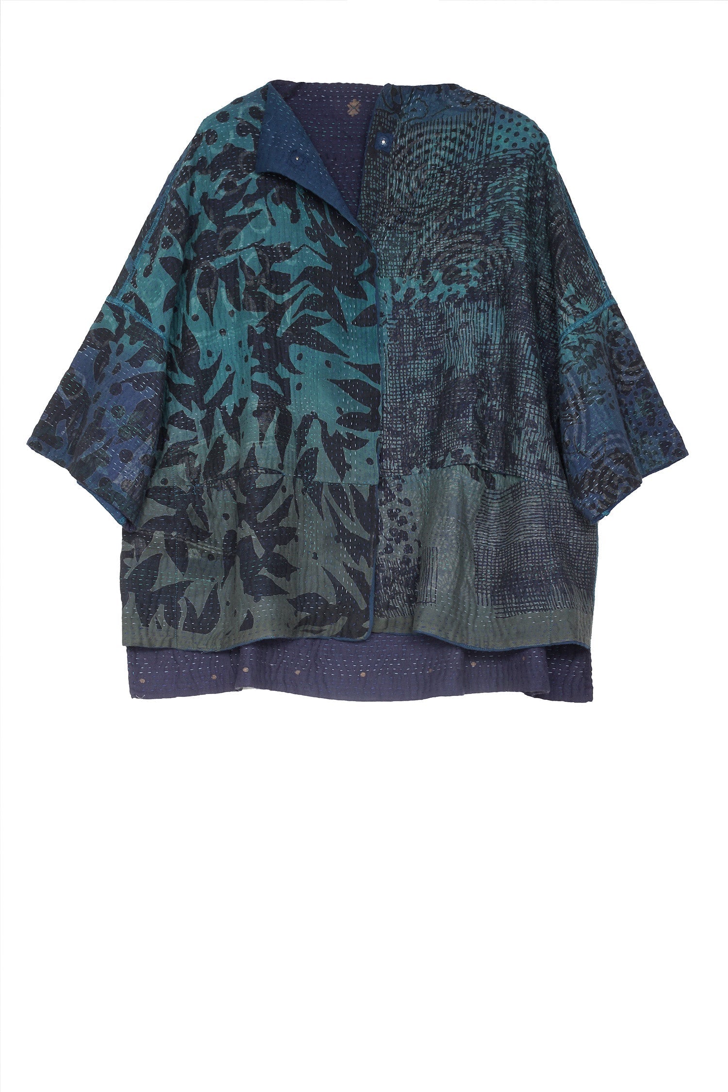 4 Layer Vintage Saris with Hand Stitches on Entire Garment - Reversible