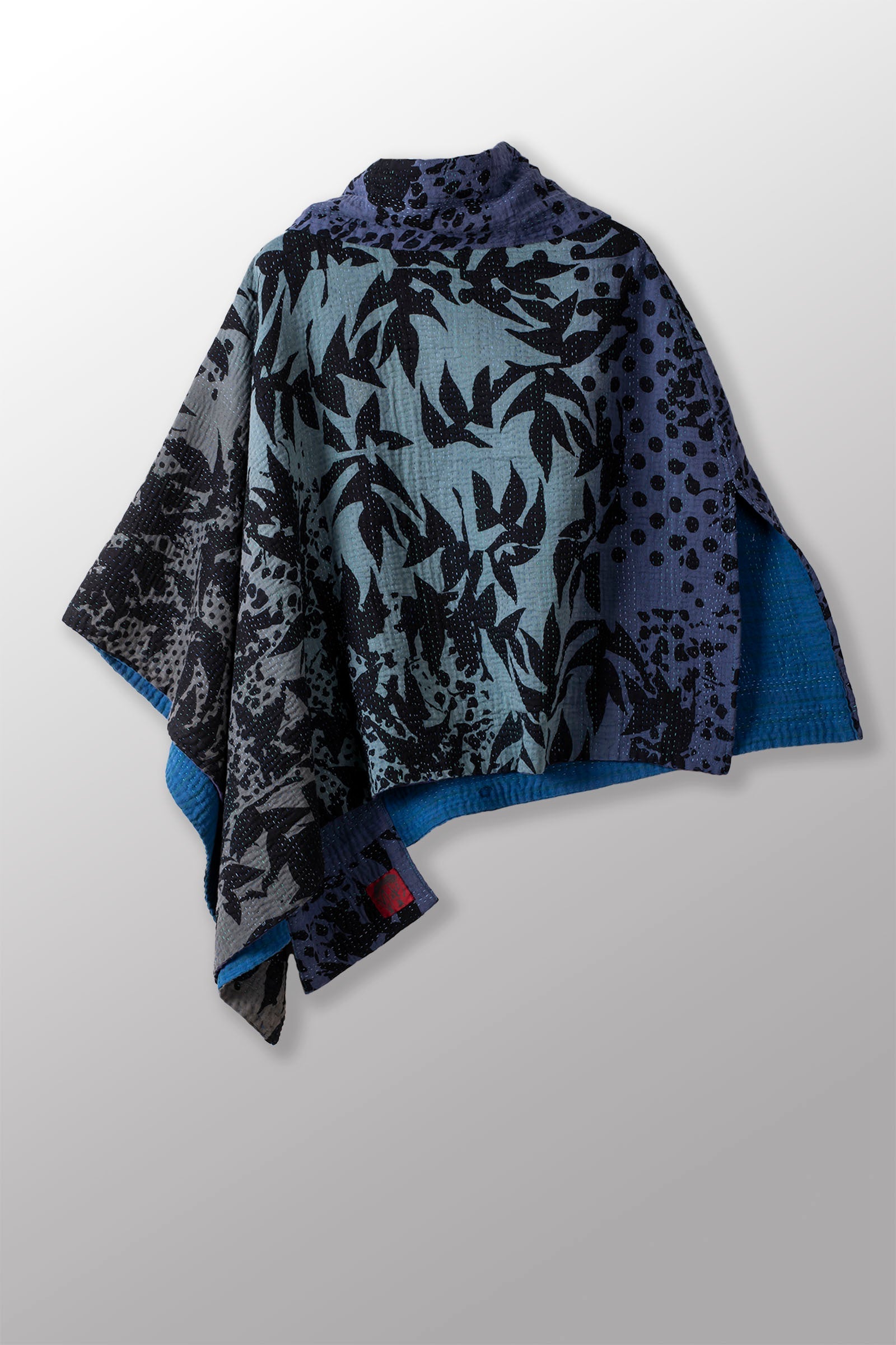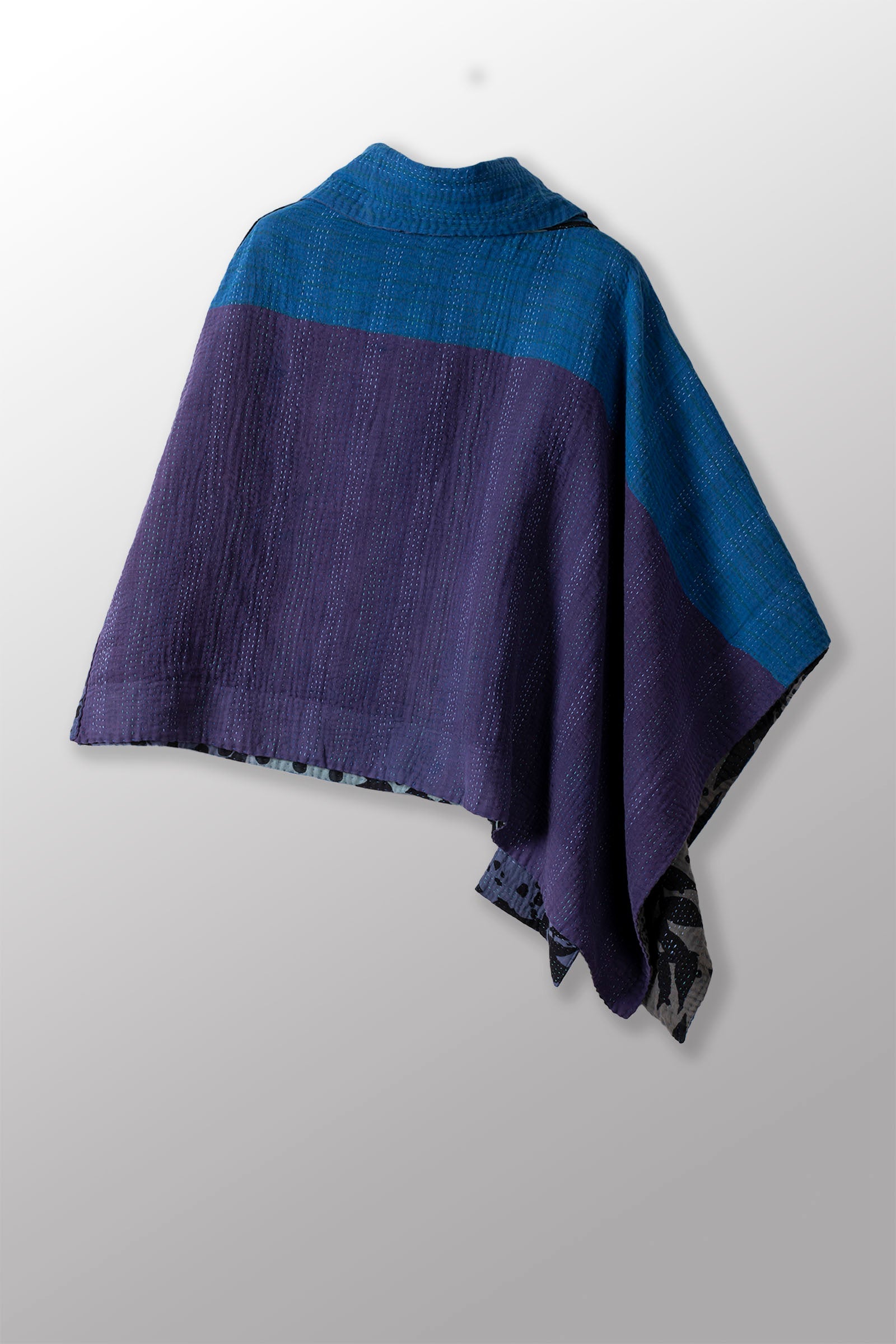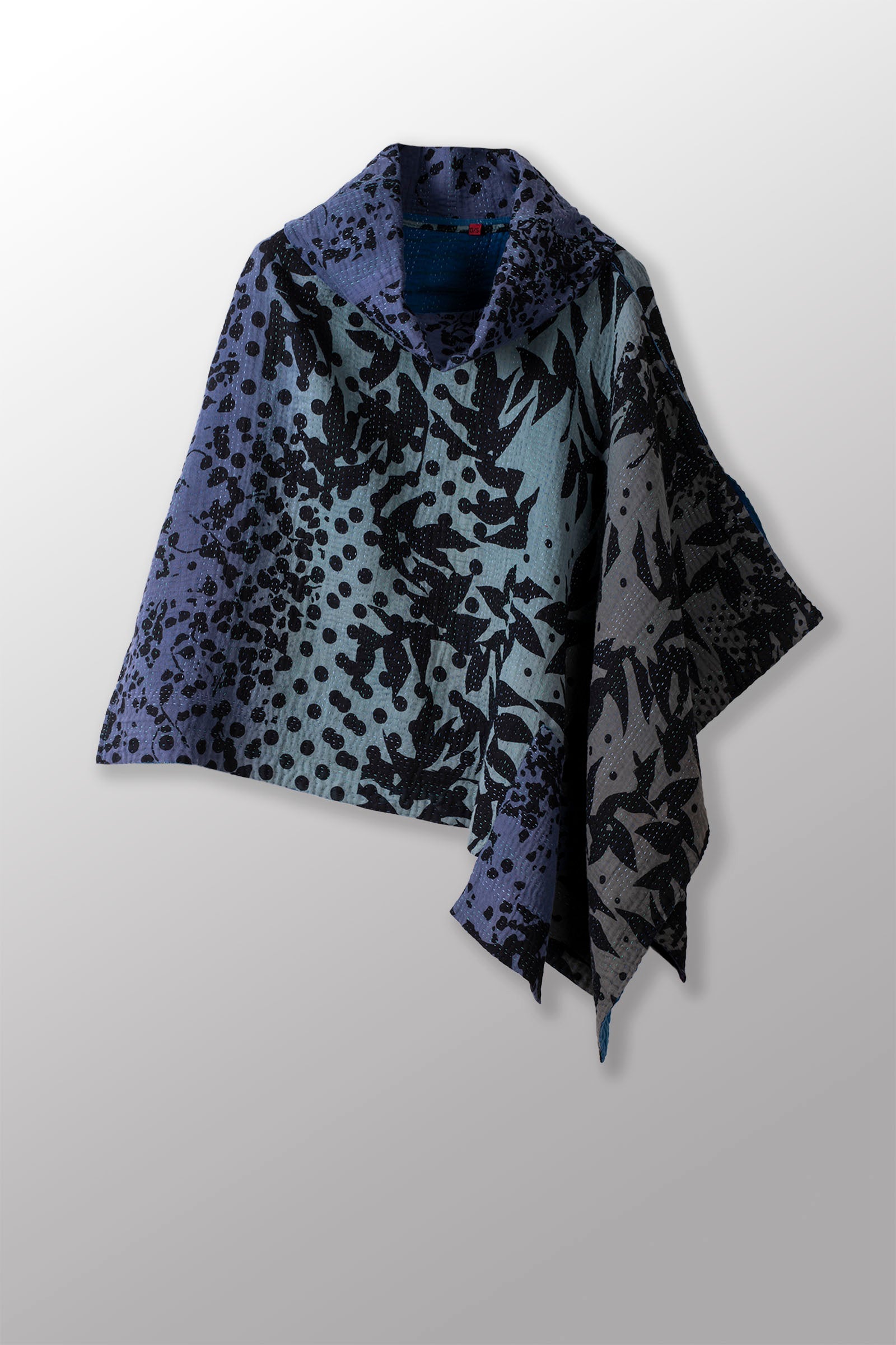 MONOTONE TWILIGHT PRINT KANTHACOWL NECK LONG CAPE - tp4842-blu -
