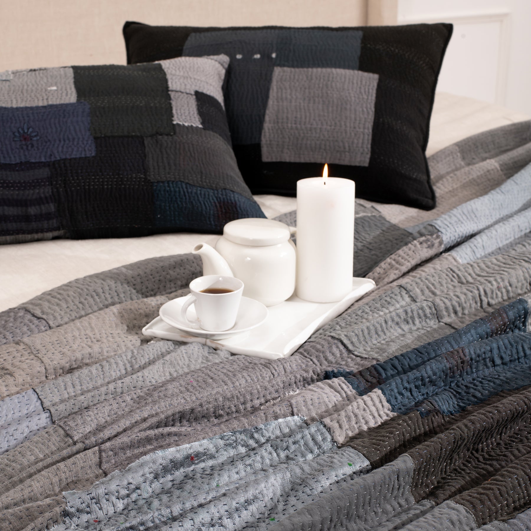 Mosaic Fray Handmade vintage Kantha bed cover- Black