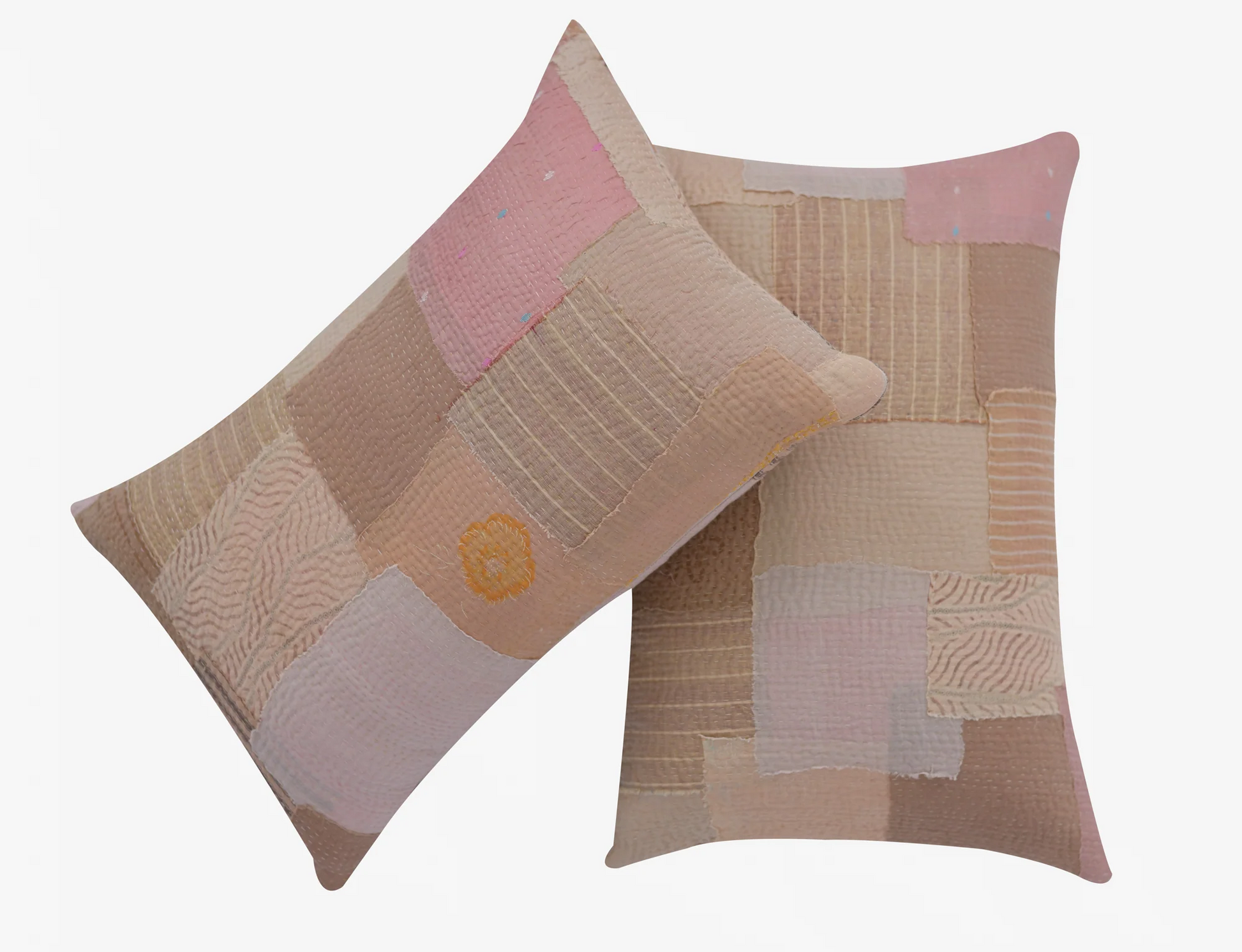 Mosaic Fray Handmade Vintage Kantha Pillow Sham -Taupe -