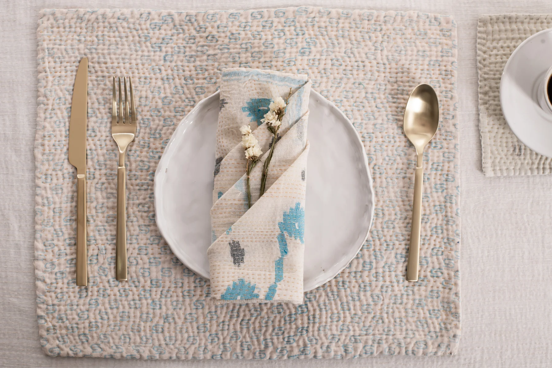 Mosaic Fray Handmade Vintage Kantha Placemat -Cauliflower (SET OF 2)