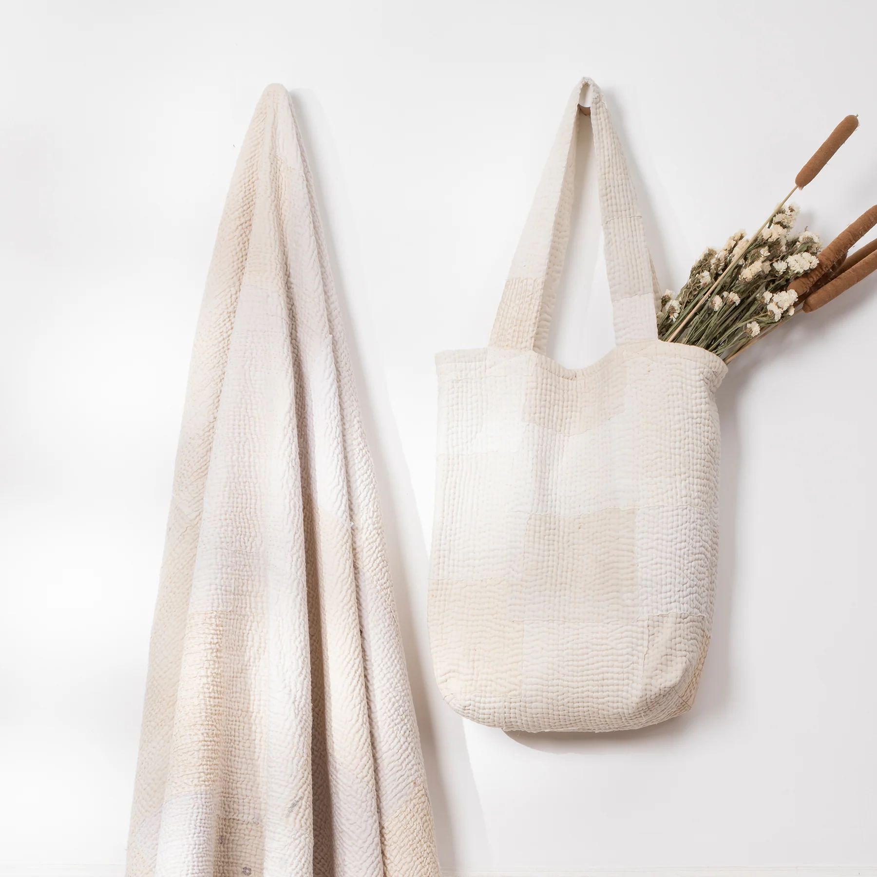 Mosaic Fray Handmade Vintage Kantha Tote Bag -Cauliflower -