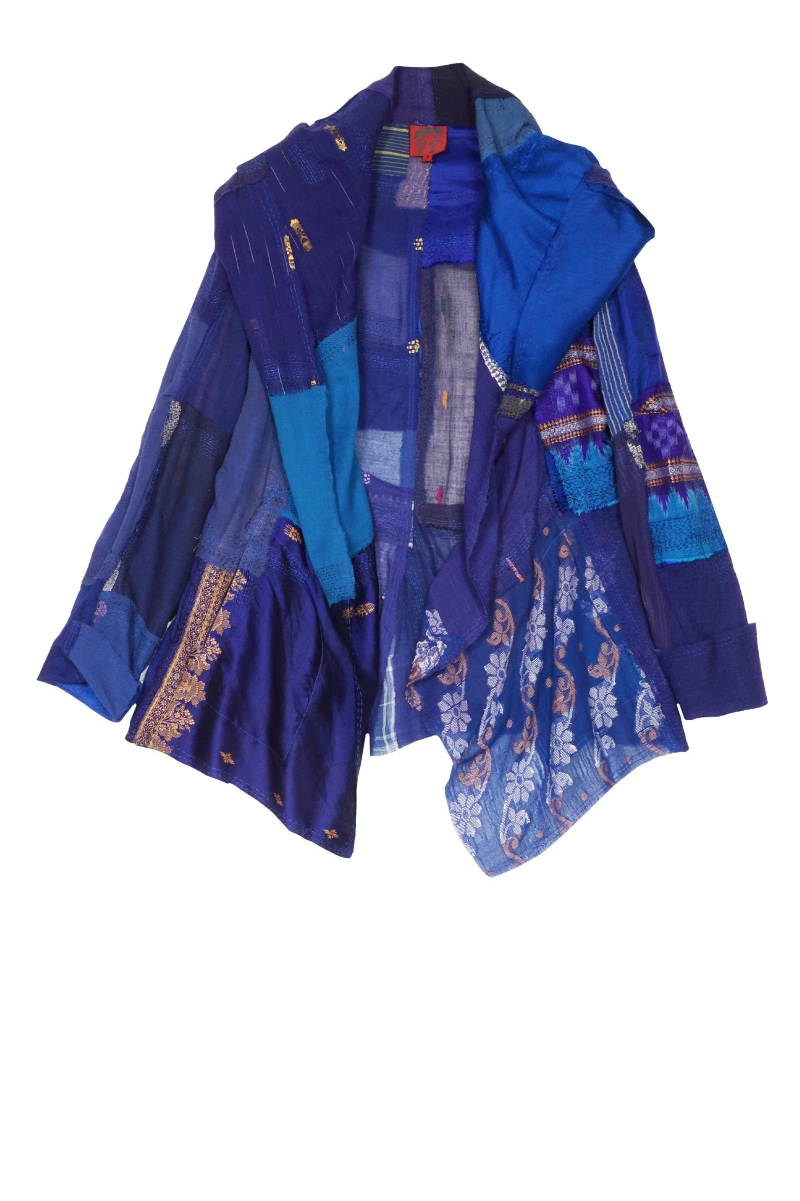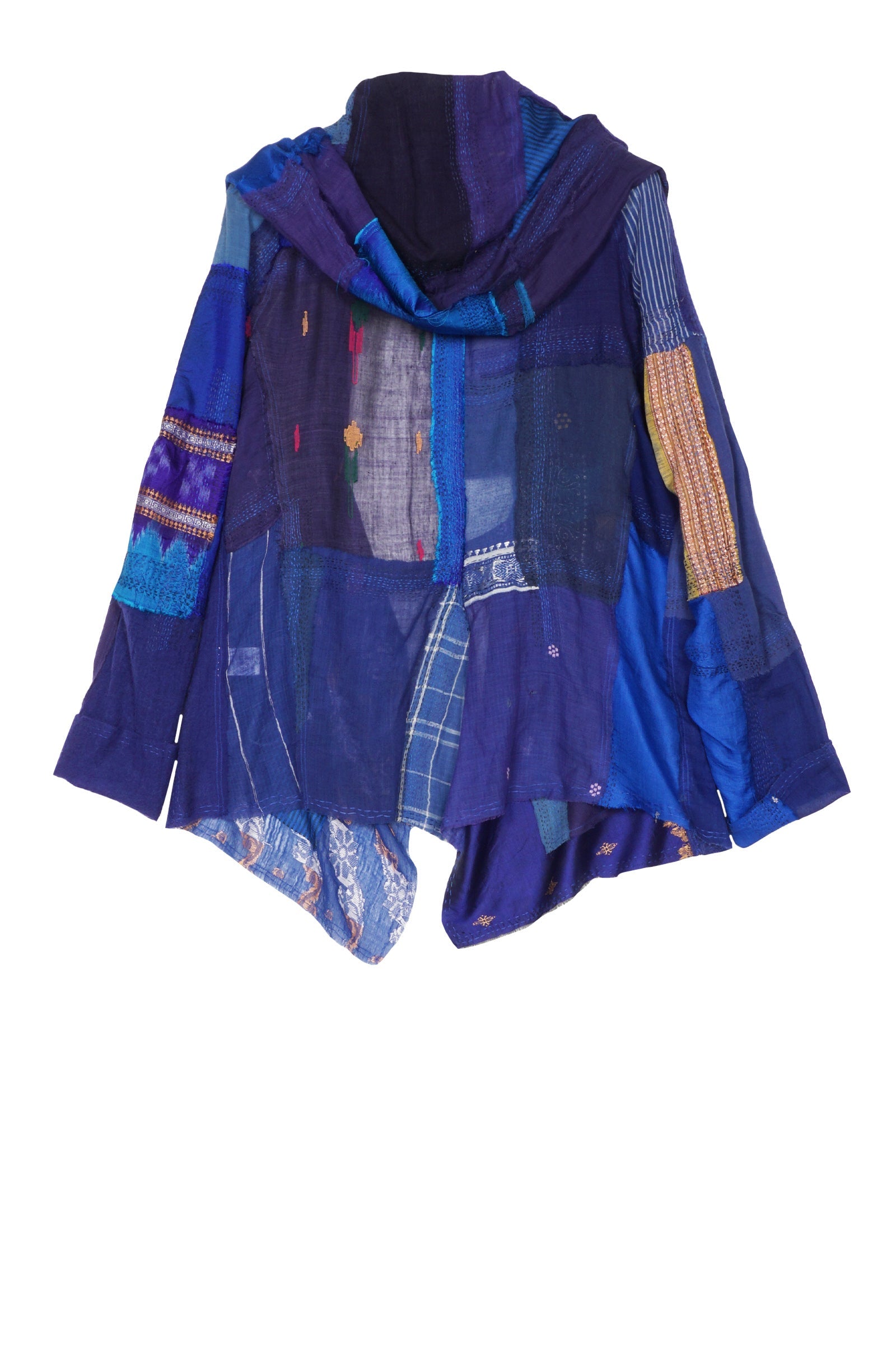 MOSAIC TILE PATCH KANTHA HOODED JKT - mt1042-blu -