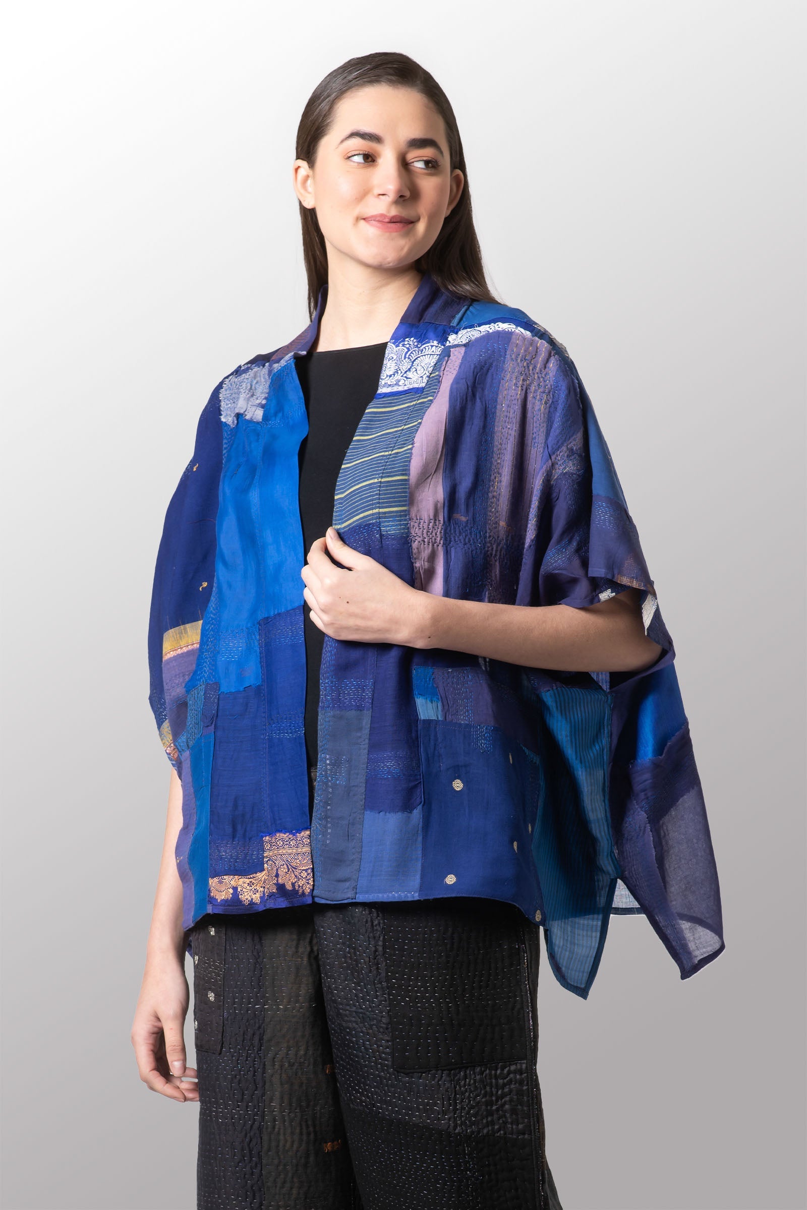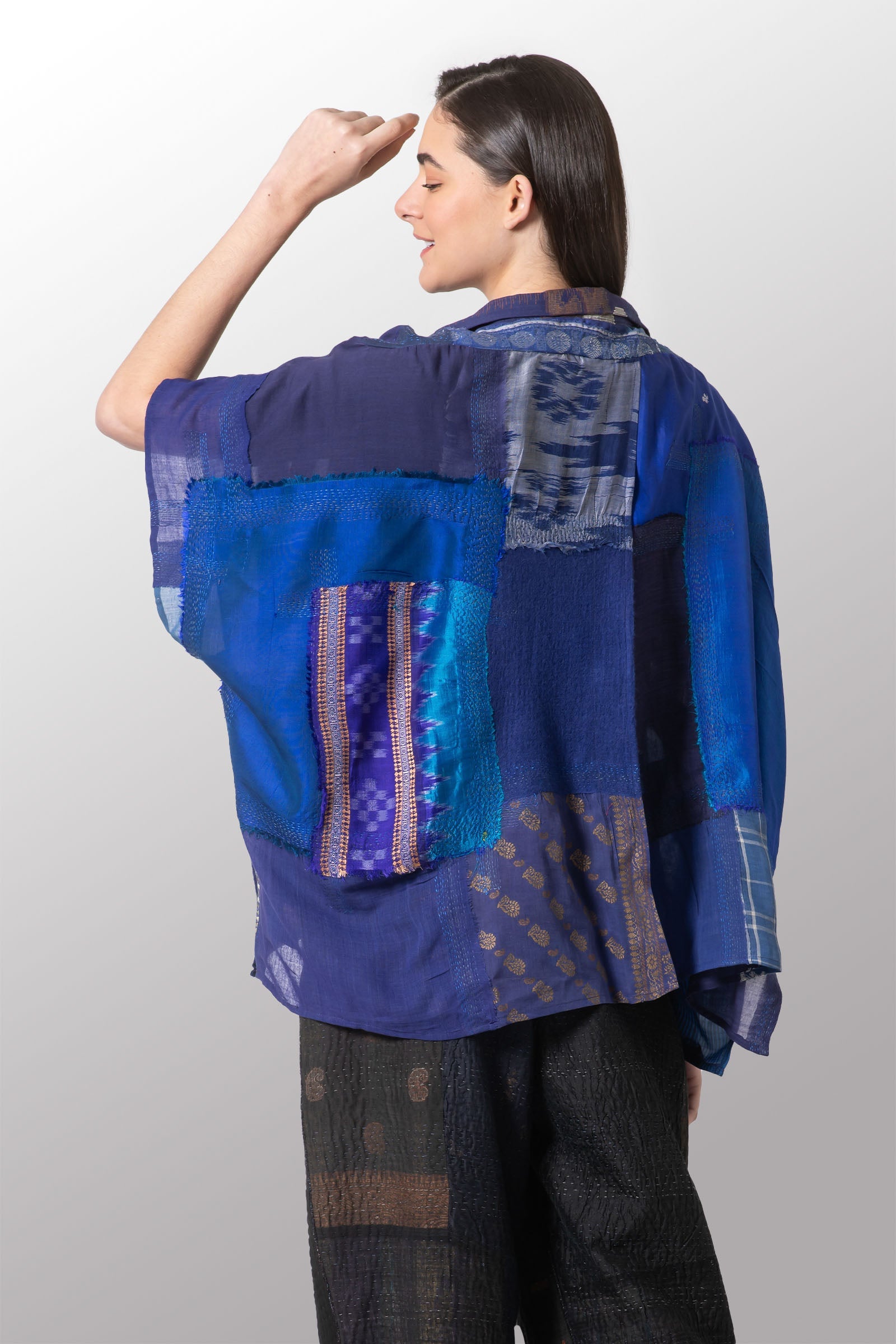 MOSAIC TILE PATCH KANTHA PONCHO TOP - mt1568-blu -
