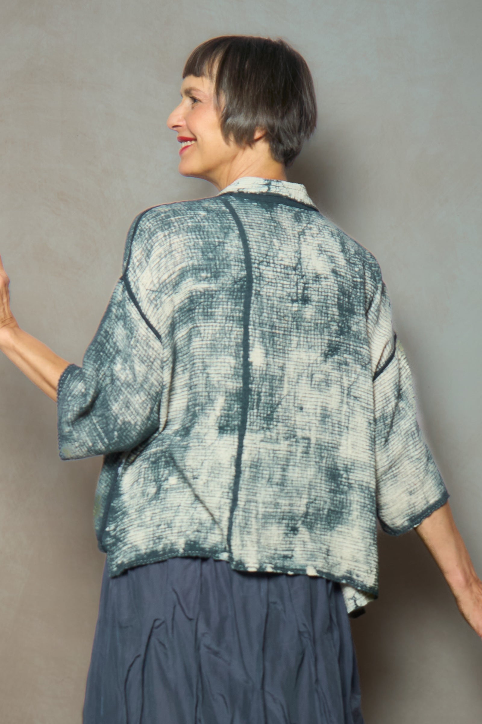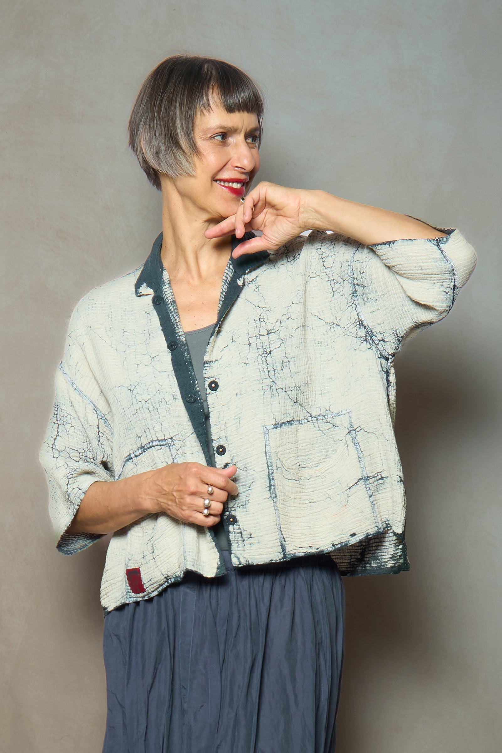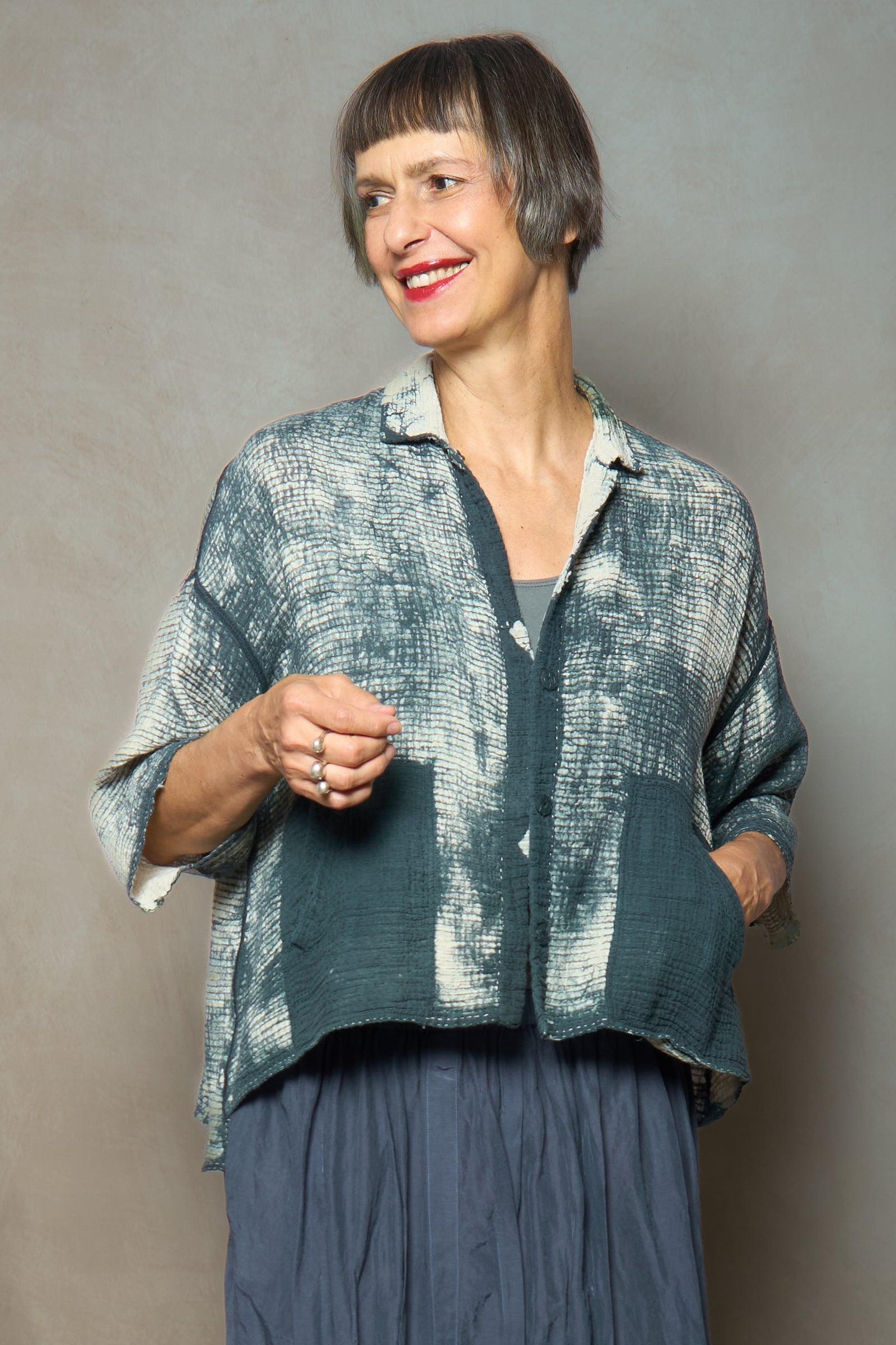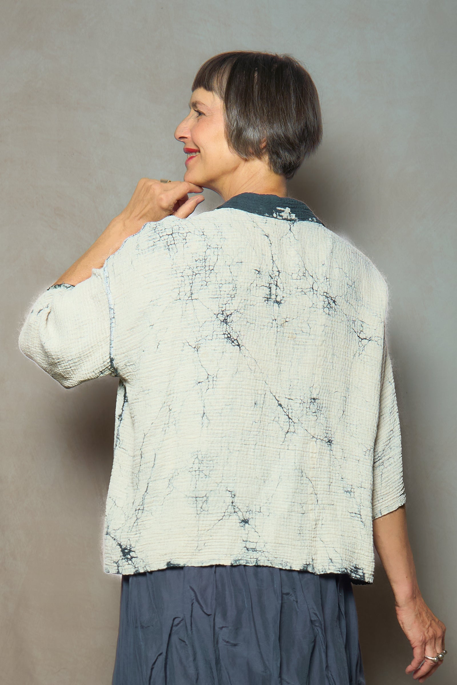 MUD DYE RIPPLE KANTHA CROPPED TENT SHIRT - yp2596-gry -