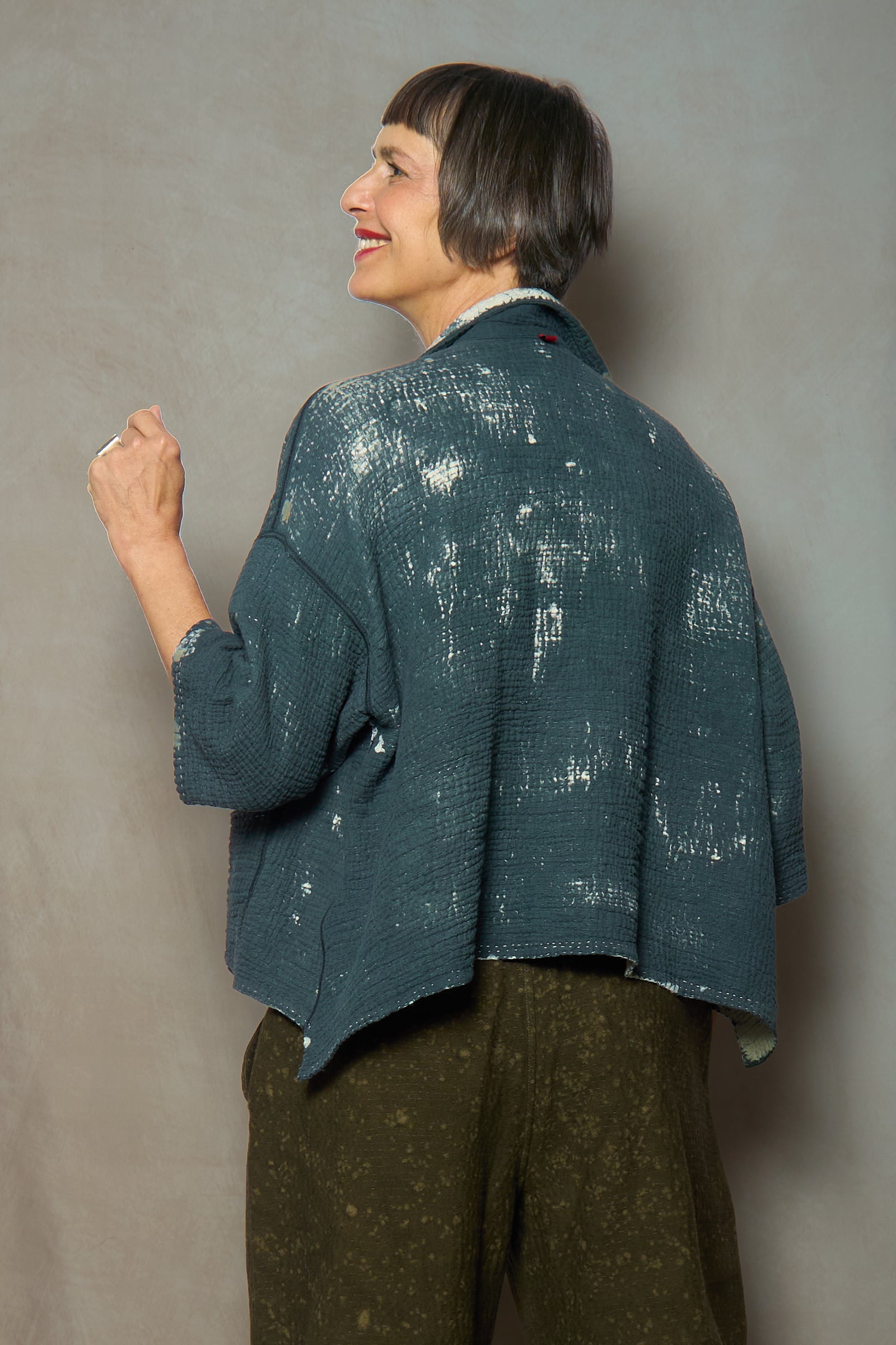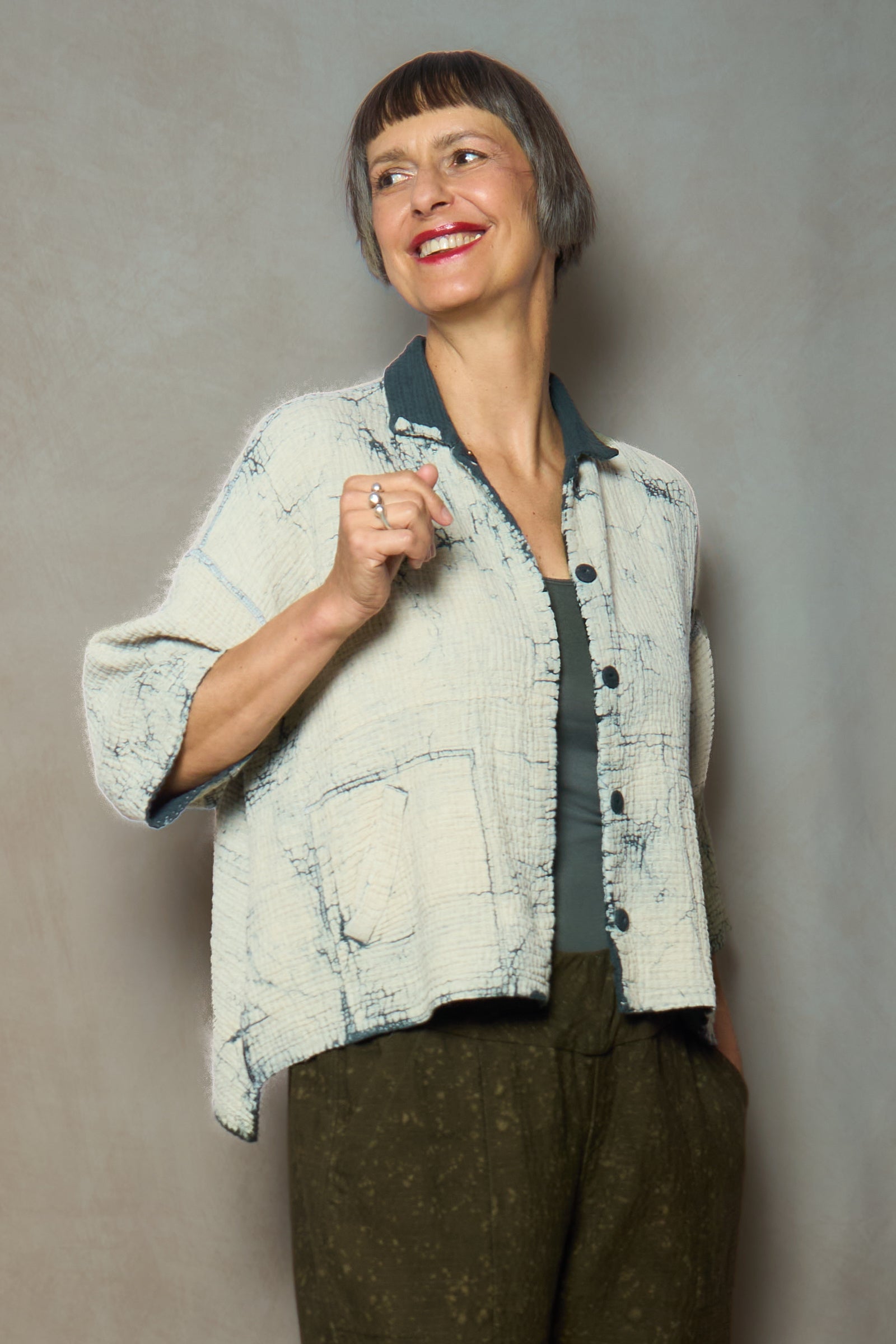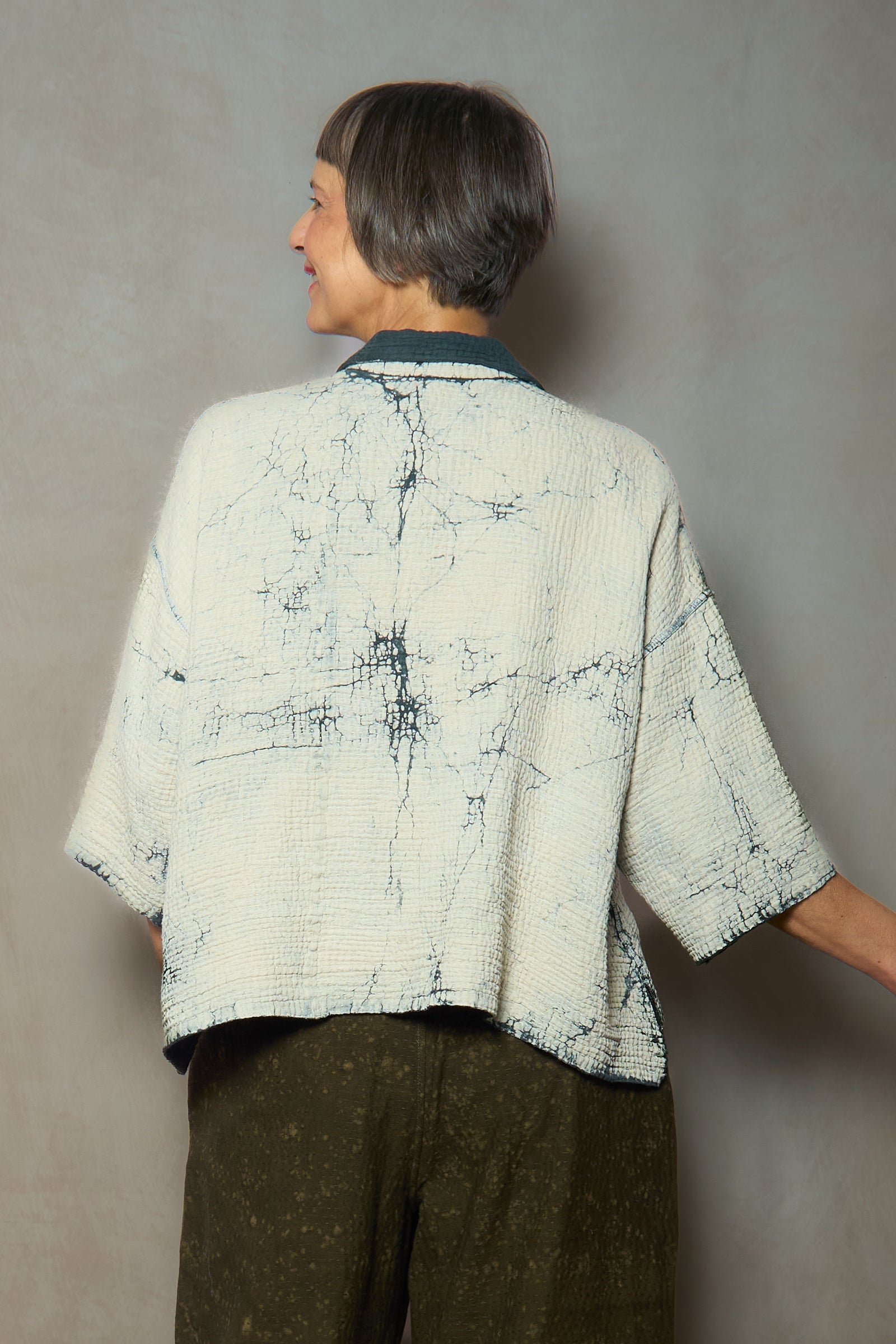 MUD DYE RIPPLE KANTHA CROPPED TENT SHIRT - yp4596-gry -