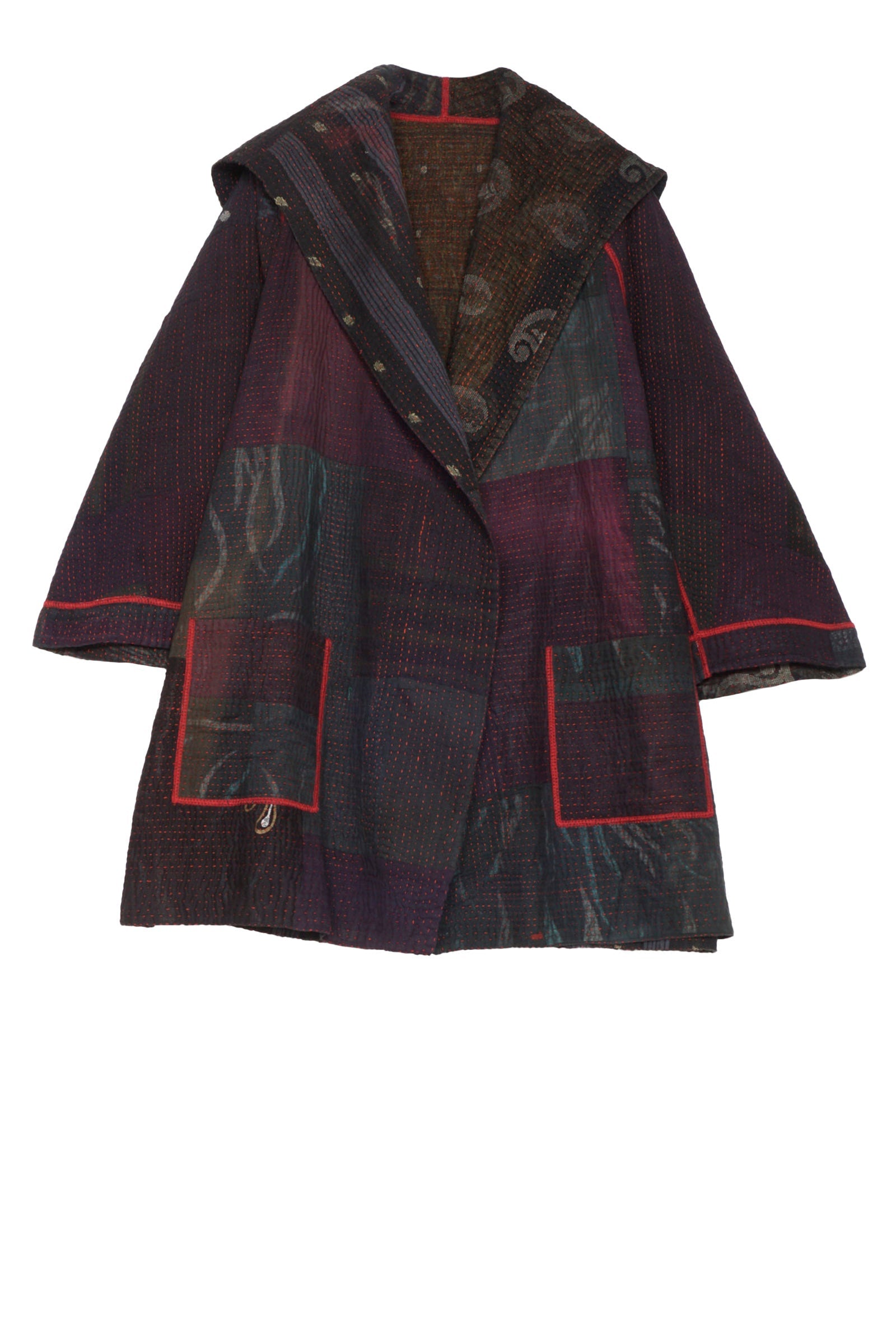 4 Layer Vintage Saris with Hand Stitches on Entire Garment - Reversible