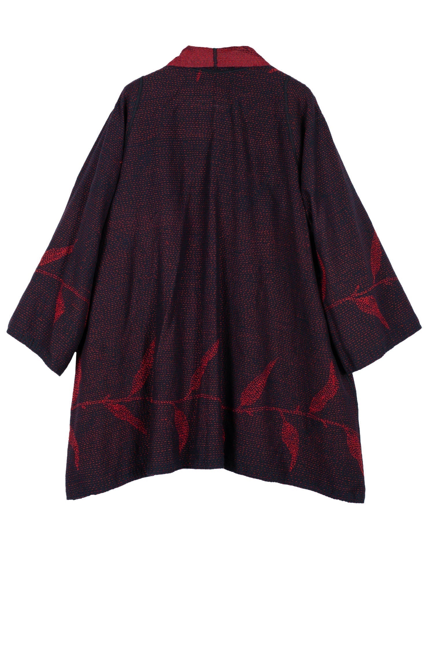 NIGHT BAMBOO SILK COTTON KANTHA A-LINE JKT - nb2003-red -