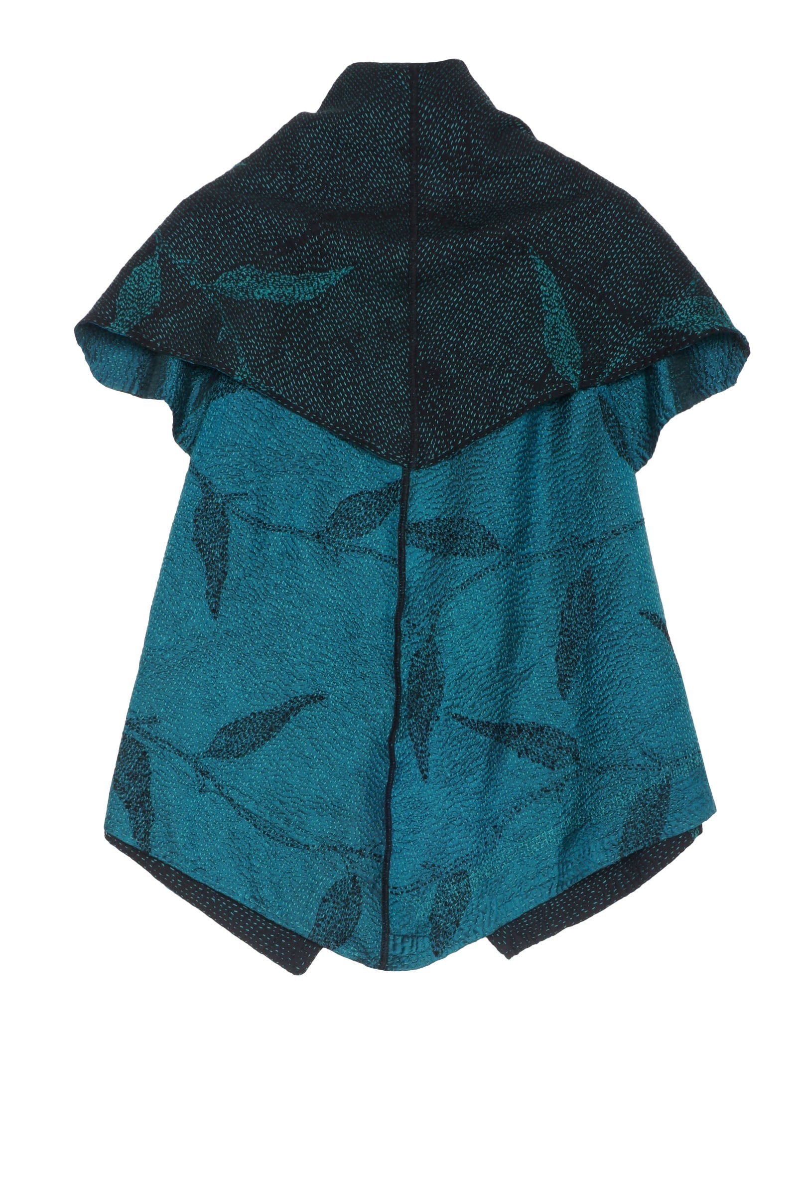 NIGHT BAMBOO SILK COTTON KANTHA CIRCULAR SHORT VEST - nb2202-tel -