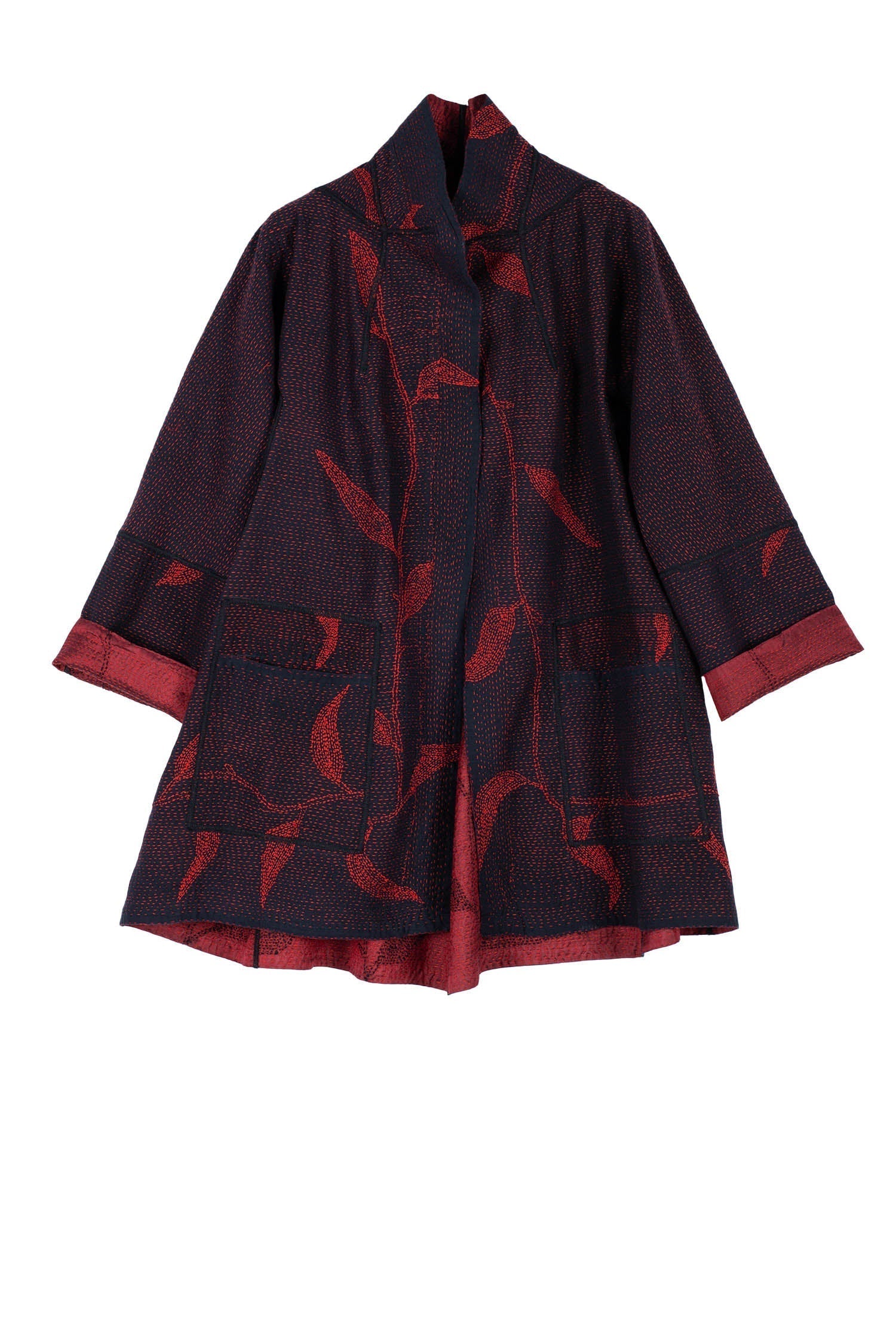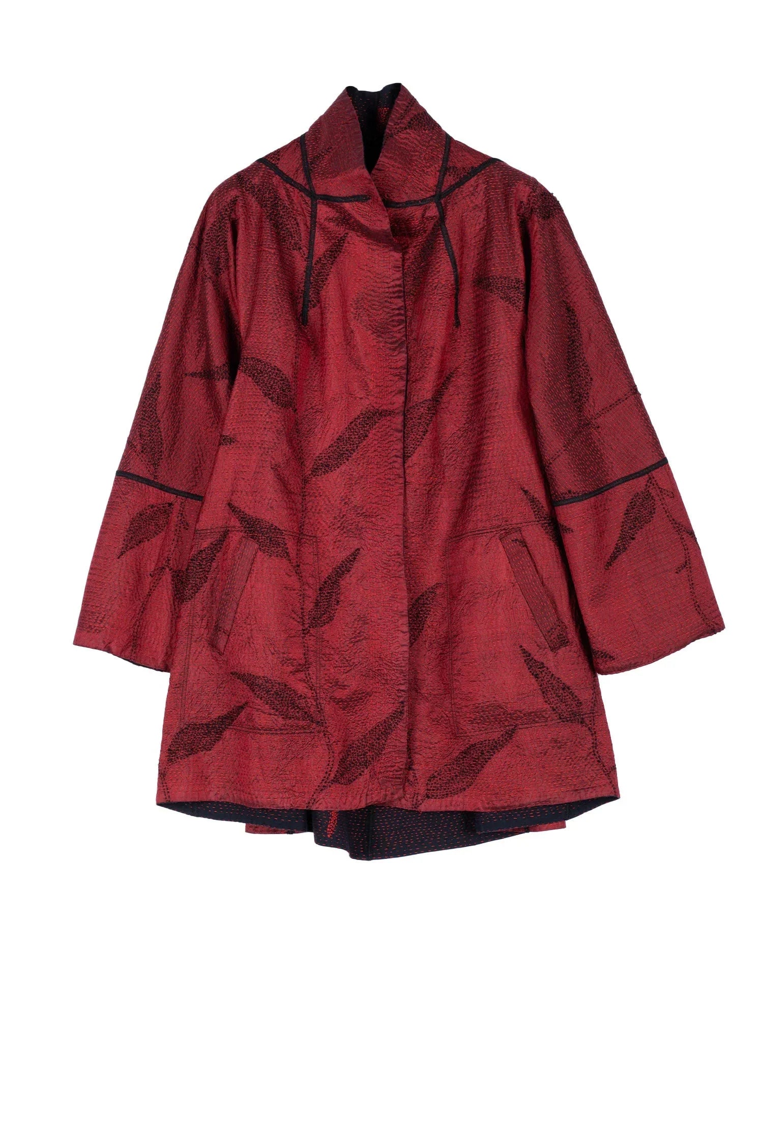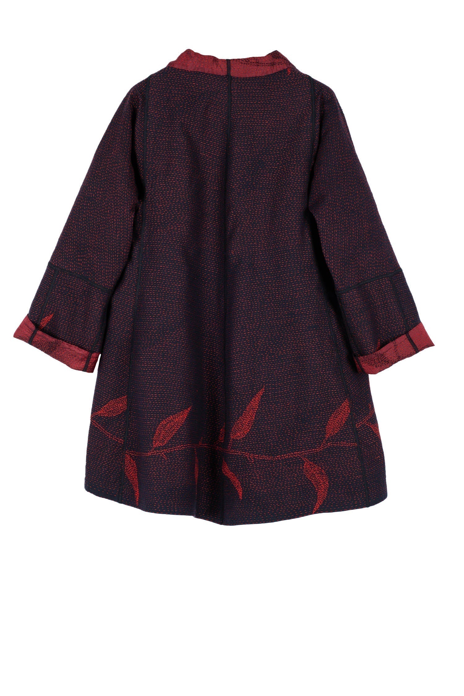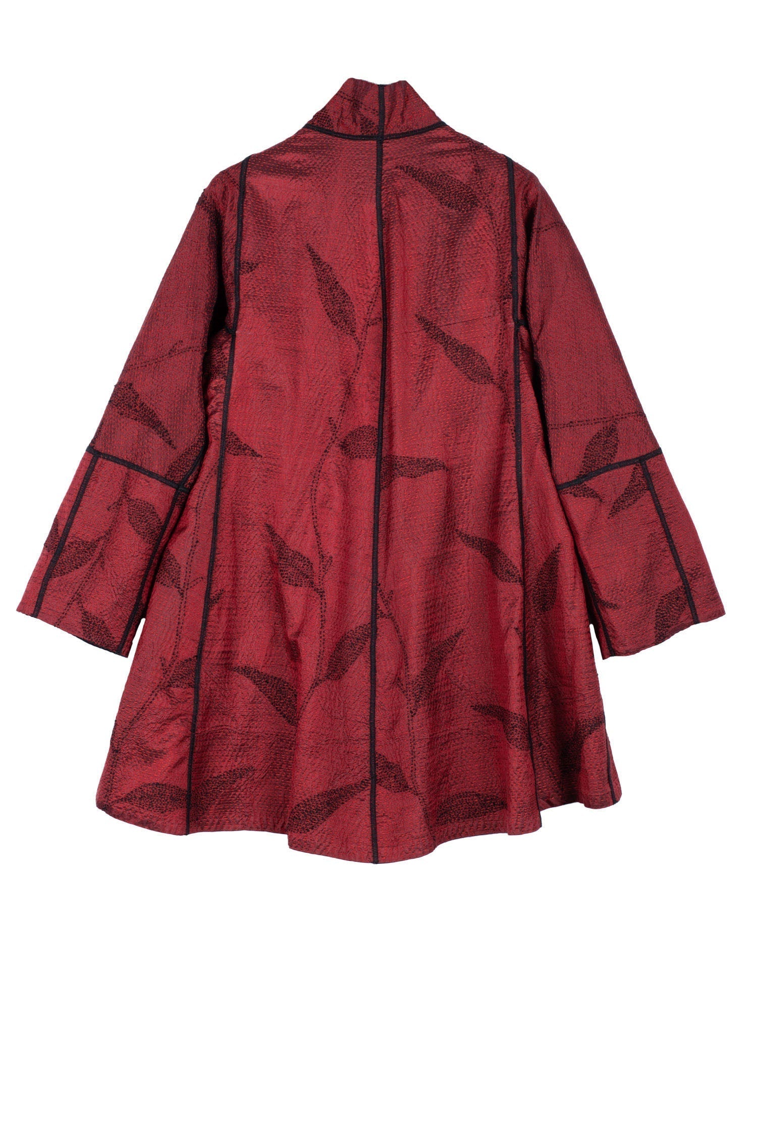 NIGHT BAMBOO SILK COTTON KANTHA FLARE LONG JKT - nb2021-red -