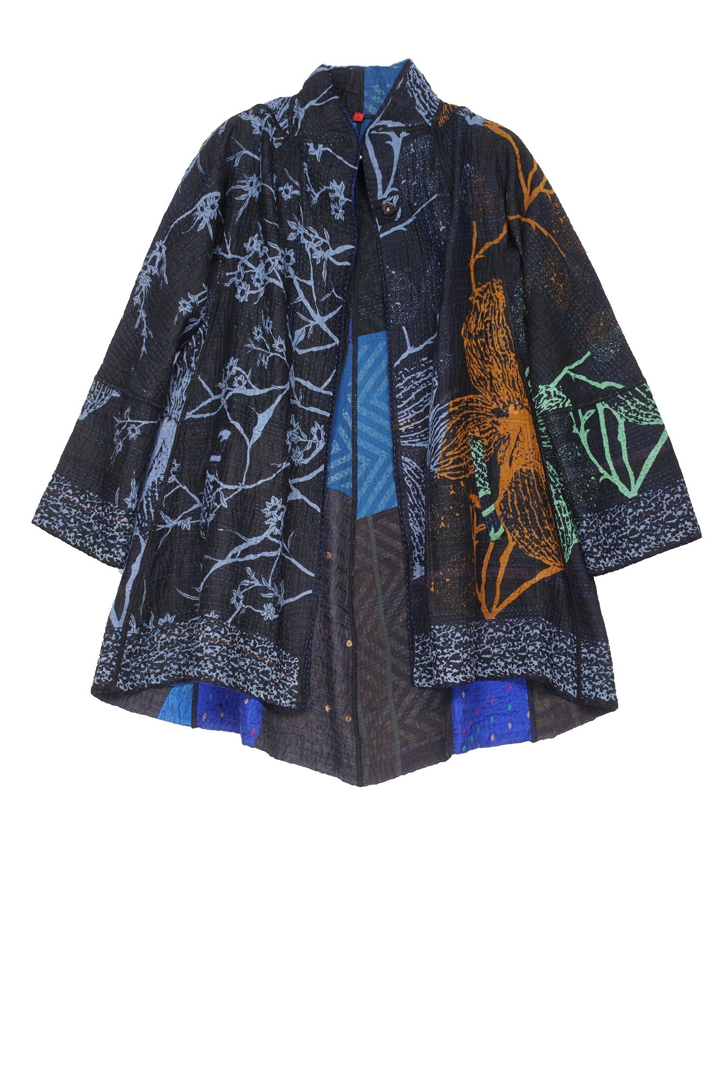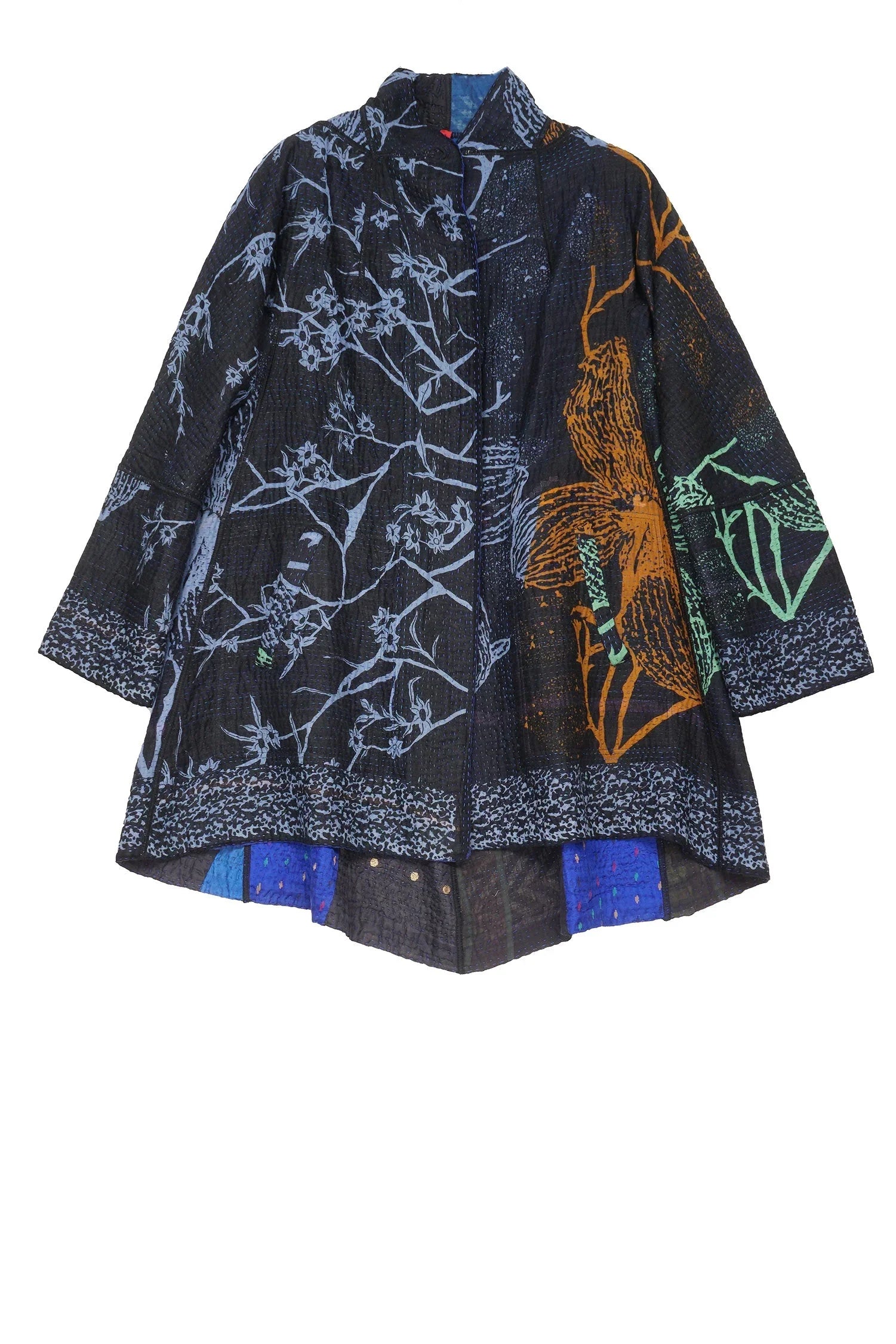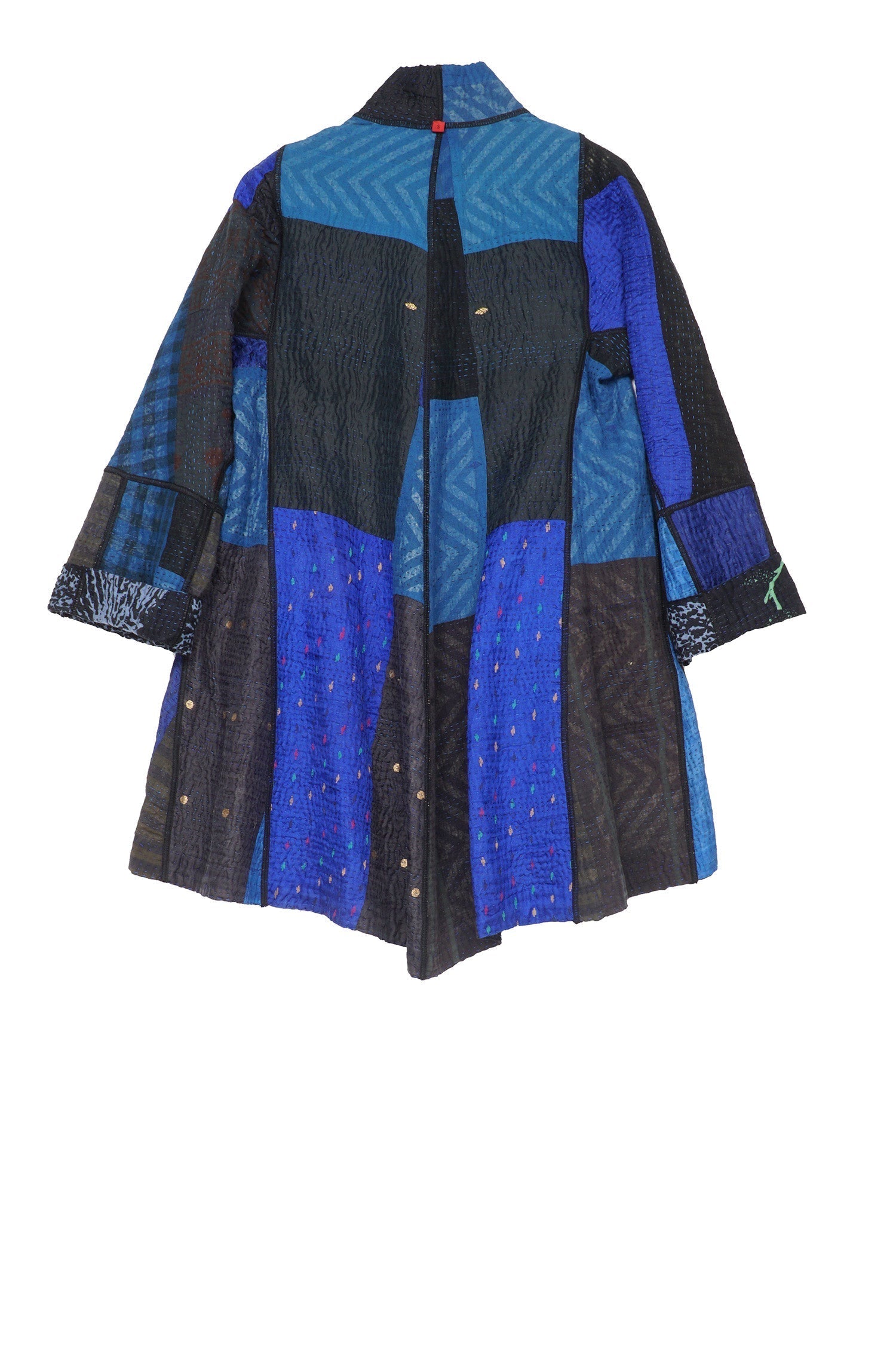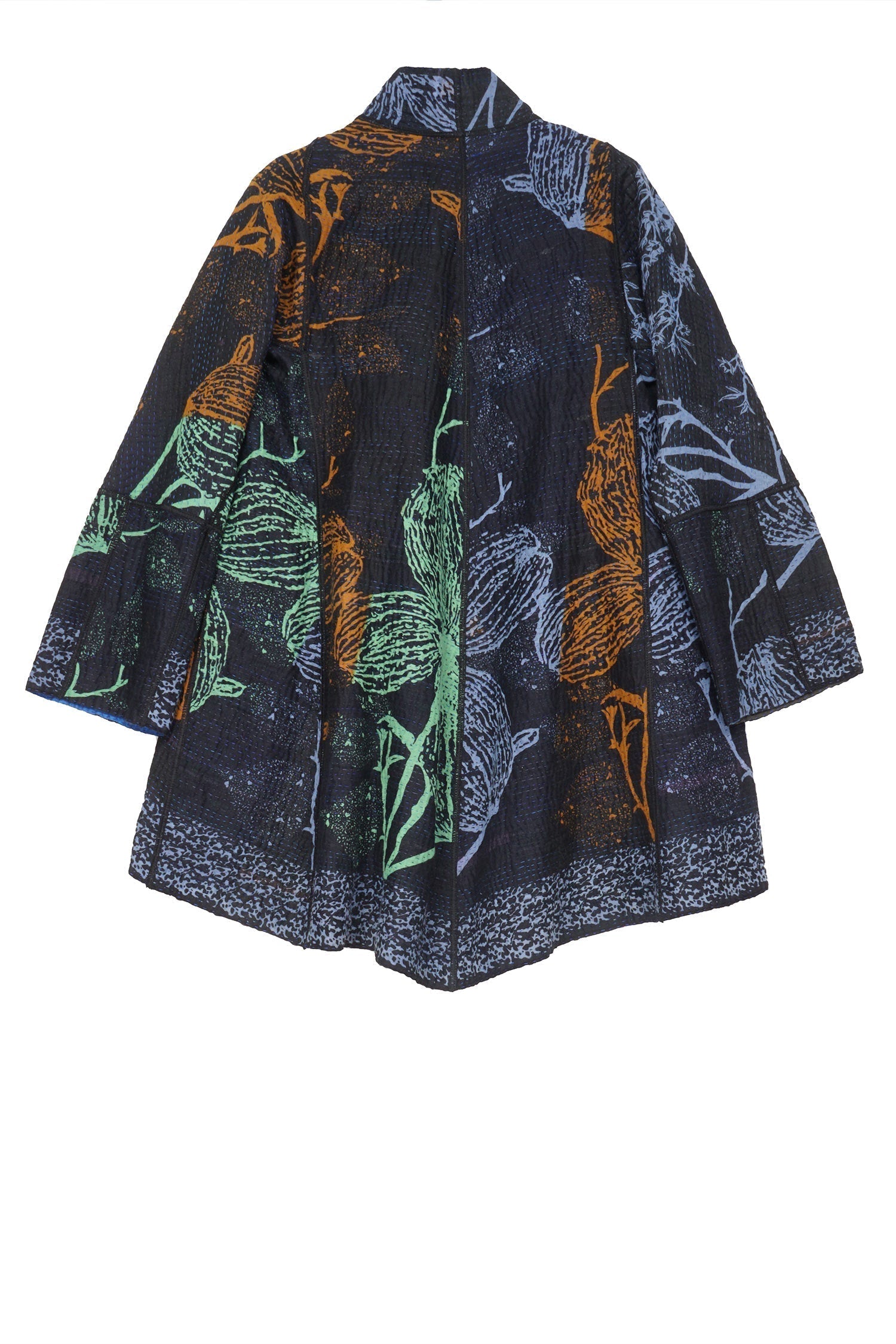 NIGHT FLOWERS KANTHA FLARE LONG JKT - nl4021-blu -