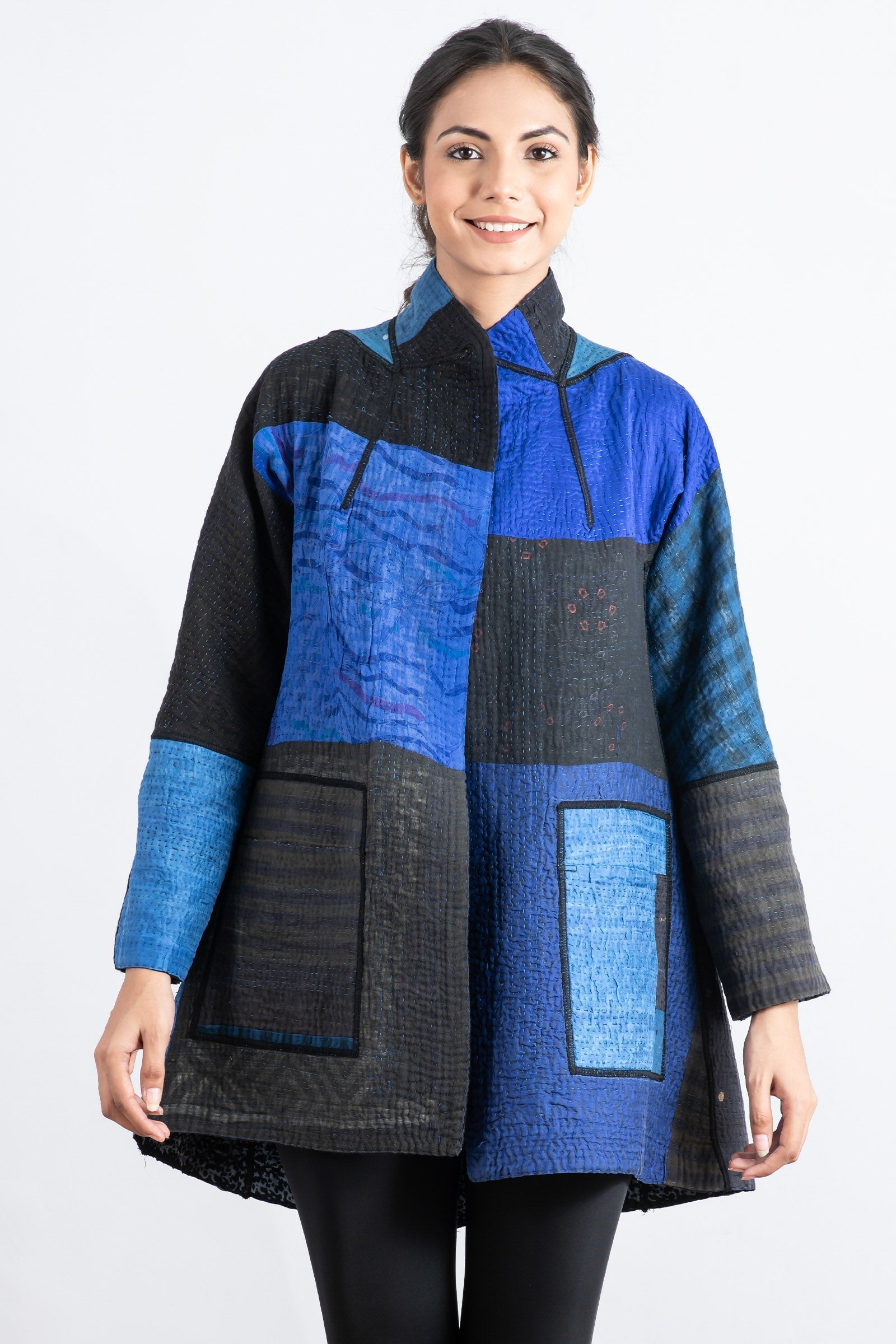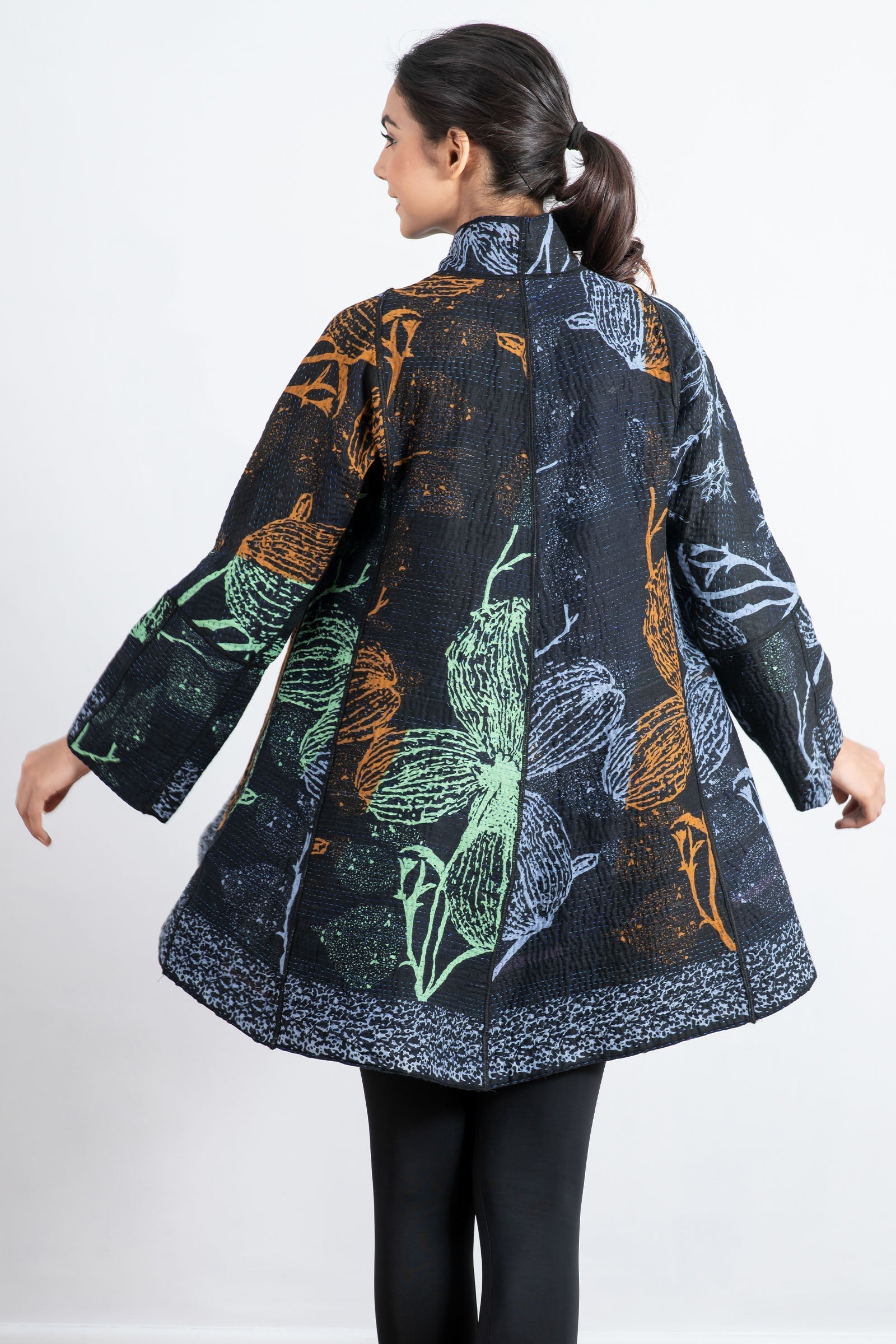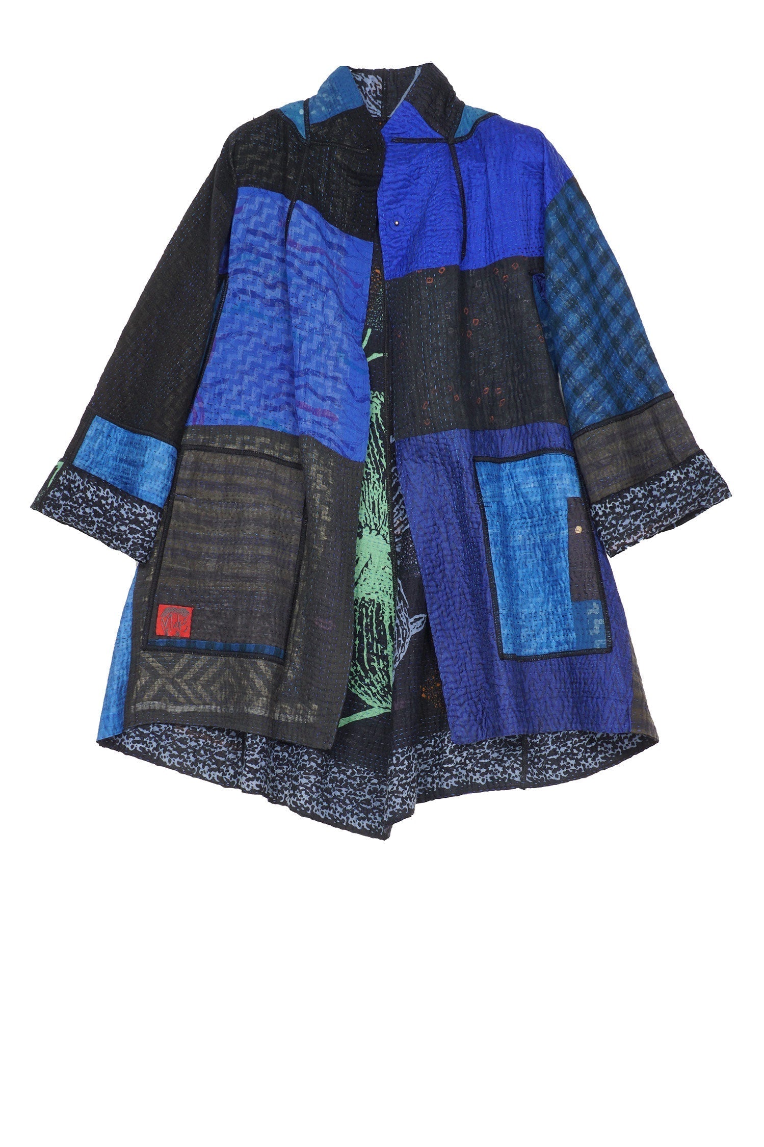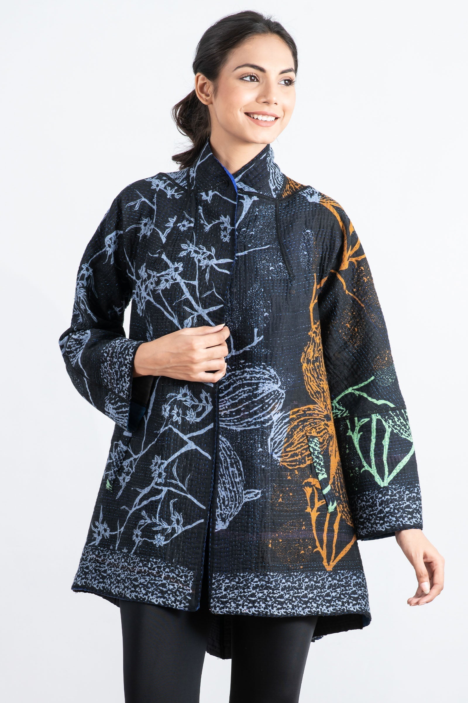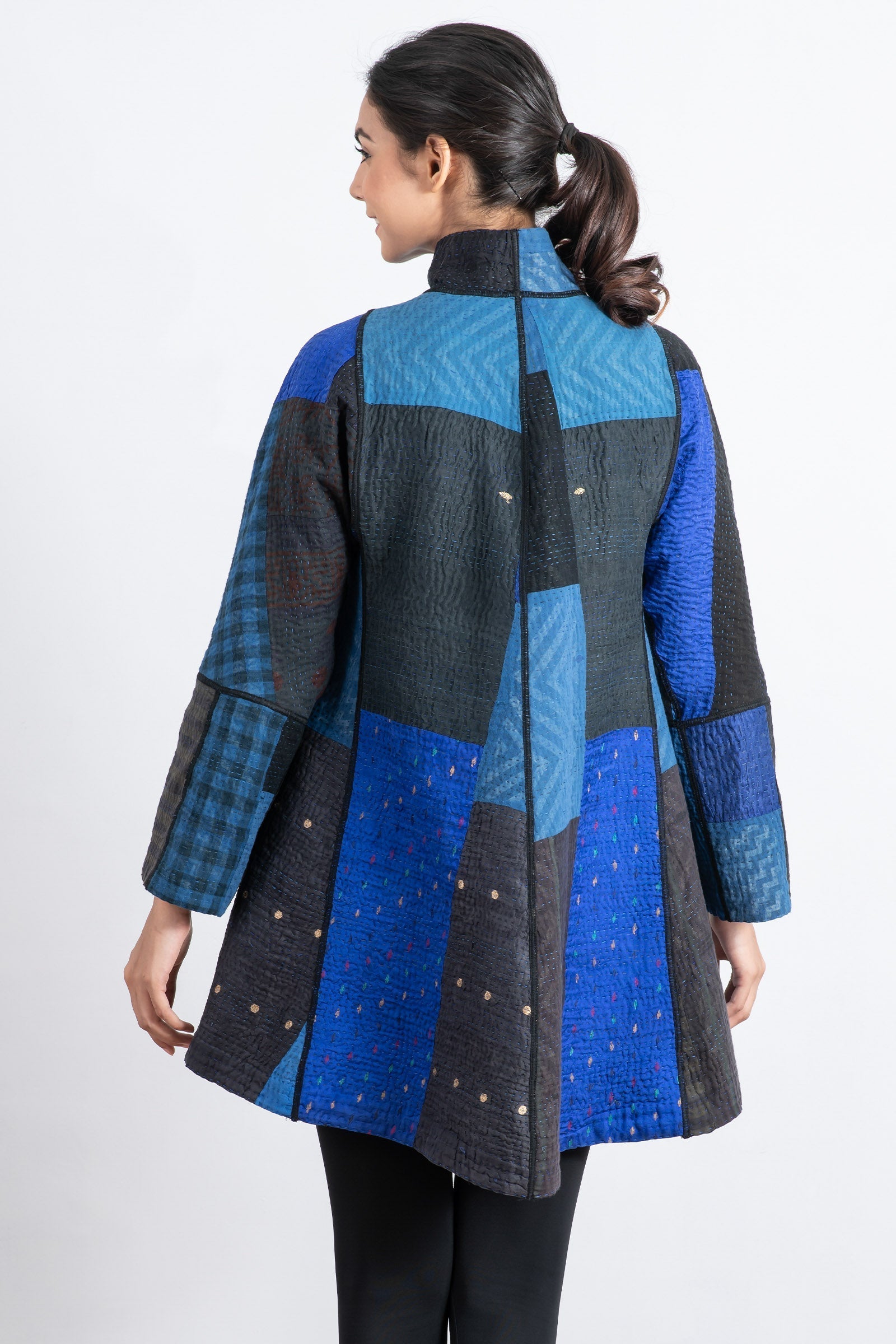 NIGHT FLOWERS KANTHA FLARE LONG JKT - nl4021-blu -