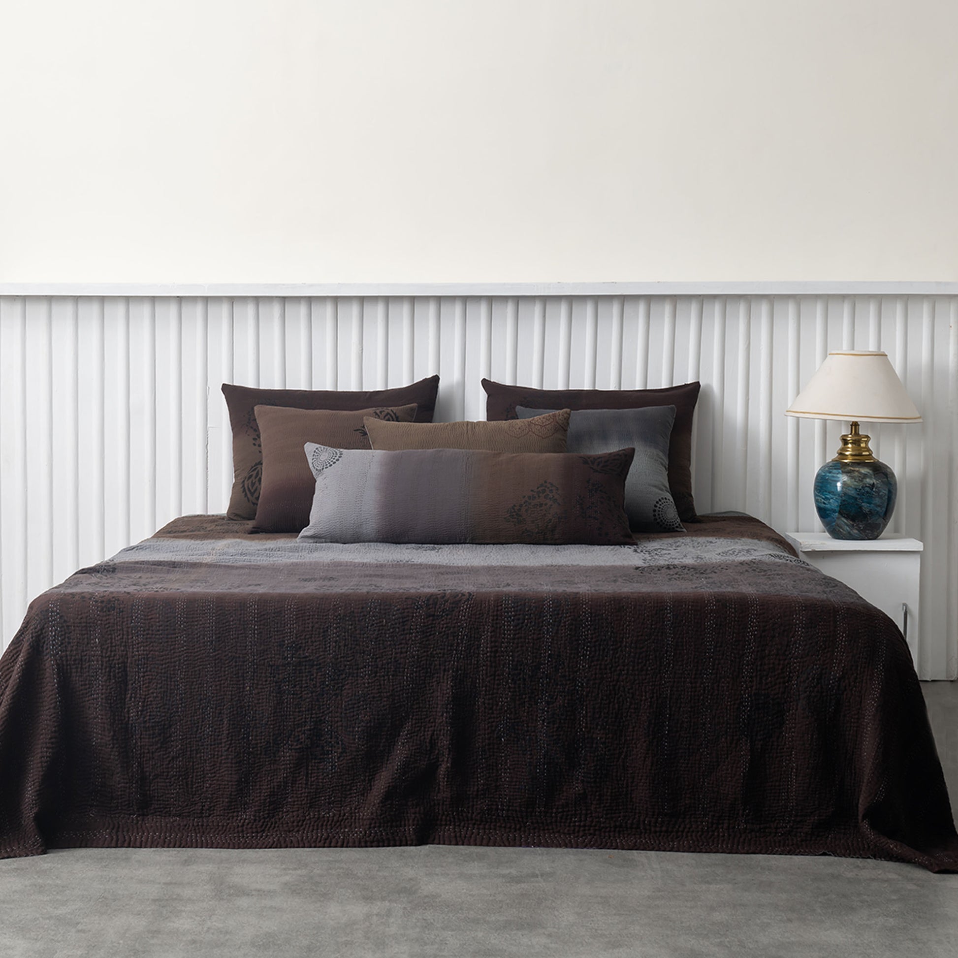 Ombre Choclate with fray patch hade made vintage kantha throw