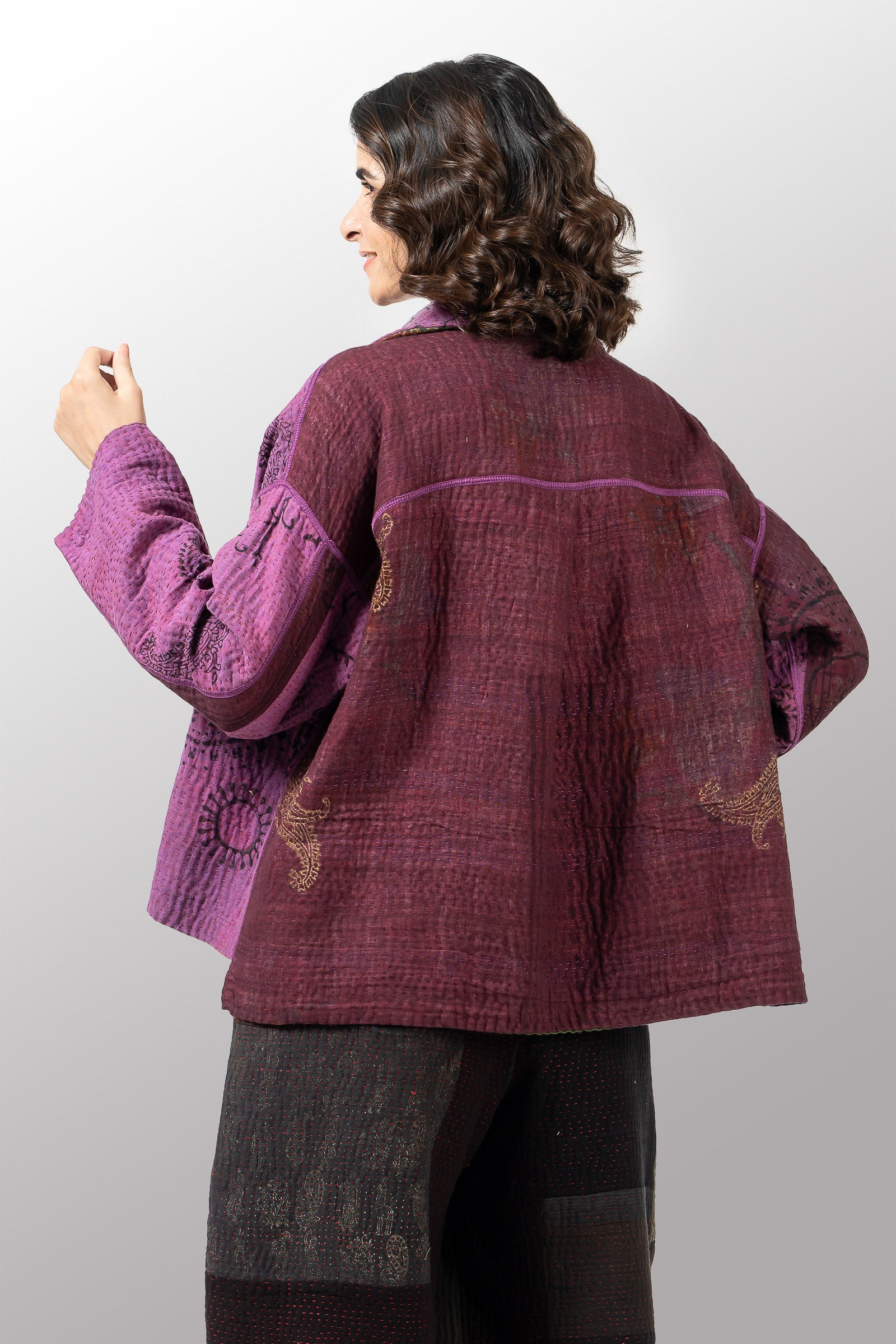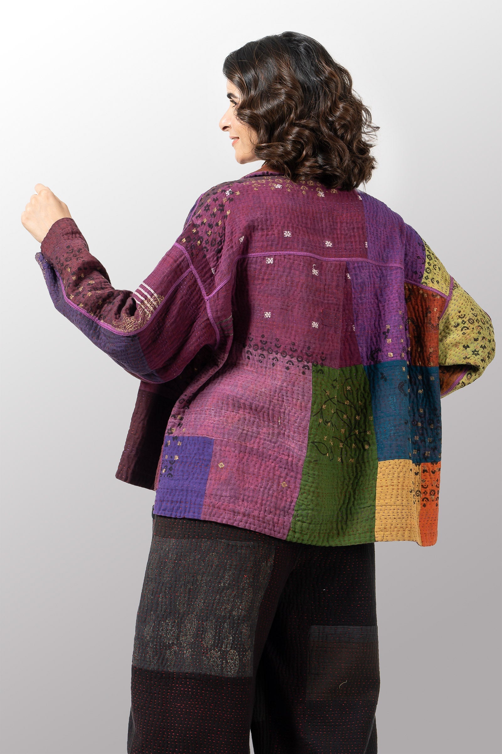 OMBRE PATCHED GOLD STAMP KANTHA CROPPED SHIRT JACKET - og4075-mlt -