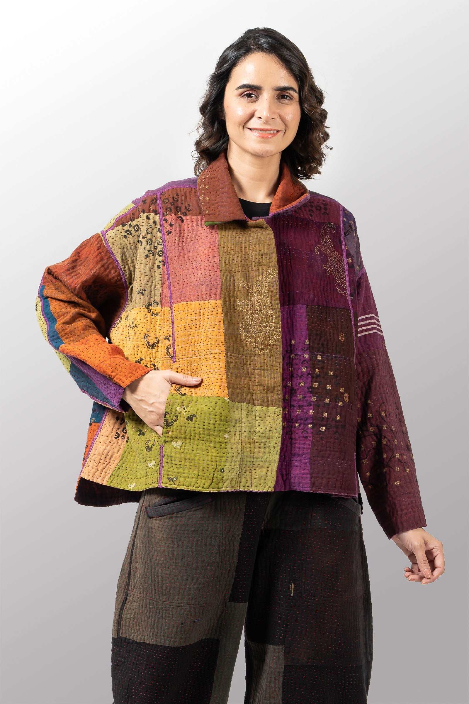 4 Layer Vintage Saris with Hand Stitches on Entire Garment