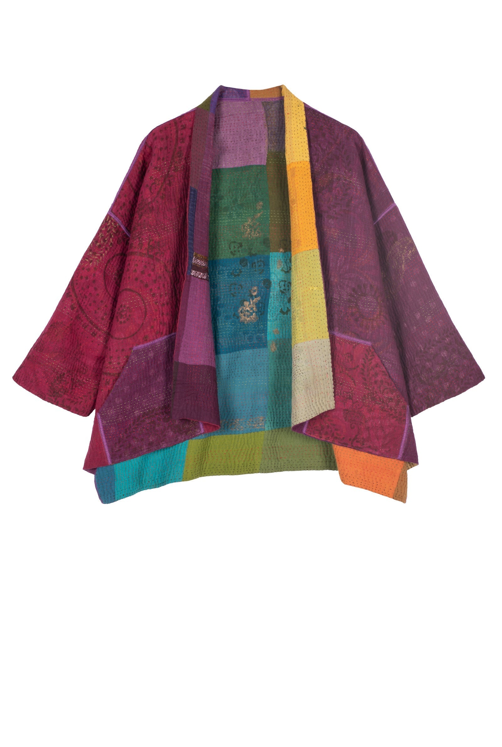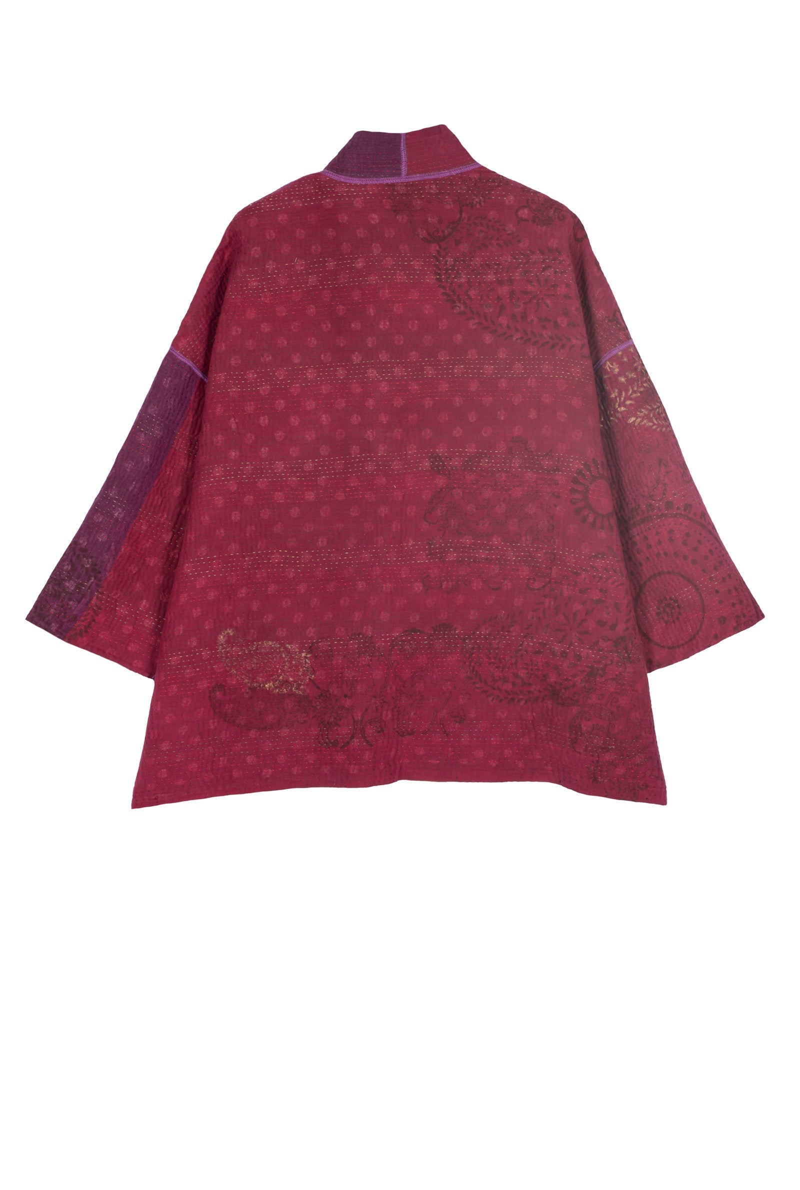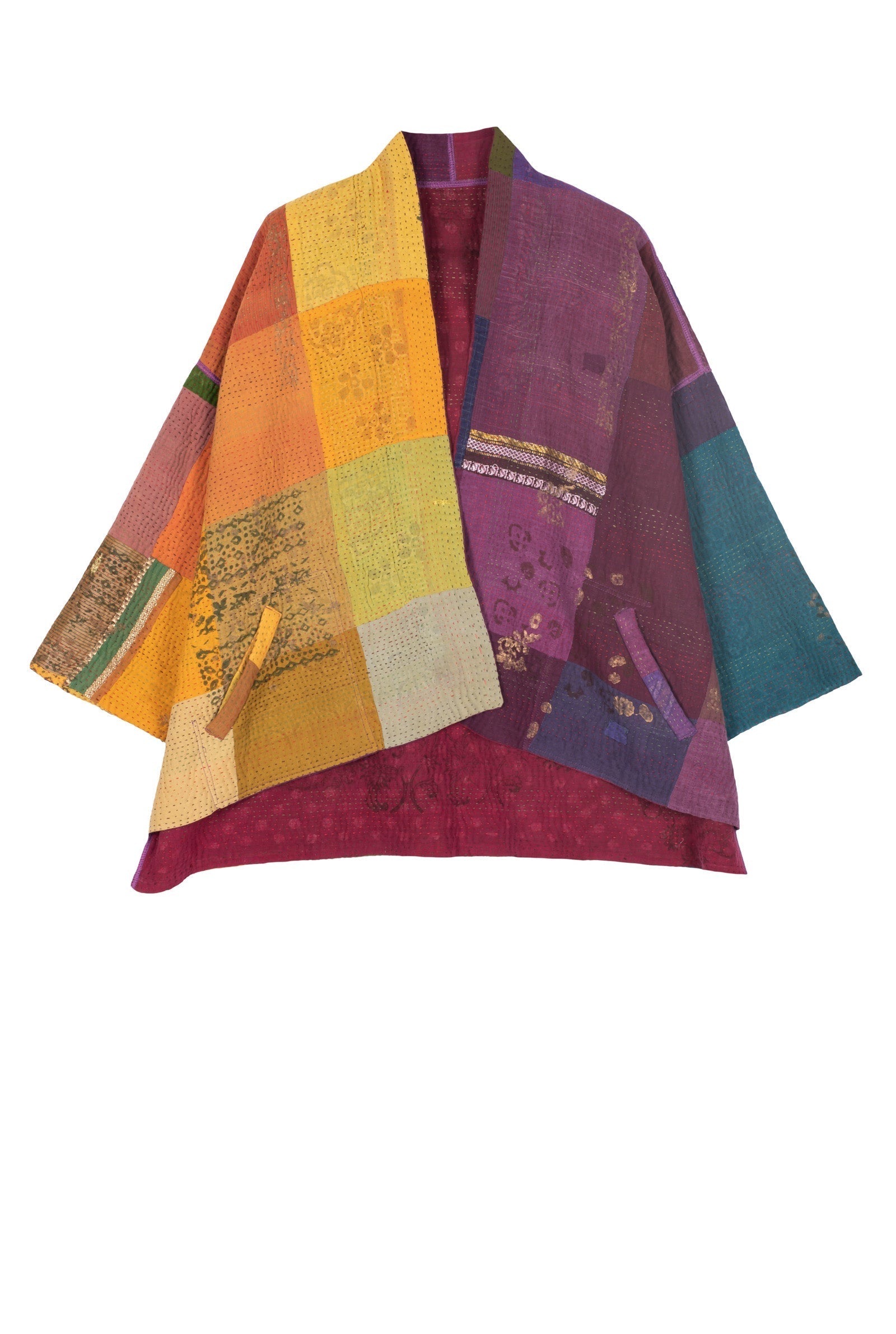 OMBRE PATCHED GOLD STAMP KANTHA MINI KIMONO JACKET - og4055-mlt -