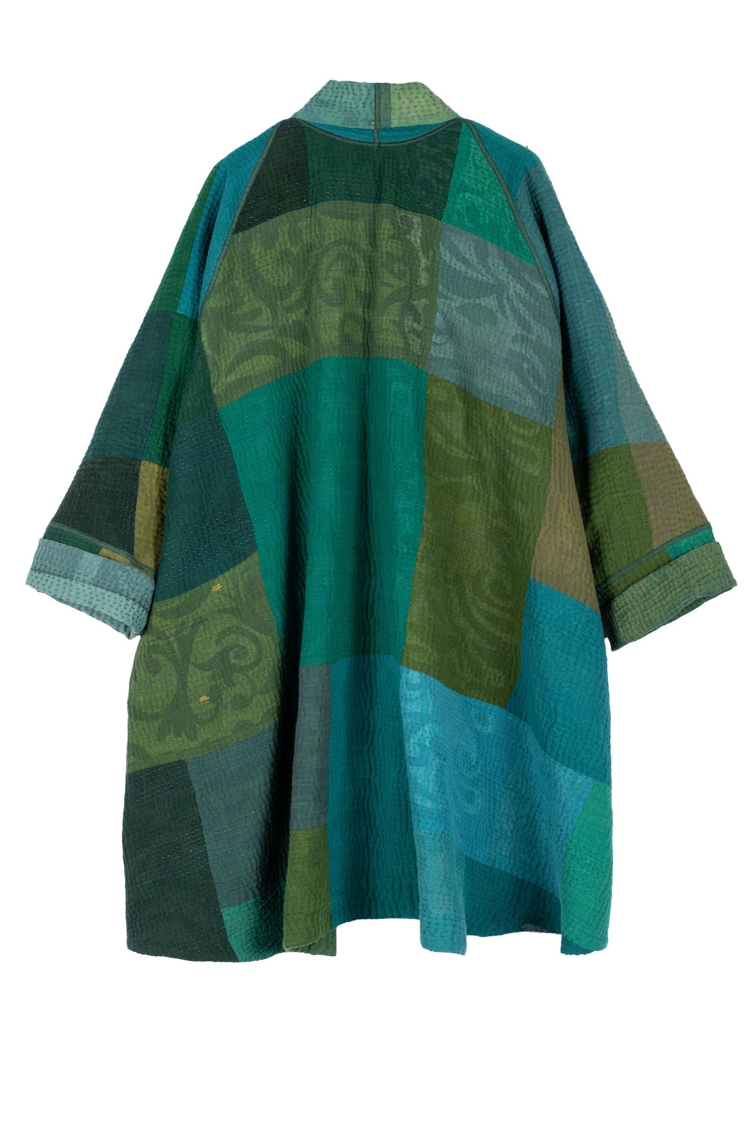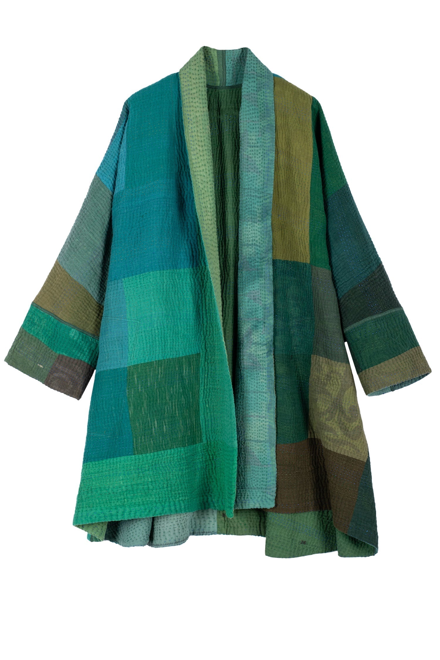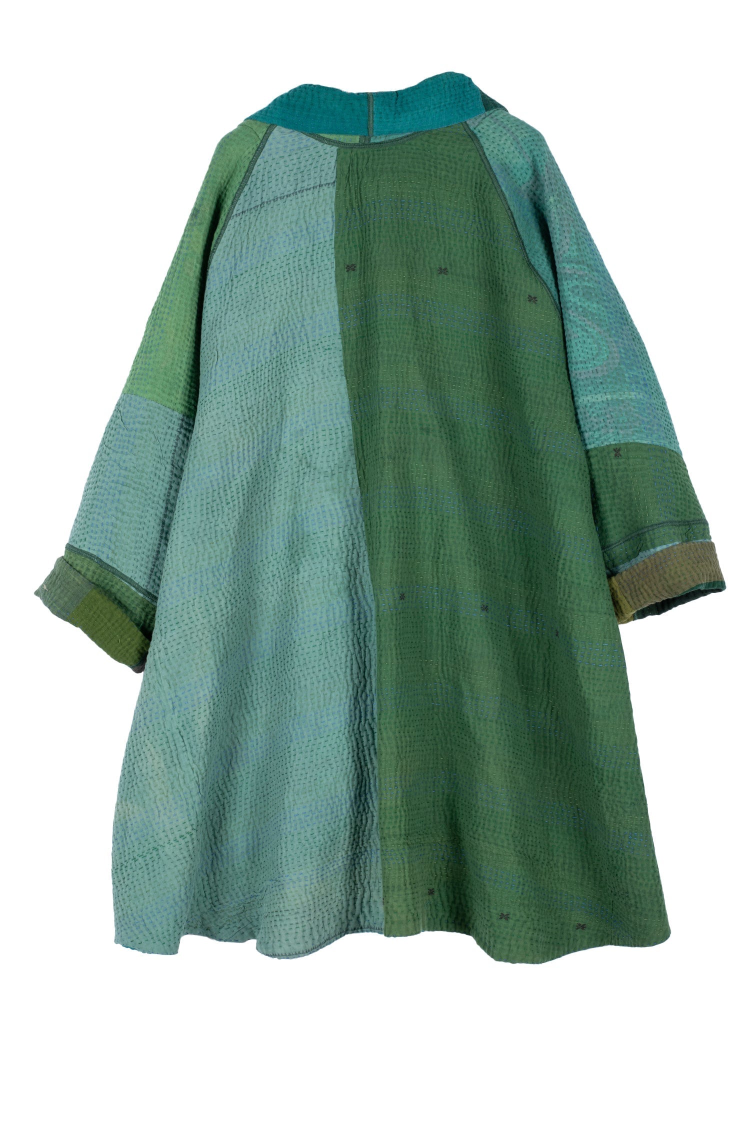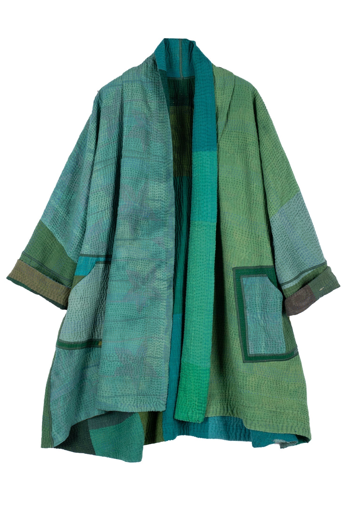 OMBRE PATCHED KANTHA KIMONO LONG JKT - op4005-grn -