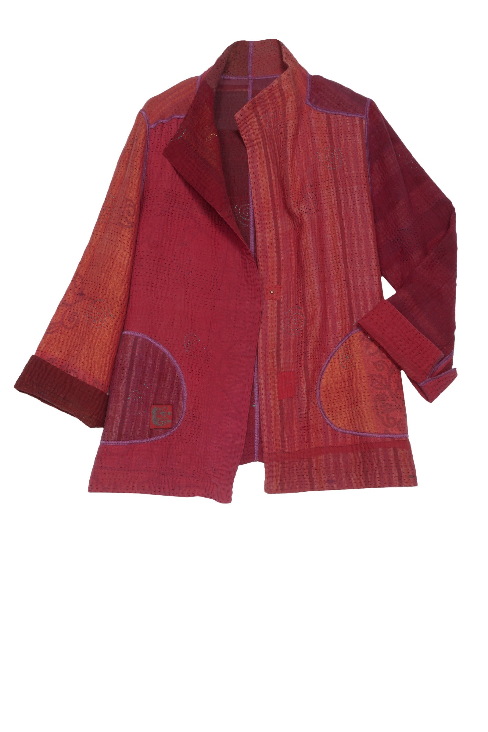 OMBRE PATCHED KANTHA SHORT JKT - op4007-red -