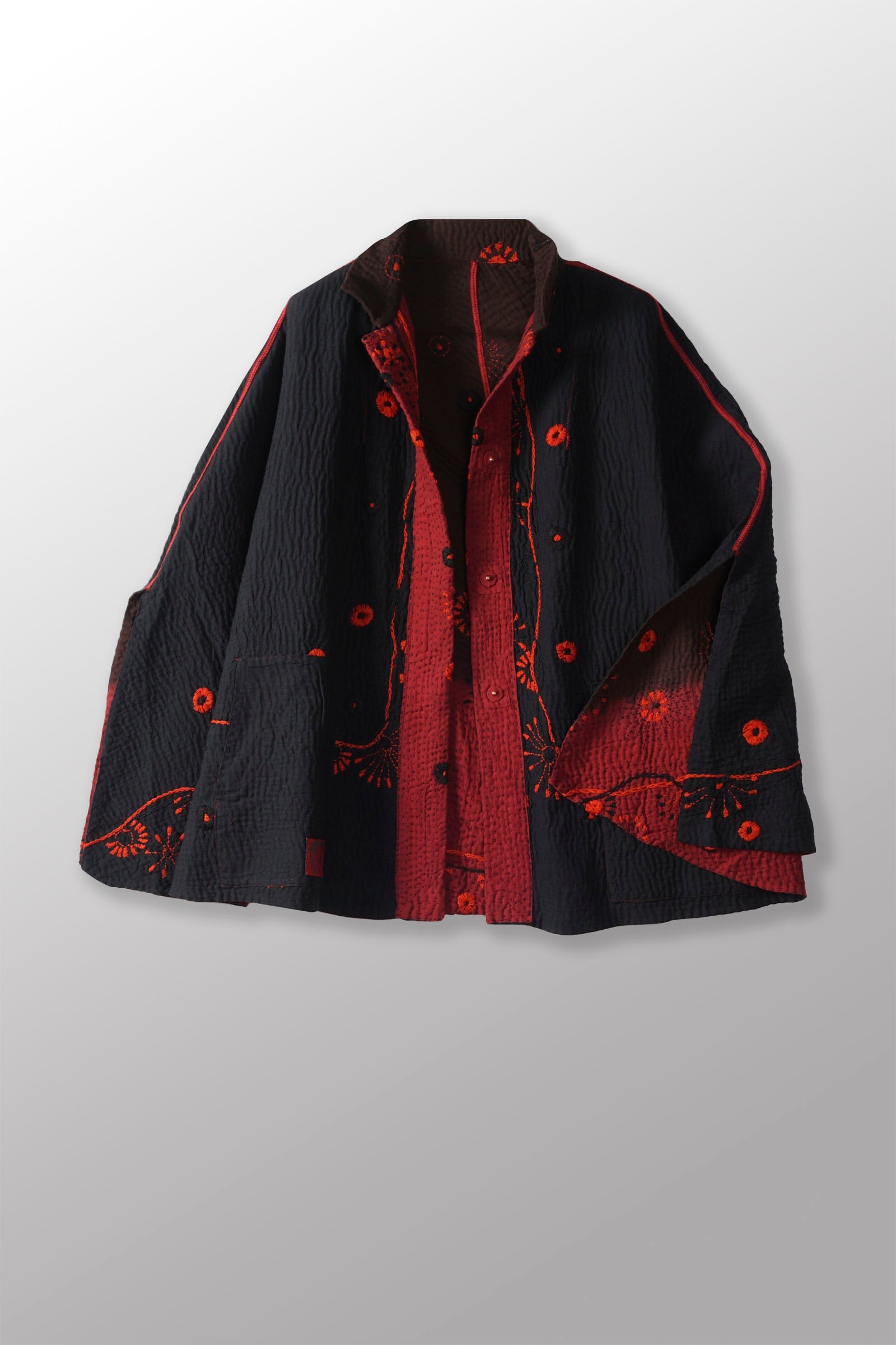 4 Layer Vintage Saris with Hand Stitches on Entire Garment - Reversible