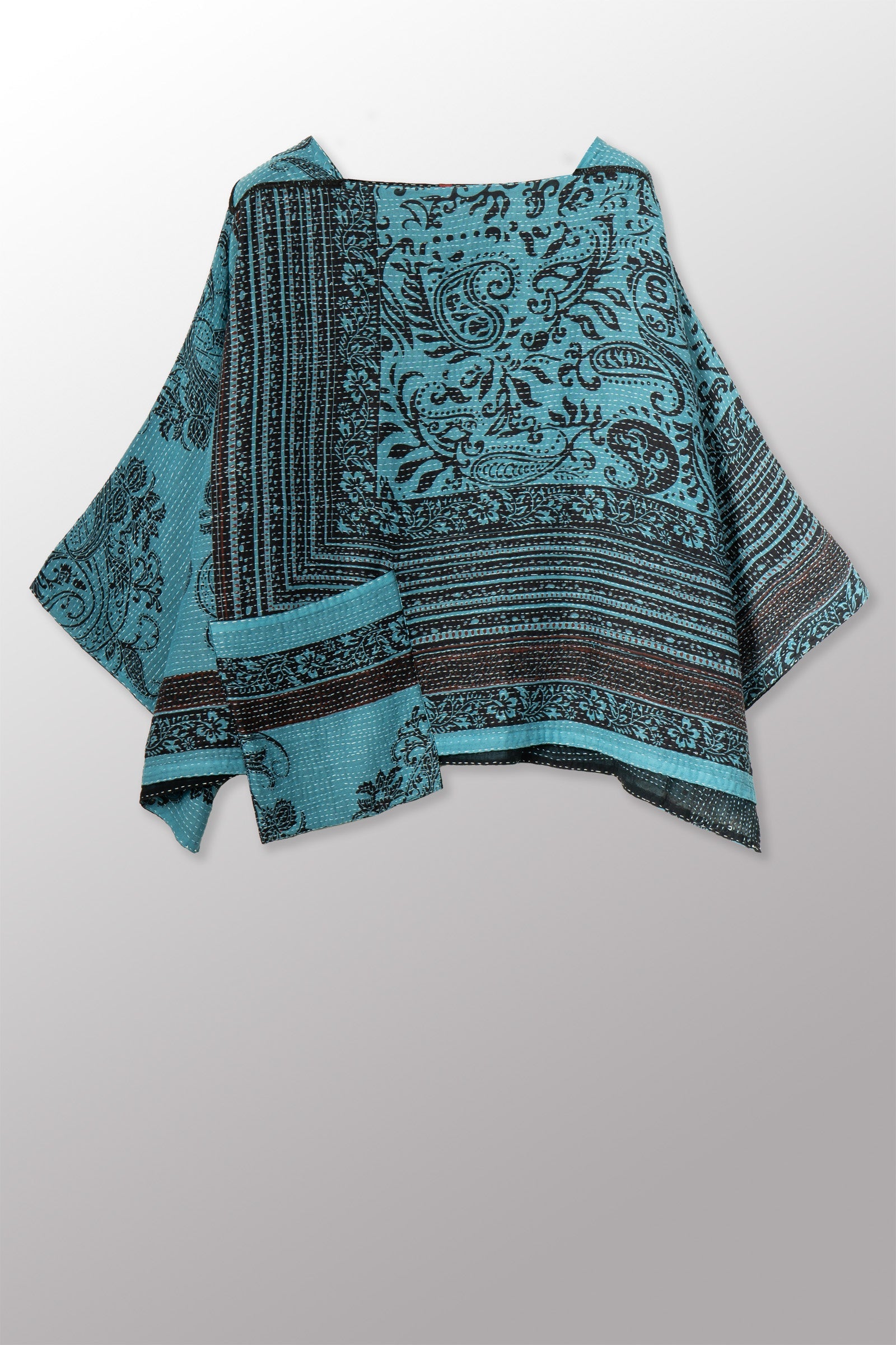 OVERDYED COTTON PAISLEY KANTHA 3/4 SLV. CROP TOP MIO - ov-cp2538-blu -