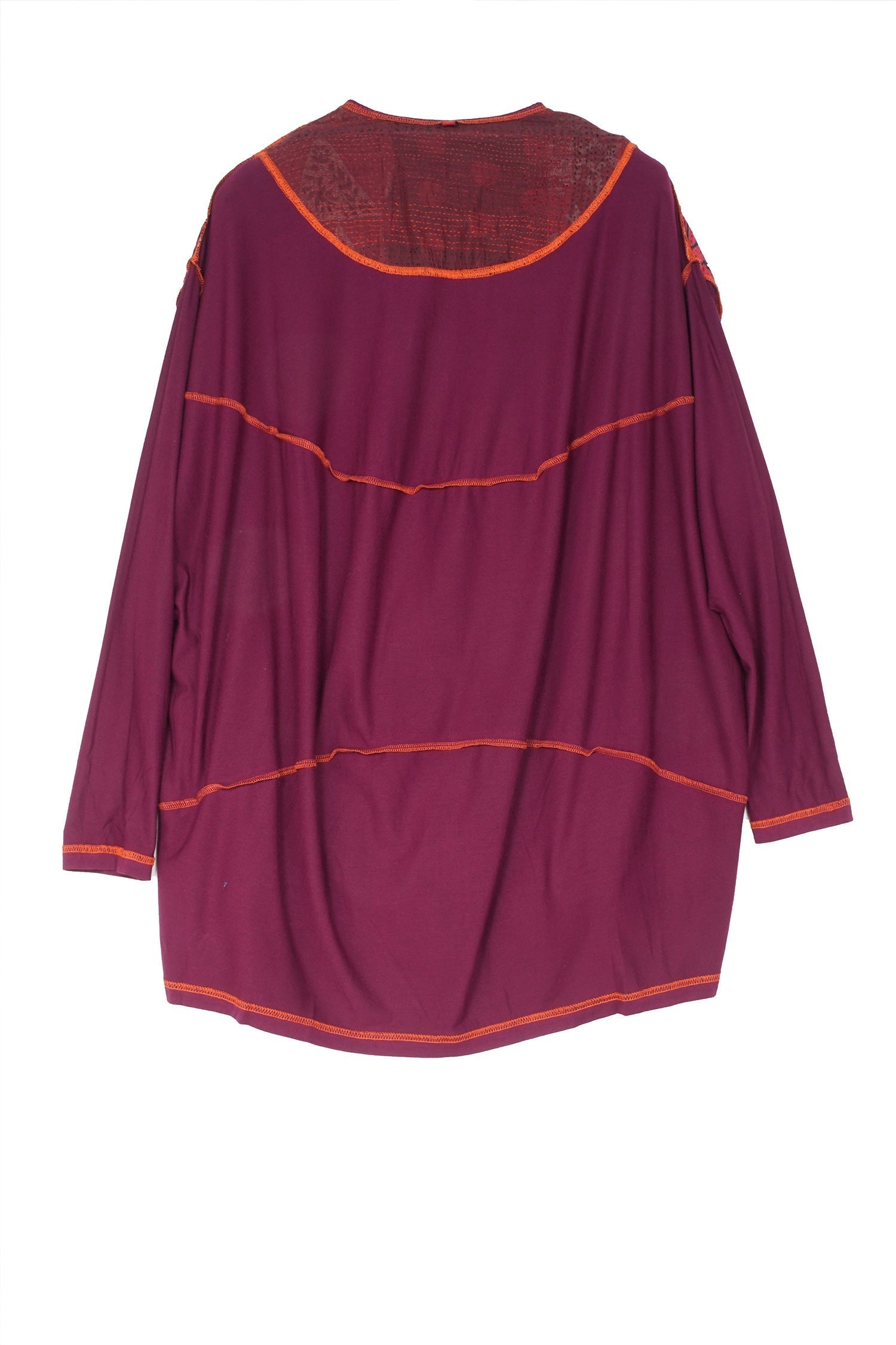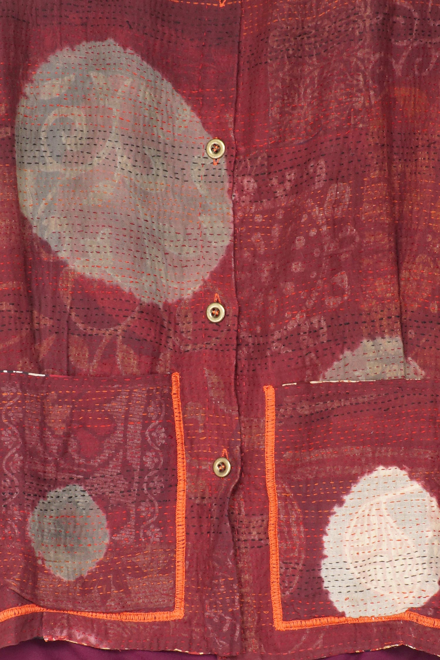 PATCH & CIRCLE PRINT KANTHA AND KNIT LONG JKT - pc2028-red -