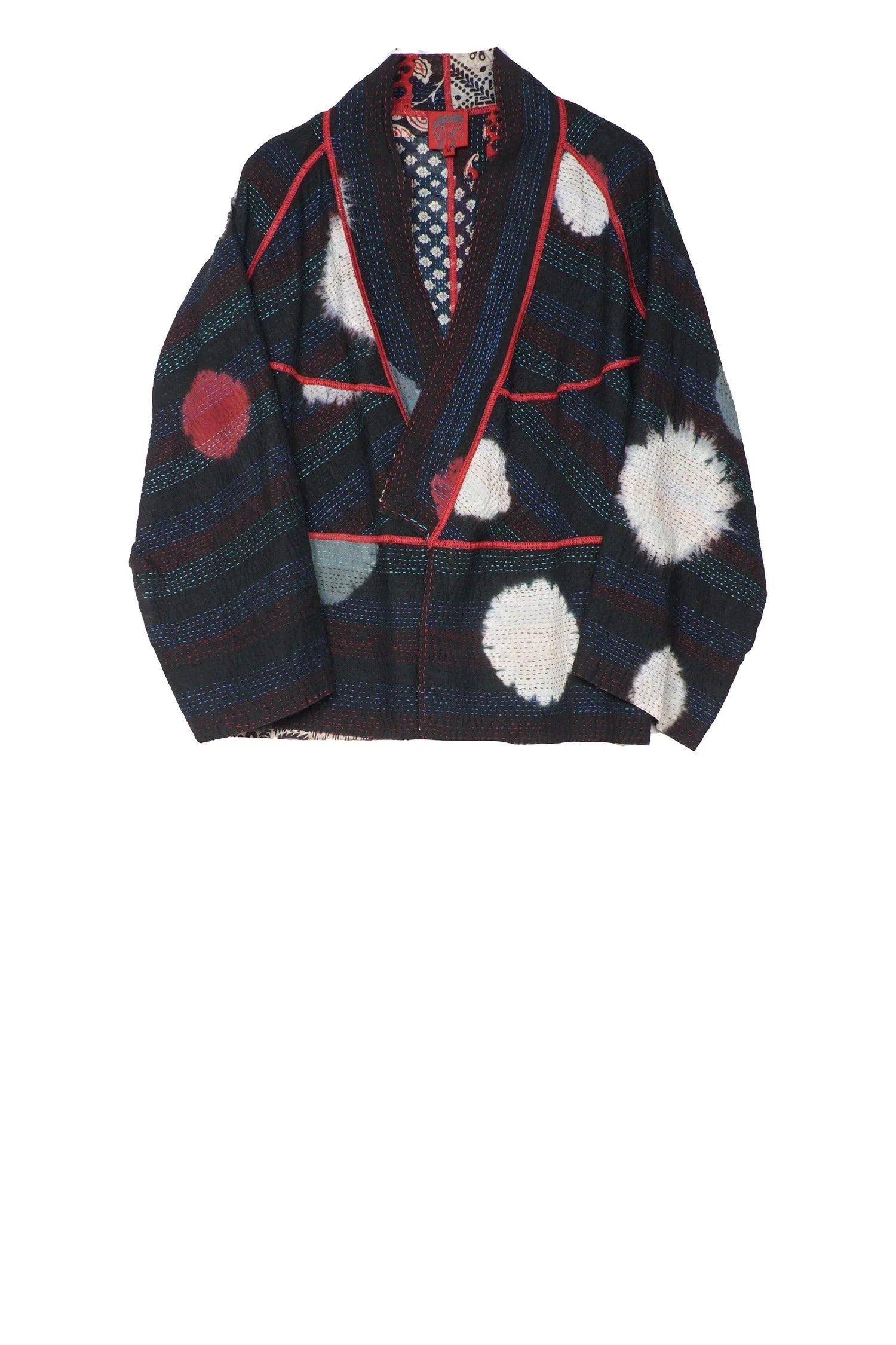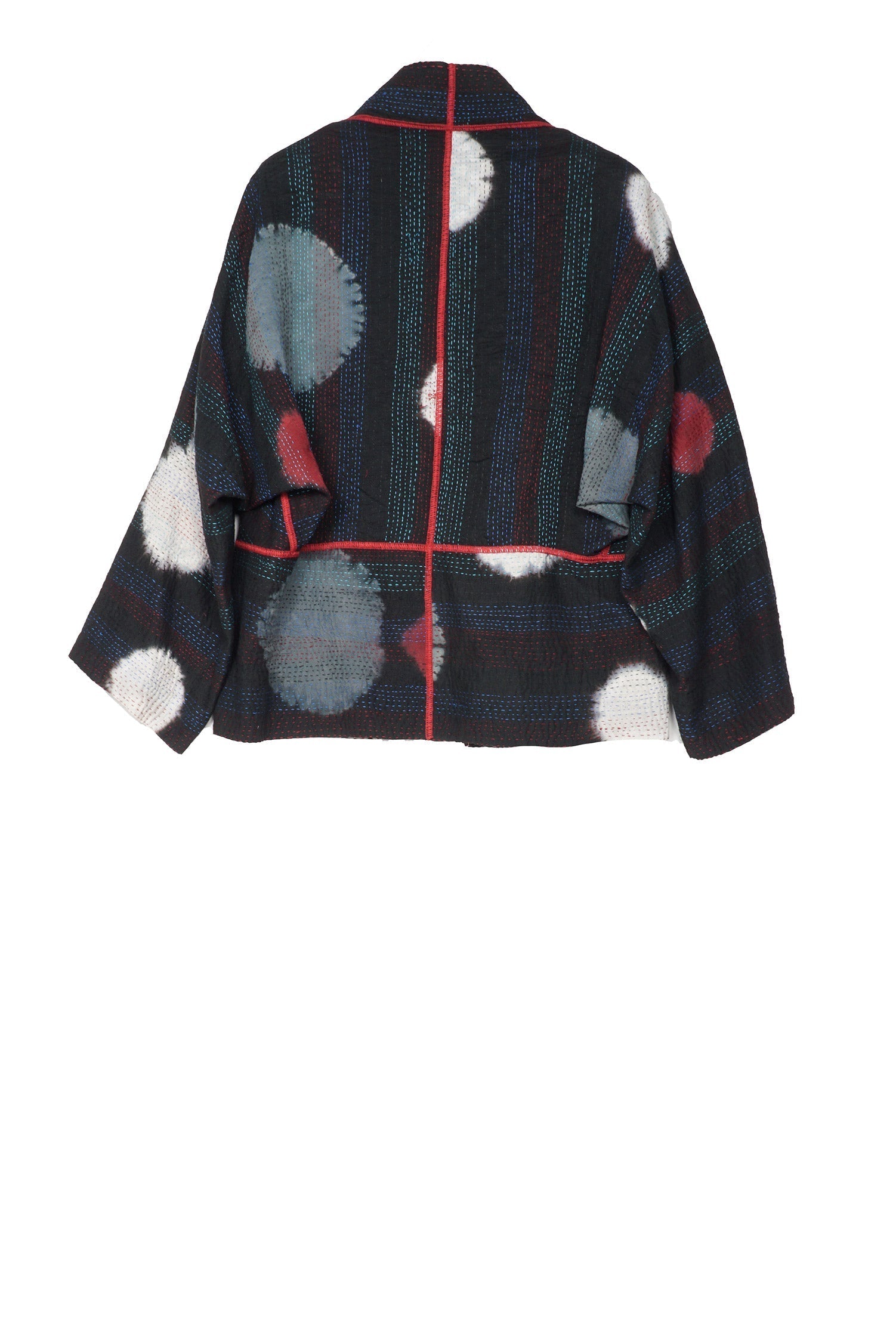 PATCH & CIRCLE PRINT KANTHA DOLMAN SHORT JKT - pc2015-blk -