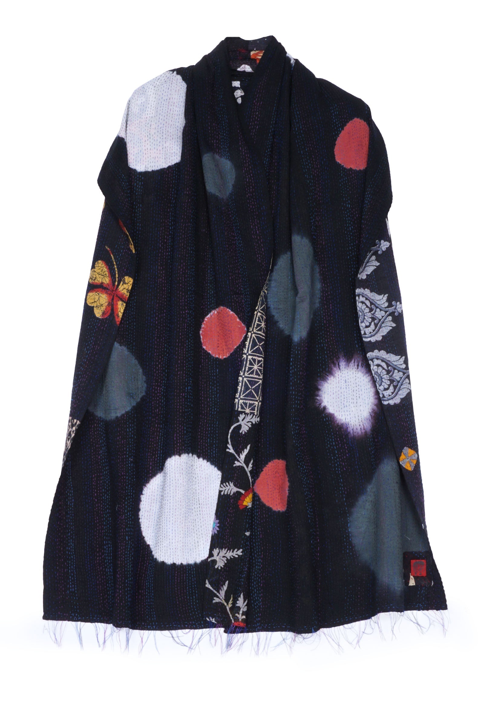 PATCH & CIRCLE PRINT KANTHA SCARF STANDARD - pc2801-blk -