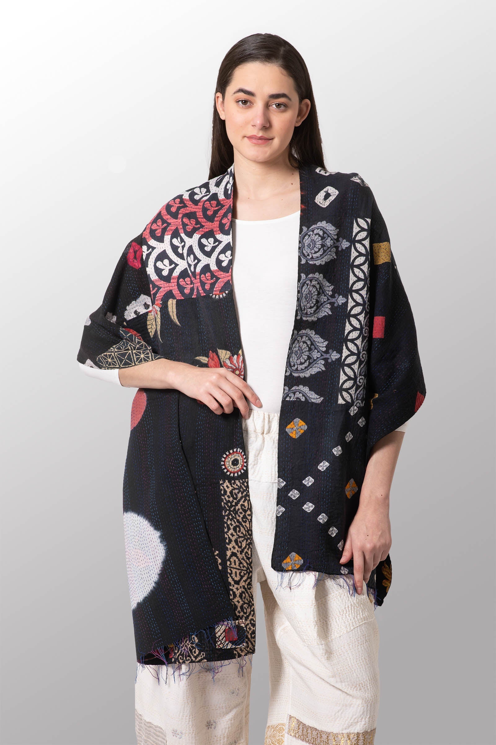 2 Layer Vintage Saris with Hand Stitches on Entire Garment - Reversible
