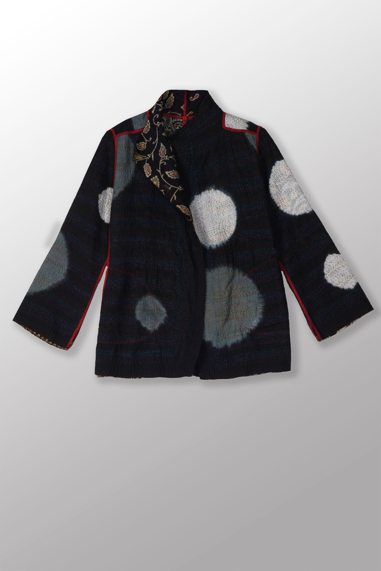 PATCH & CIRCLE PRINT KANTHA SHORT JKT - pc2007-blk -